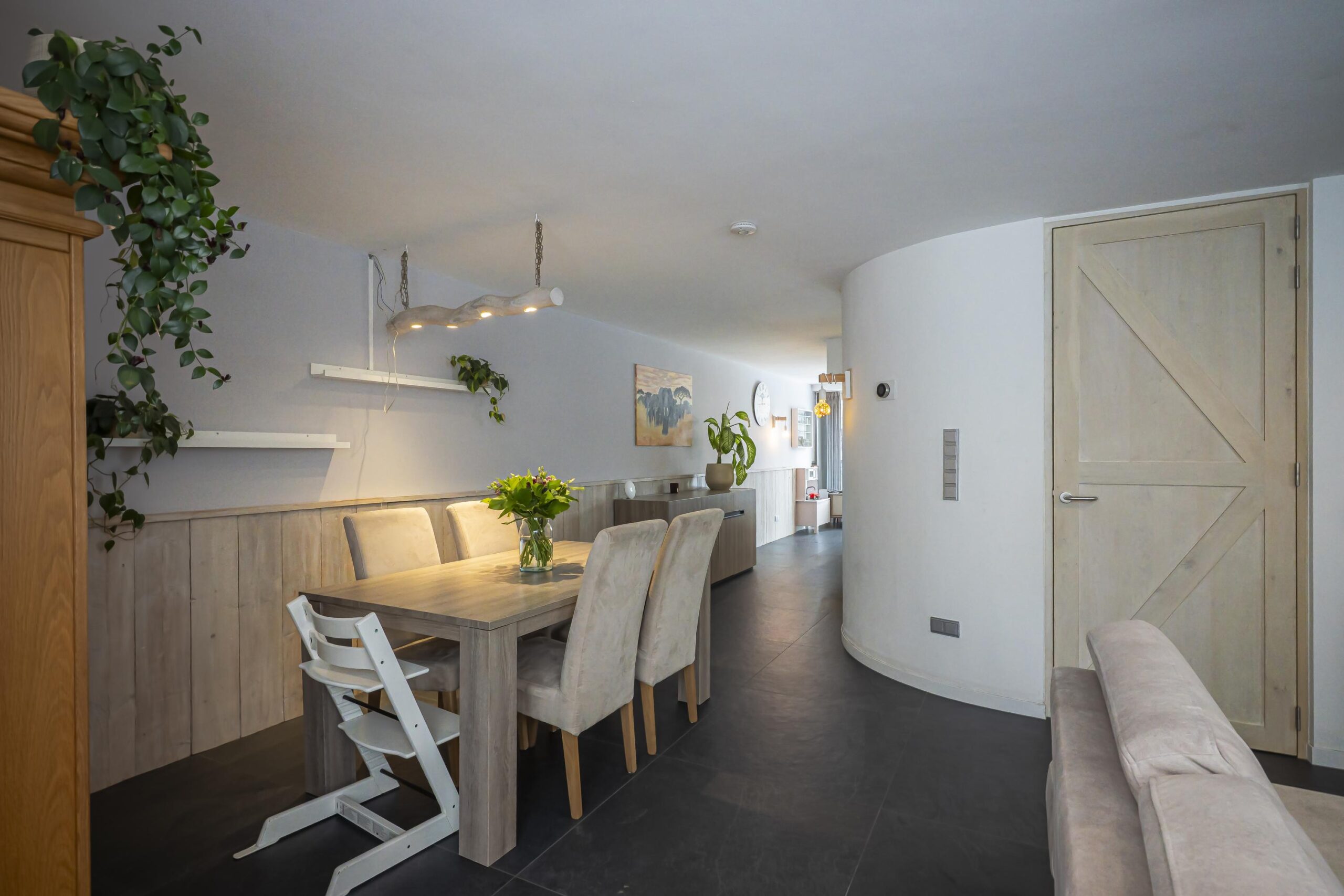 De gehele parterre is afgewerkt met een stijlvolle keramische tegelvloer en voorzien van comfortabele vloerverwarming.