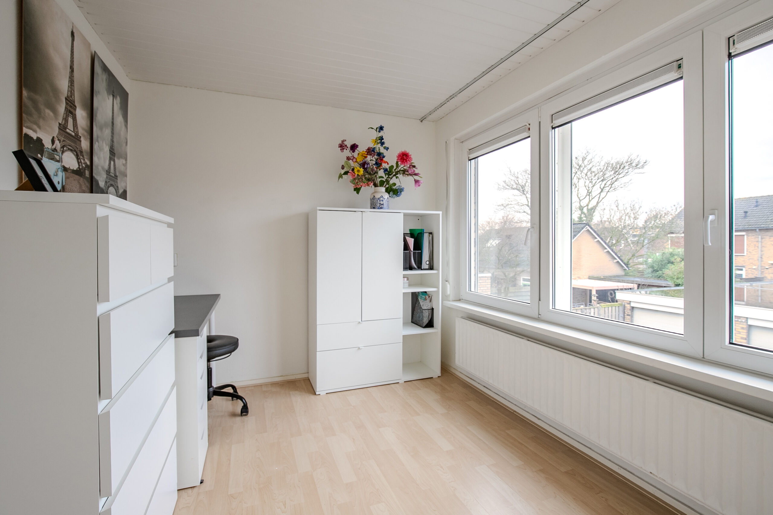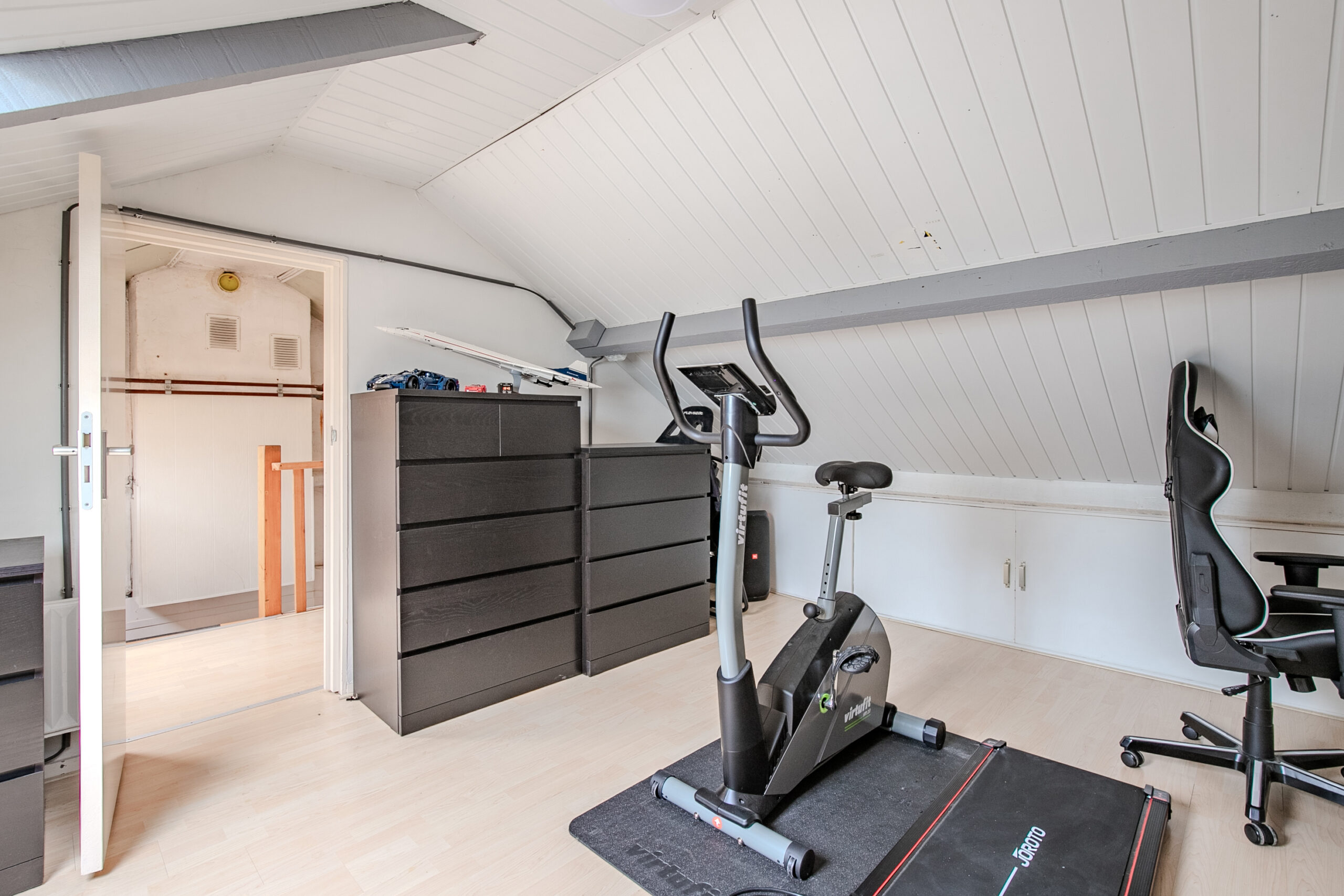 Bereikbaar middels vaste trap. Voorzolder voorzien van een dakraam en opstelling van cv-ketel (Nefit, eigendom, 2022). Derde slaapkamer (circa 11 m2) voorzien van een laminaatvloer, dakraam met verduisteringsgordijn en volop opbergruimte in de knieschotten.