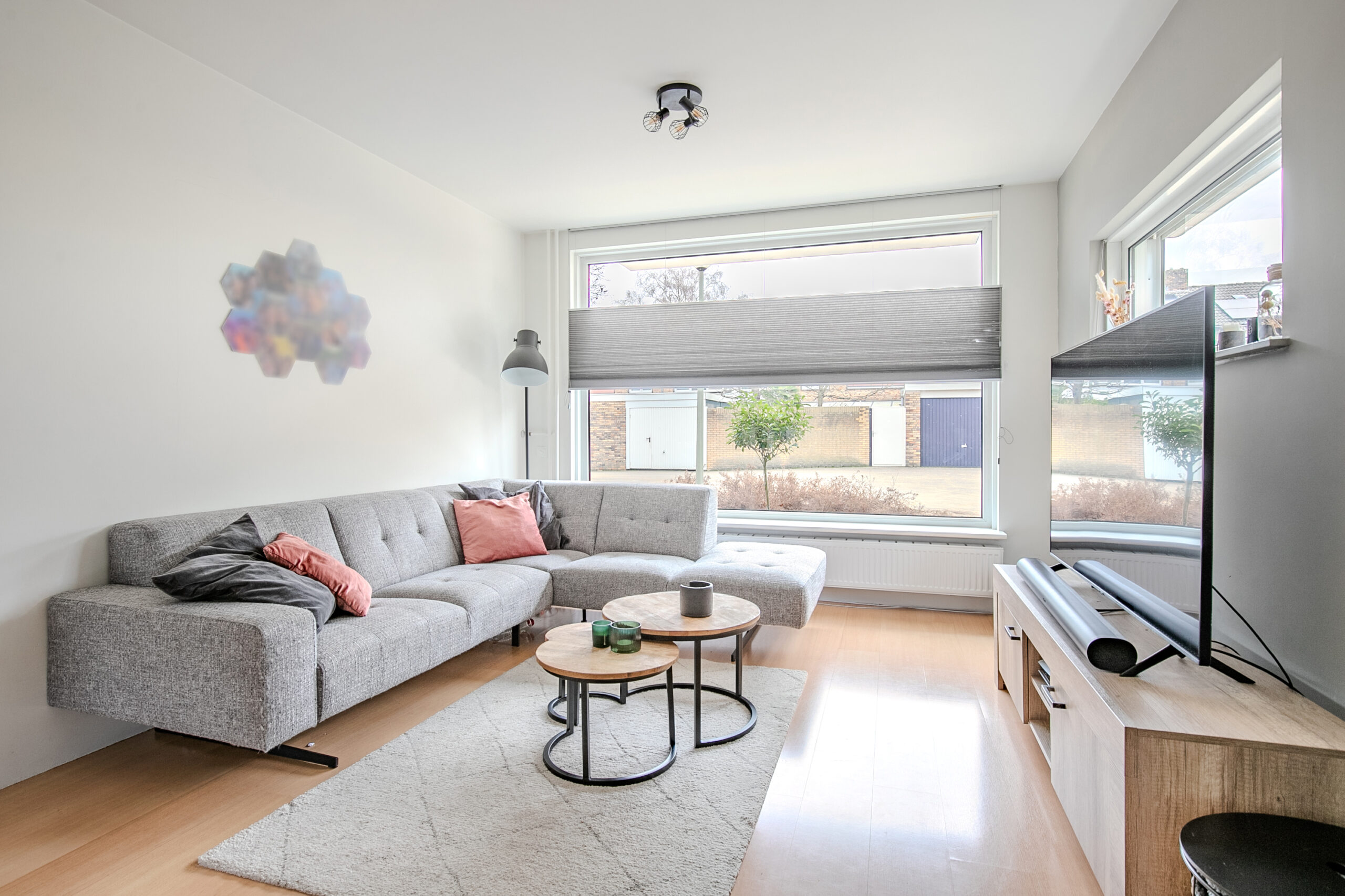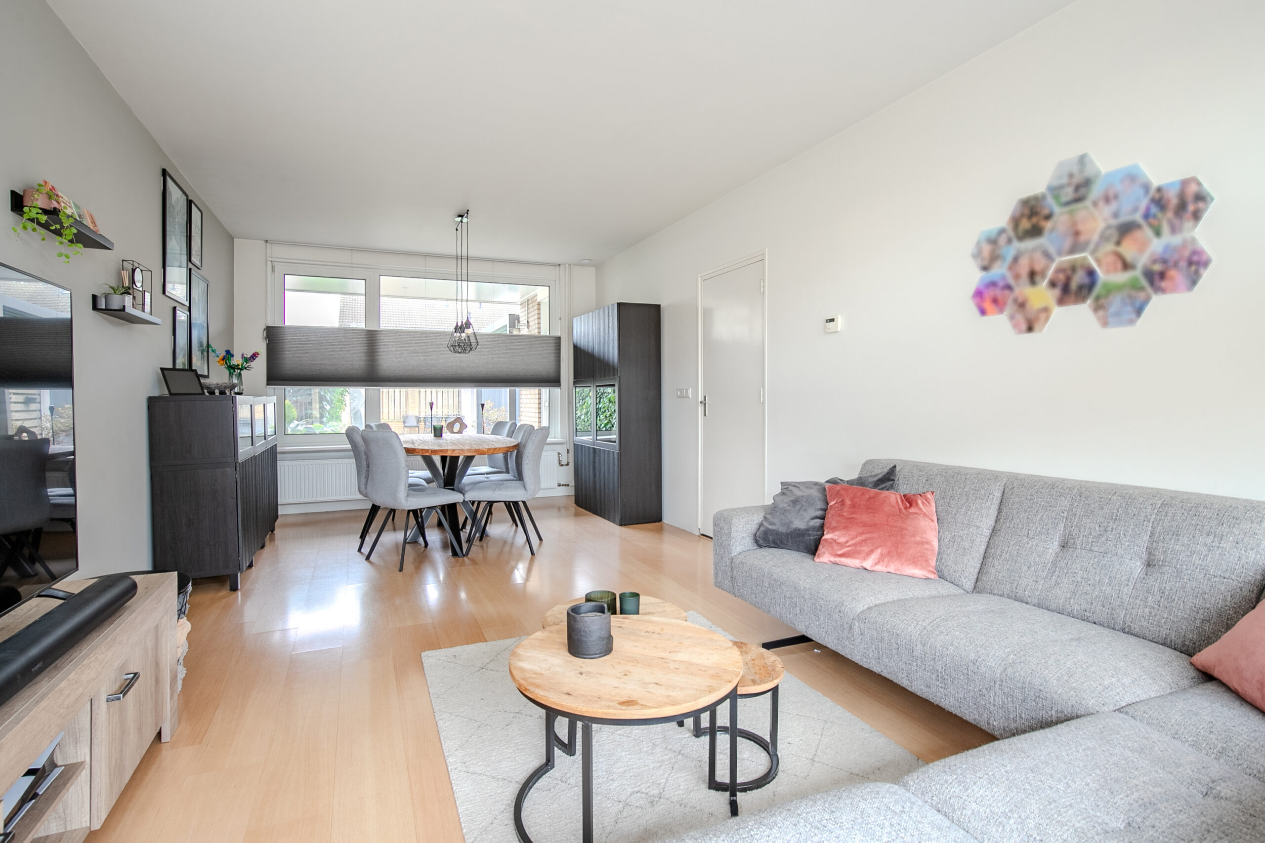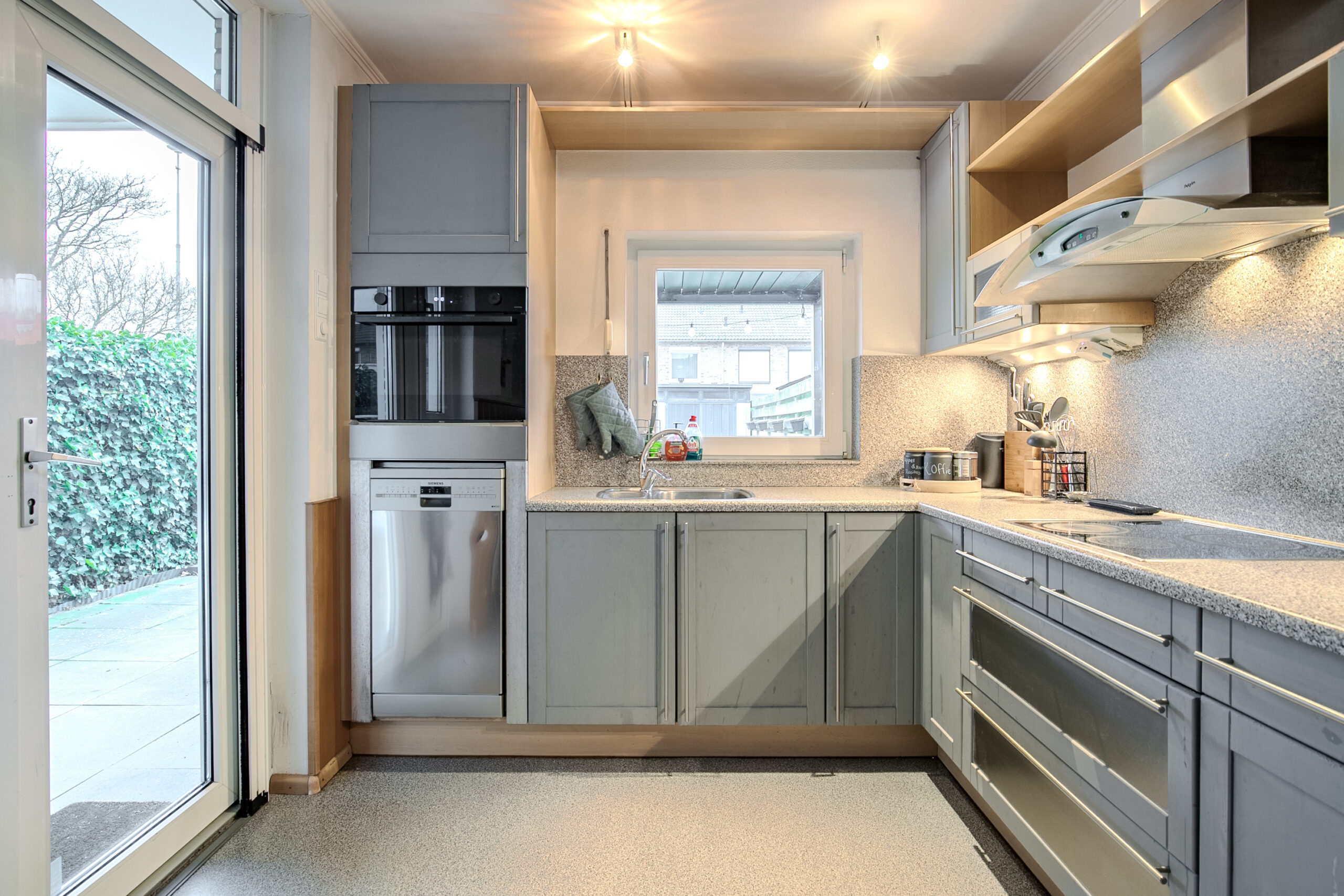 Lichte doorzonwoonkamer (circa 27 m2) voorzien van laminaatvloer. Door de vele raampartijen is er prettig lichtinval en tevens tuincontact. Recent is de woonkamer opnieuw gestuct en geschilderd, zijn de radiatoren vernieuwd en zijn er verschillende stroompunten bij gemaakt. Aan de voorzijde is een elektrische screen aanwezig. De gesloten keuken (circa 14 m2) is in het verleden uitgebouwd waardoor er een fijne werkruimte ontstaat. De keuken is voorzien van een hoekopstelling met de navolgende installaties: oven (2024), elektrische kookplaat, losse koelkast (ter overname), vaatwasser, close-in boiler, spoelbak, afzuigkap en diverse opbergkastjes en lades. Er is een praktische trapkast toegankelijk als extra opbergruimte of als voorraadkast.