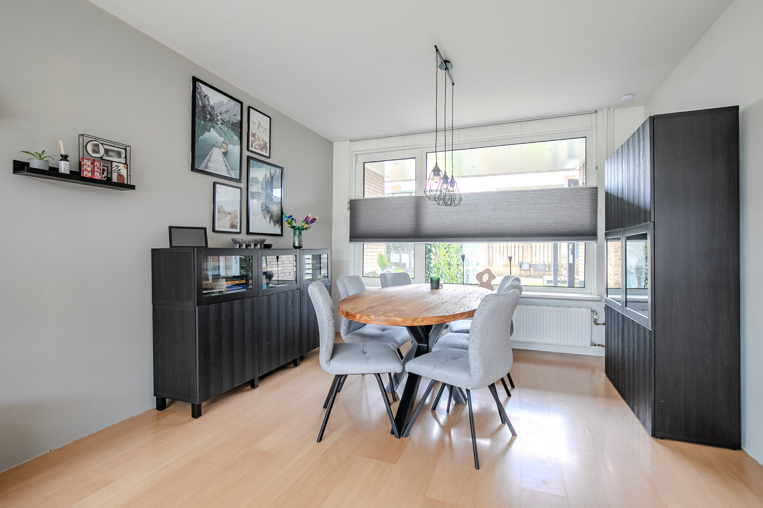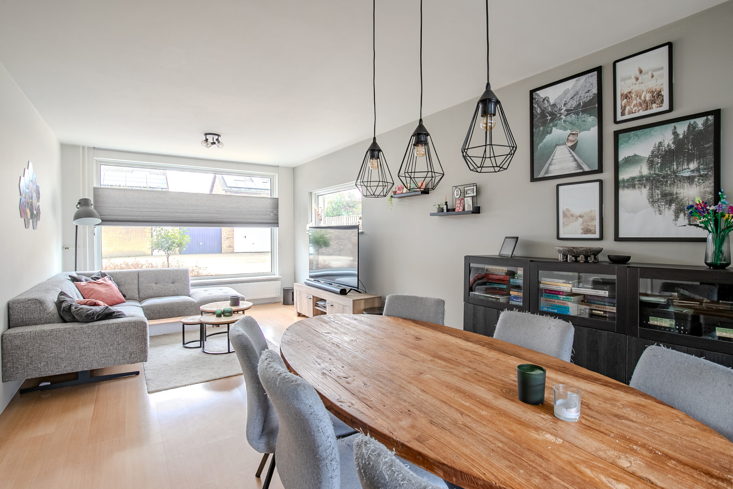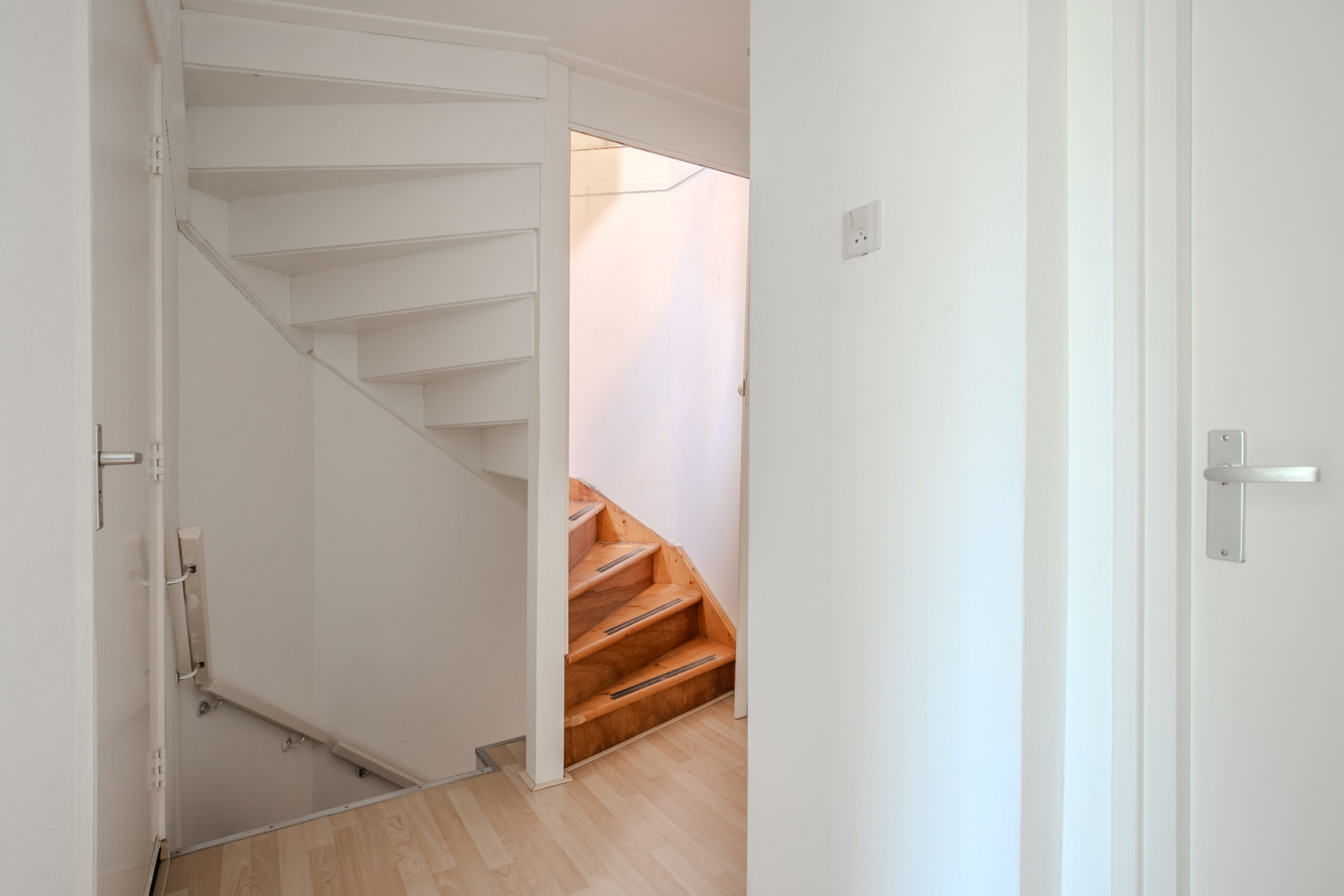 Lichte doorzonwoonkamer (circa 27 m2) voorzien van laminaatvloer. Door de vele raampartijen is er prettig lichtinval en tevens tuincontact. Recent is de woonkamer opnieuw gestuct en geschilderd, zijn de radiatoren vernieuwd en zijn er verschillende stroompunten bij gemaakt. Aan de voorzijde is een elektrische screen aanwezig. De gesloten keuken (circa 14 m2) is in het verleden uitgebouwd waardoor er een fijne werkruimte ontstaat. De keuken is voorzien van een hoekopstelling met de navolgende installaties: oven (2024), elektrische kookplaat, losse koelkast (ter overname), vaatwasser, close-in boiler, spoelbak, afzuigkap en diverse opbergkastjes en lades. Er is een praktische trapkast toegankelijk als extra opbergruimte of als voorraadkast.