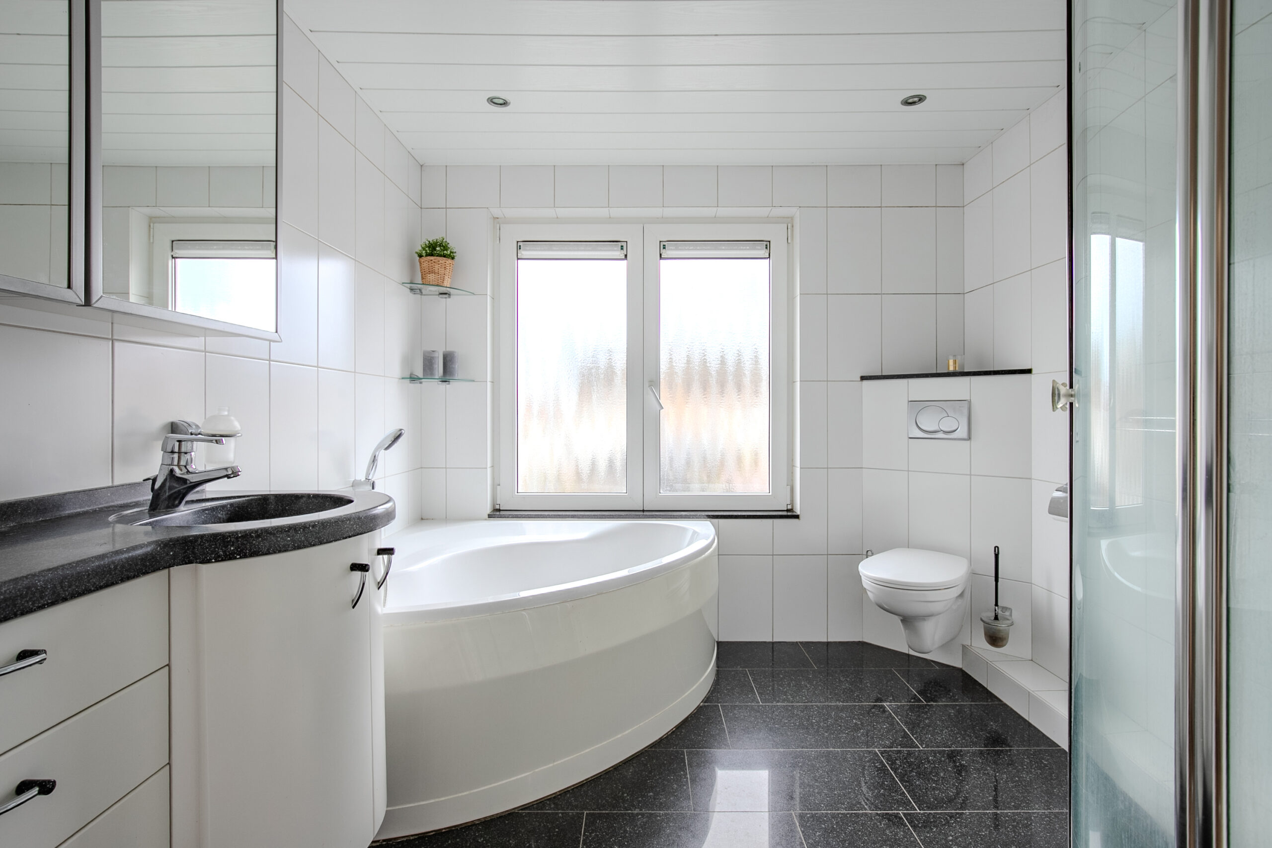 - Badkamervoorzieningen Ligbad, toilet, douche, wastafel, wastafelmeubel, vloerverwarming