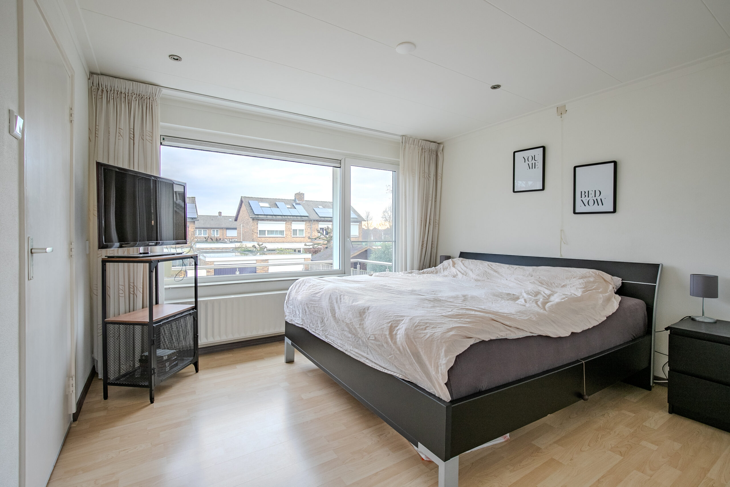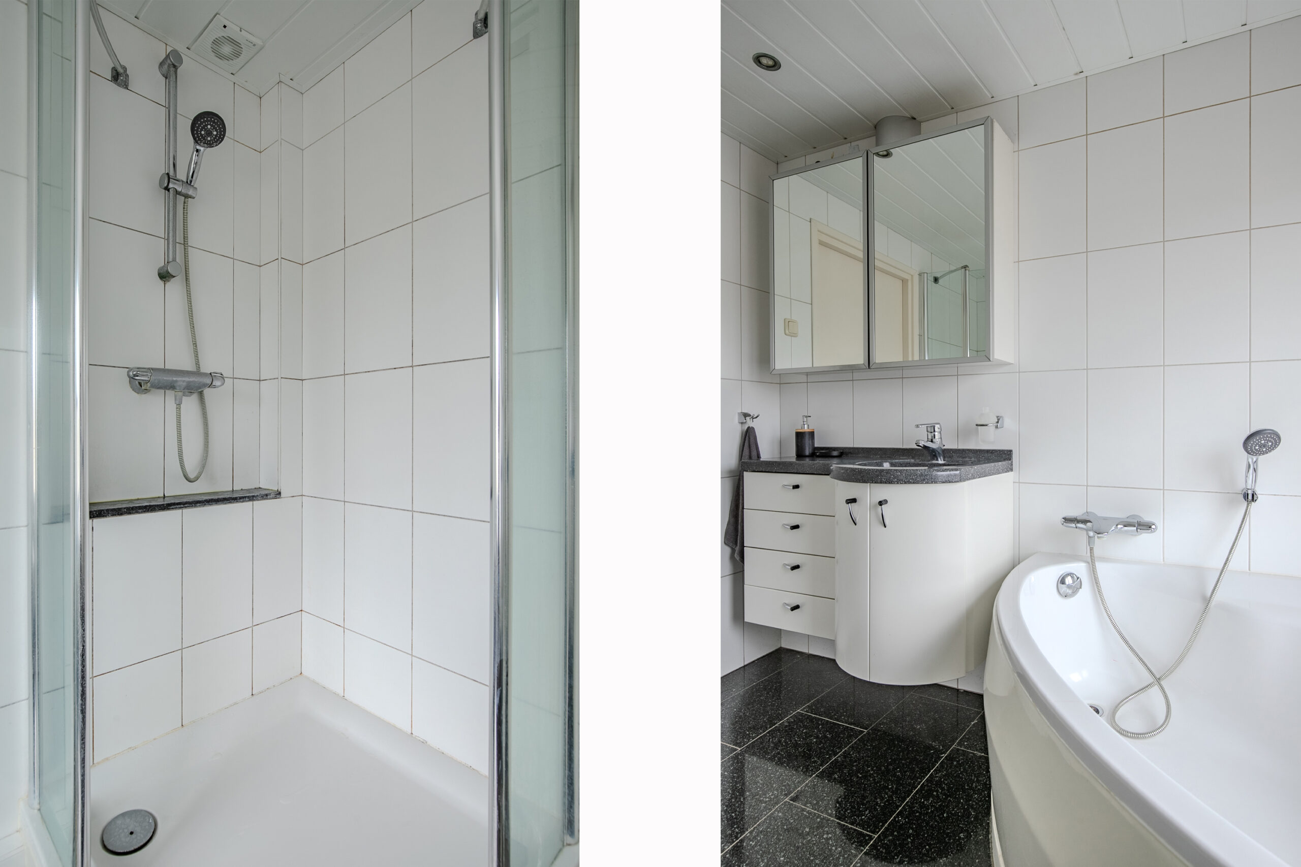 Overloop met praktische muurkast, die toegang geeft tot de twee slaapkamers (mogelijkheid voor drie slaapkamers), wasruimte en badkamer. De slaapkamers zijn respectievelijk circa 12 m2 en 9 m2 en voorzien van laminaatvloeren. De grote slaapkamer is aan de voorzijde gelegen en voorzien van een heuse walk-in-closet (circa 7 m2). Dit is een voormalige slaapkamer die ook weer gemakkelijk is terug te brengen. Ook is er toegang tot het balkon. Geheel betegelde badkamer (circa 6 m2) is voorzien van een douche, hoekbad, vaste wastafel met meubel en zwevend closet. Aparte washok voorzien voor aansluitpunten van het witgoed.