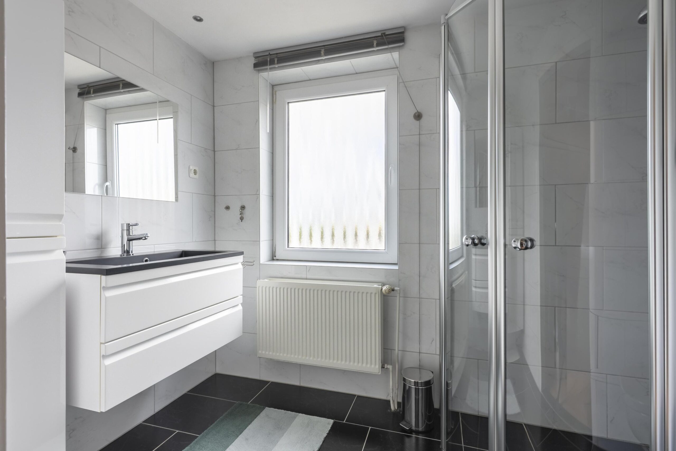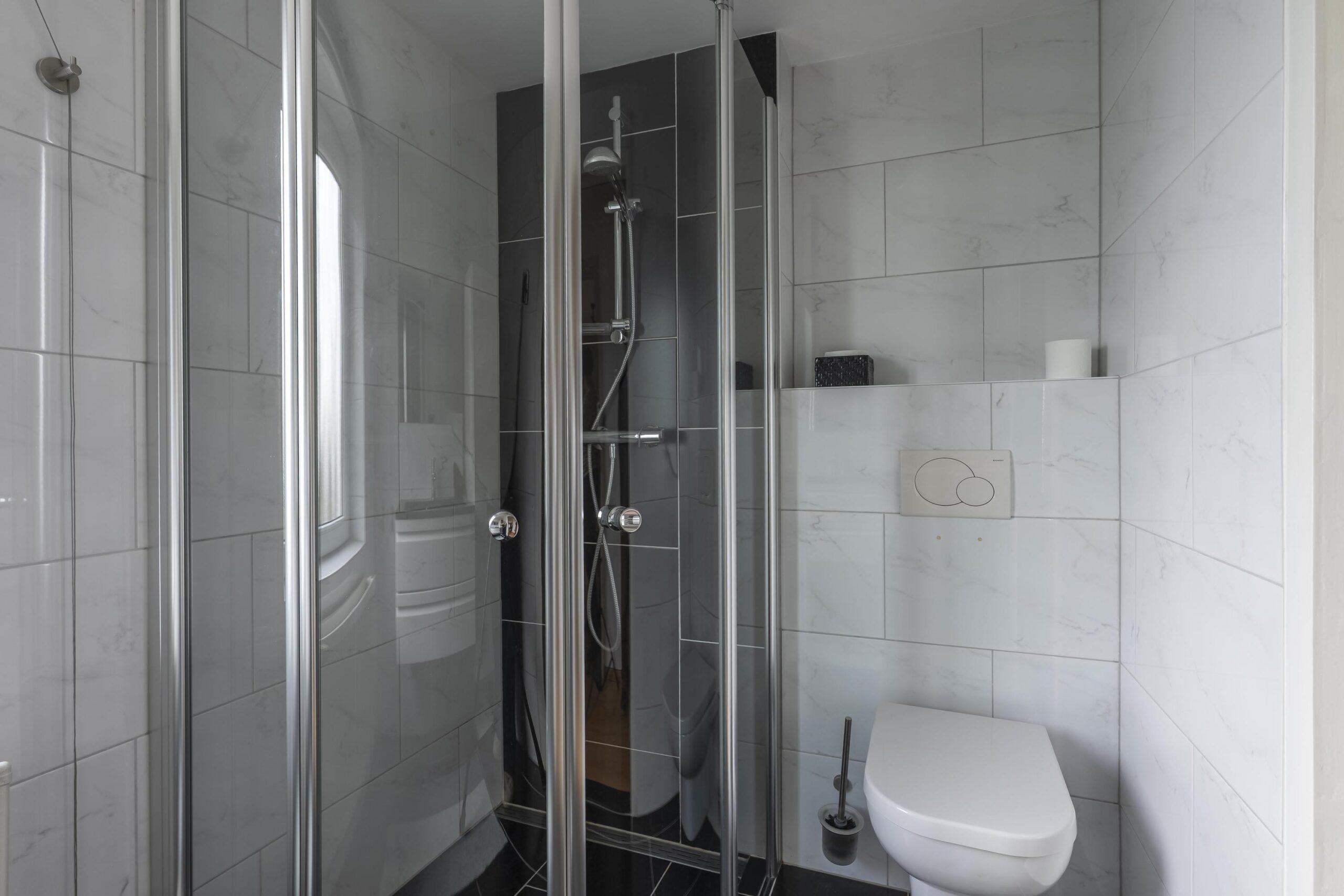 De badkamer is groot ca. 5 m² en is voorzien van een douche, wastafelmeubel en zwevend toilet.