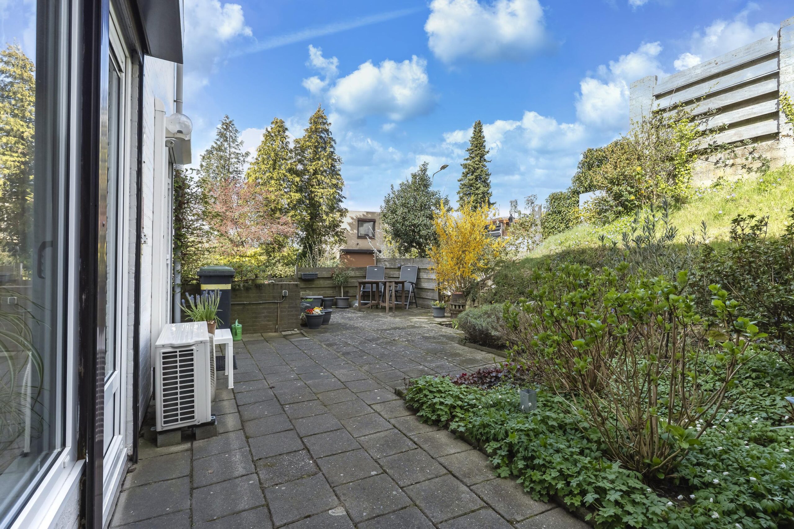 De achtertuin is op het noord-westen gelegen en is voorzien van een ruim terras, achterom en een houten tuinhuis.