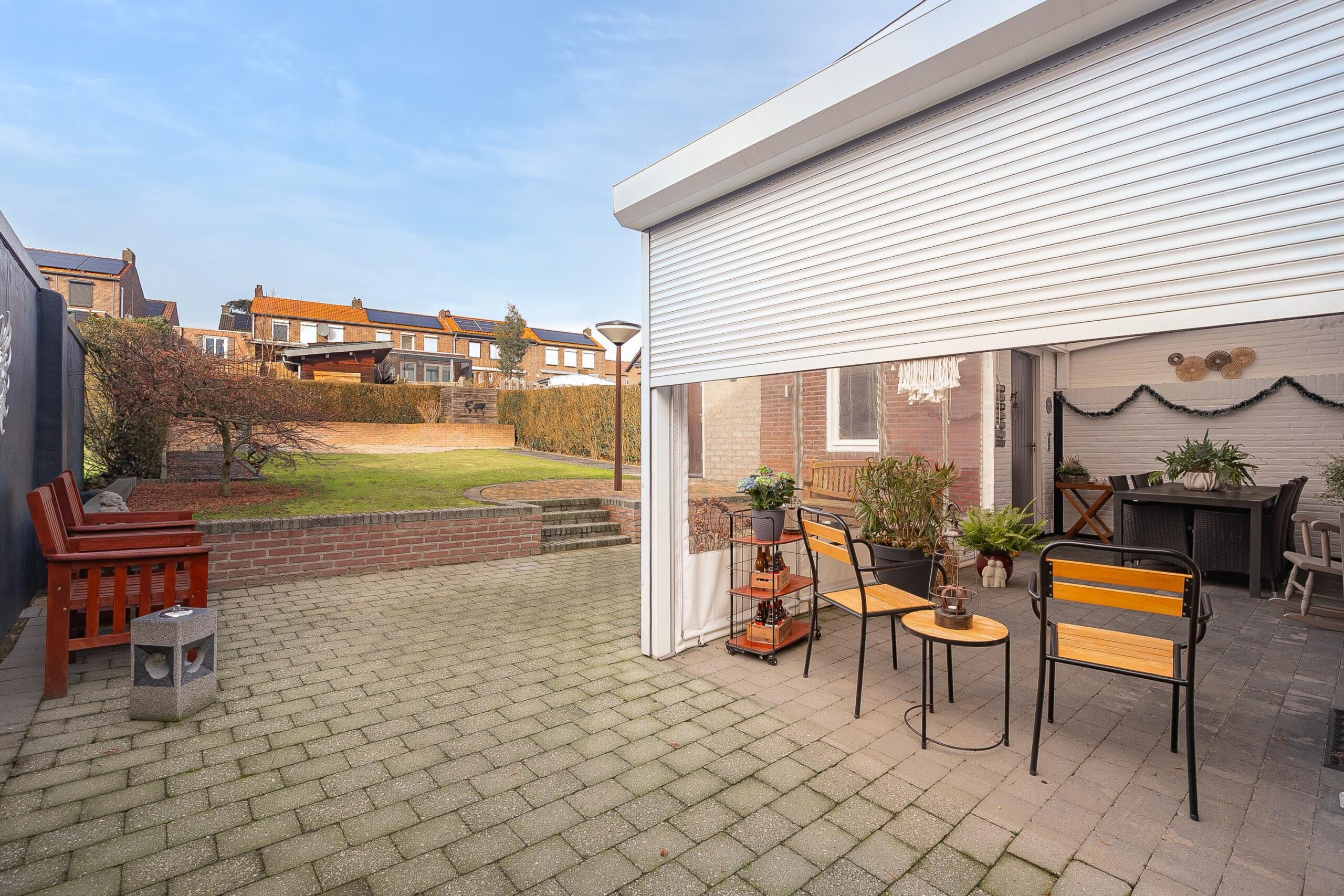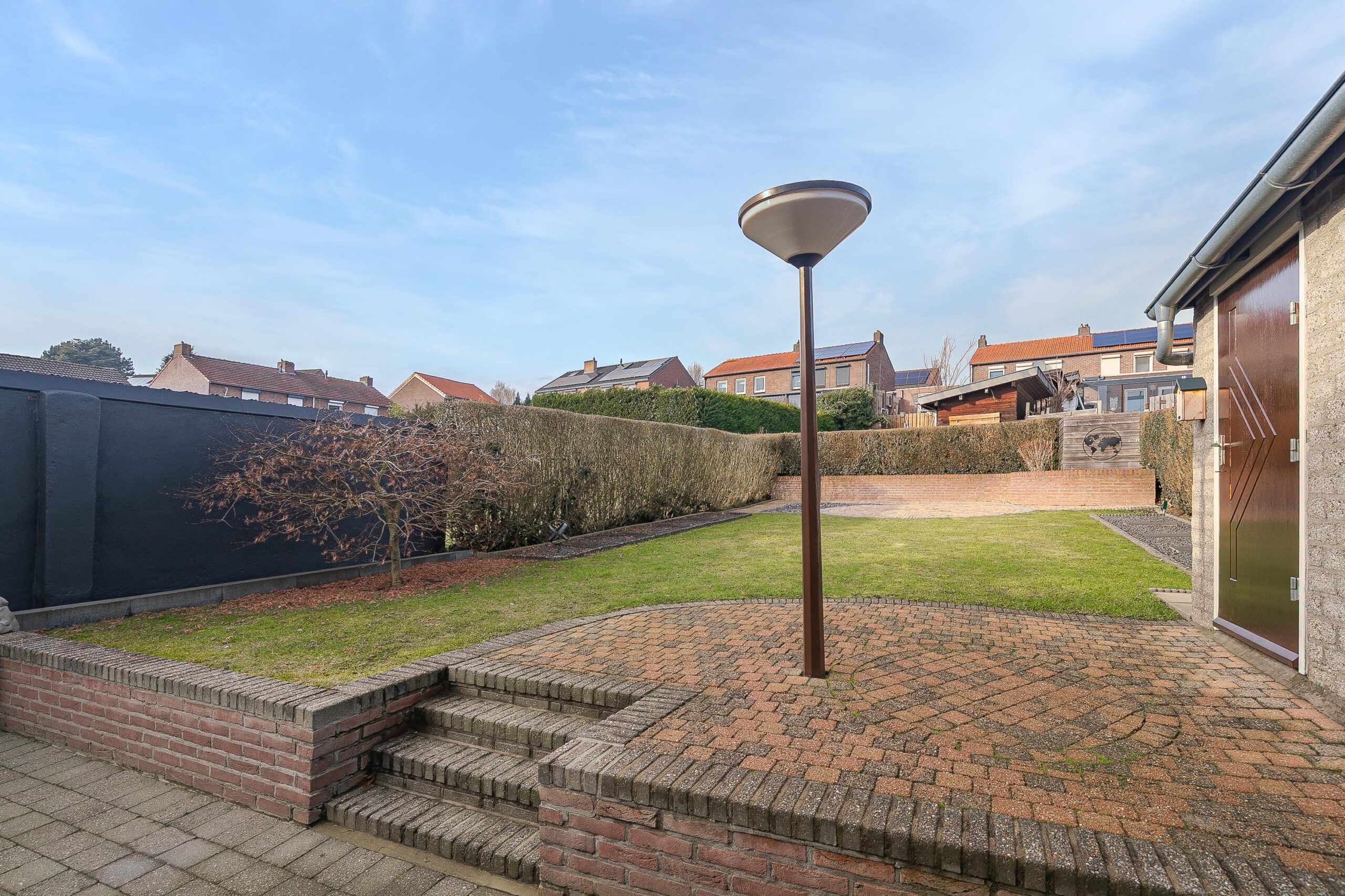 De royale en onderhoudsvriendelijke tuin is rondom gesloten middels hagen en bereikbaar via de zijingang.