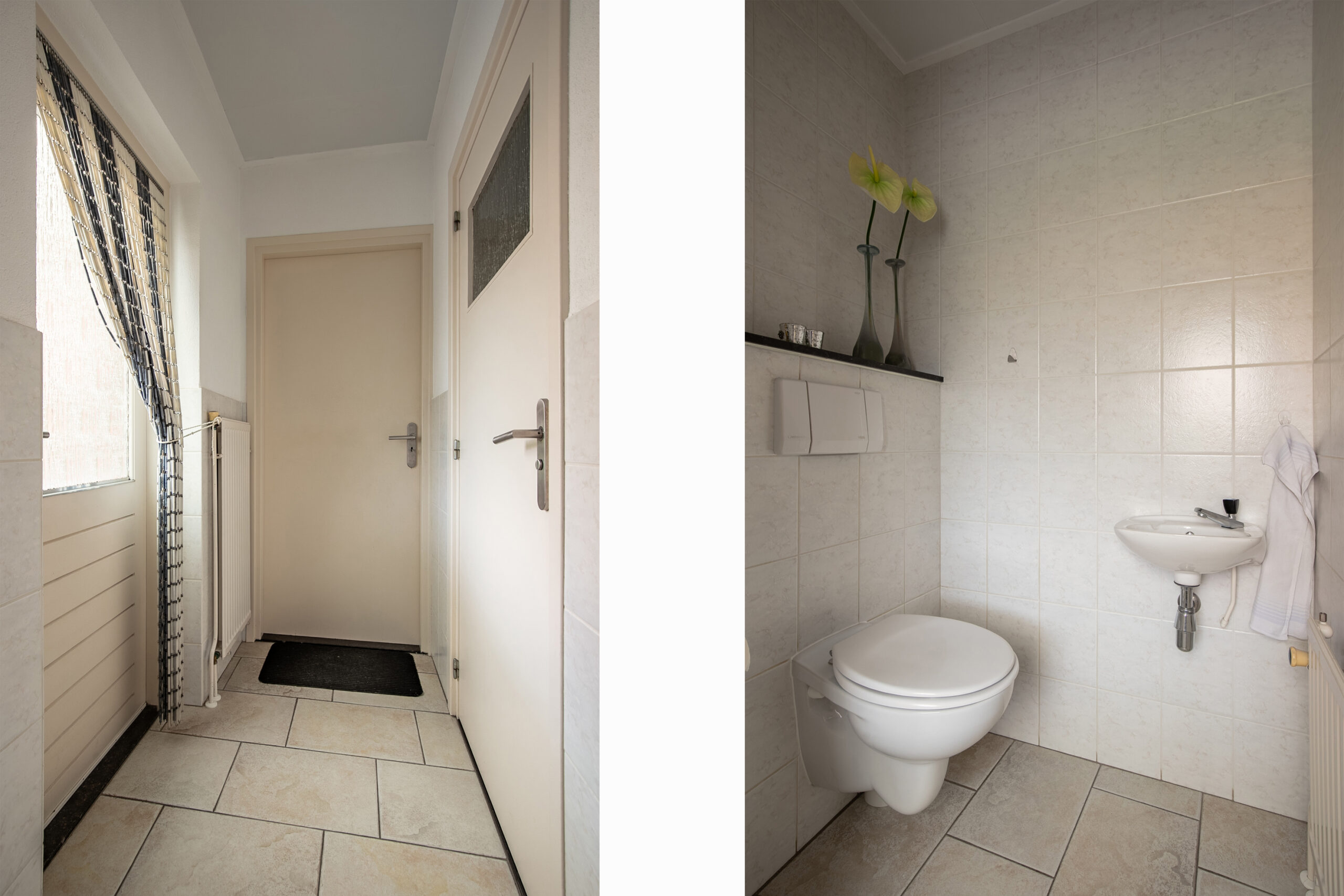 Vanuit de keuken bereiken we via een tussenhal het toilet en de inpandig bereikbare garage. Hier is tevens de witgoedaansluiting aanwezig. Vanuit de garage bereiken we één van de provisiekelders.