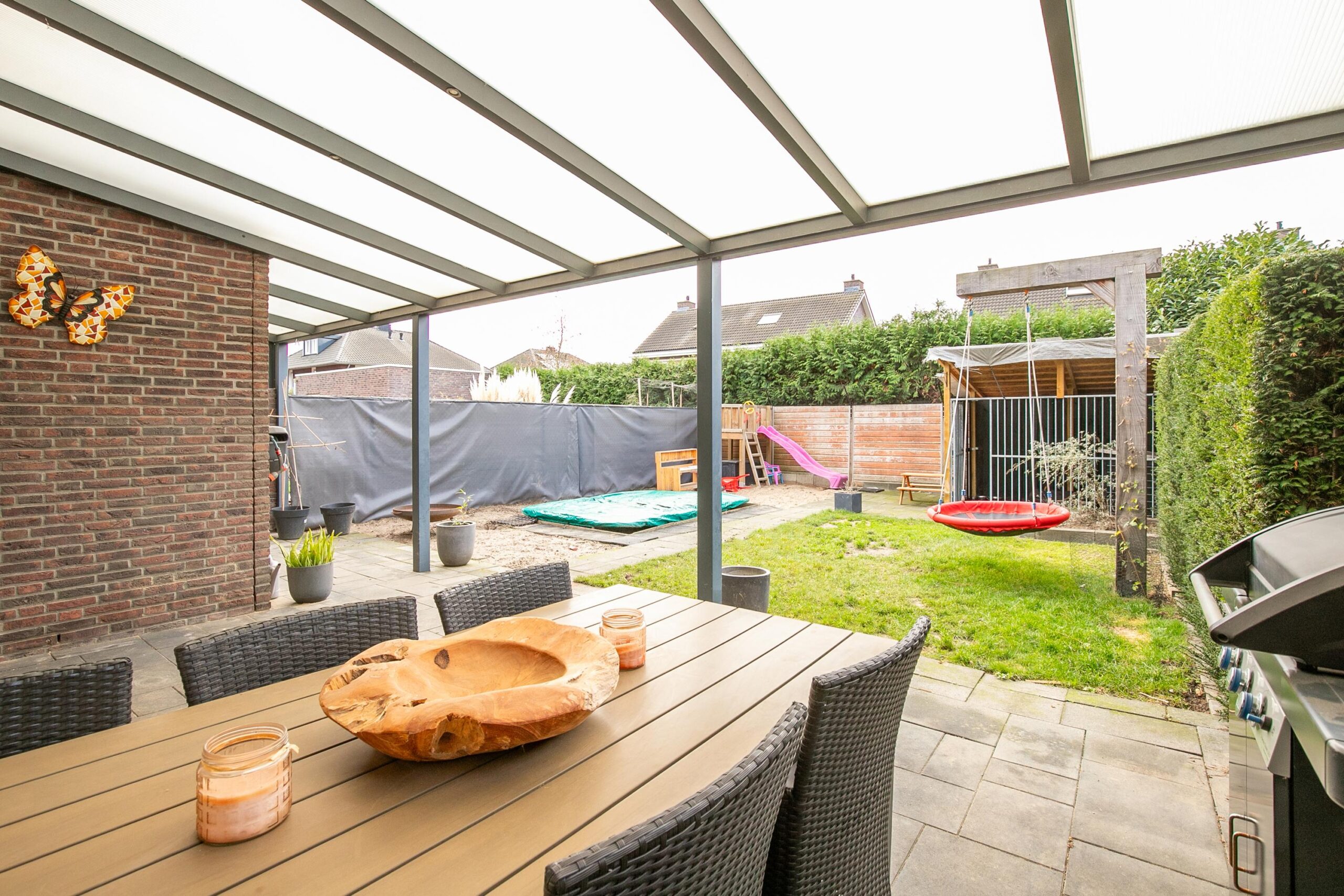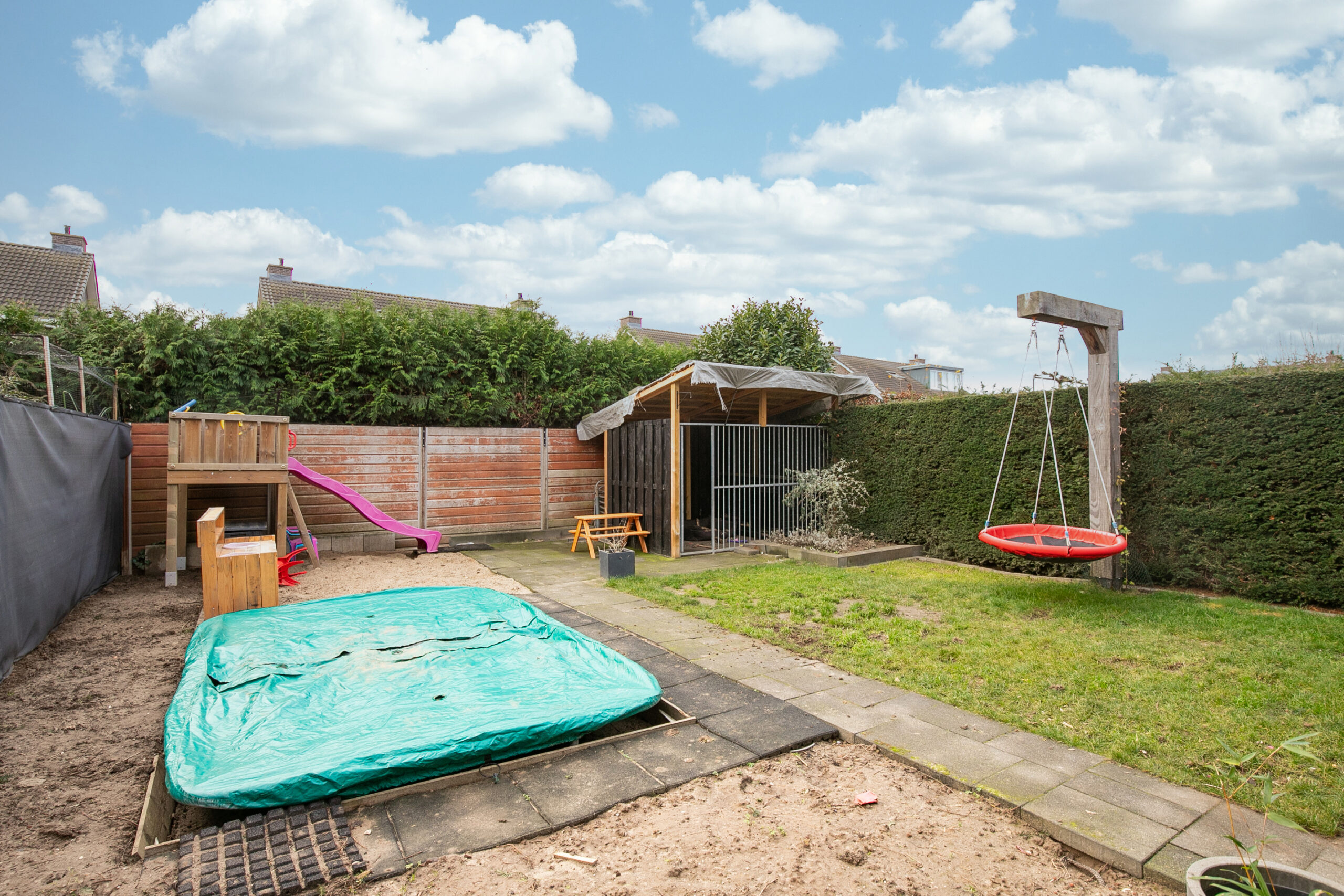 De achtertuin is geheel omsloten, ongeveer 12 meter diep en gelegen op het zuidwesten, waardoor er de hele dag zon- en schaduwplekken zijn. Er is een grote terrasoverkapping, hierdoor is het heerlijk buitenzitten, maar ook heel fijn om overdekt naar de garage te kunnen gaan. De garage is 6.00 x 3.00, deze is verwarmd en ook hier zijn aansluitpunten voor wasapparatuur.
