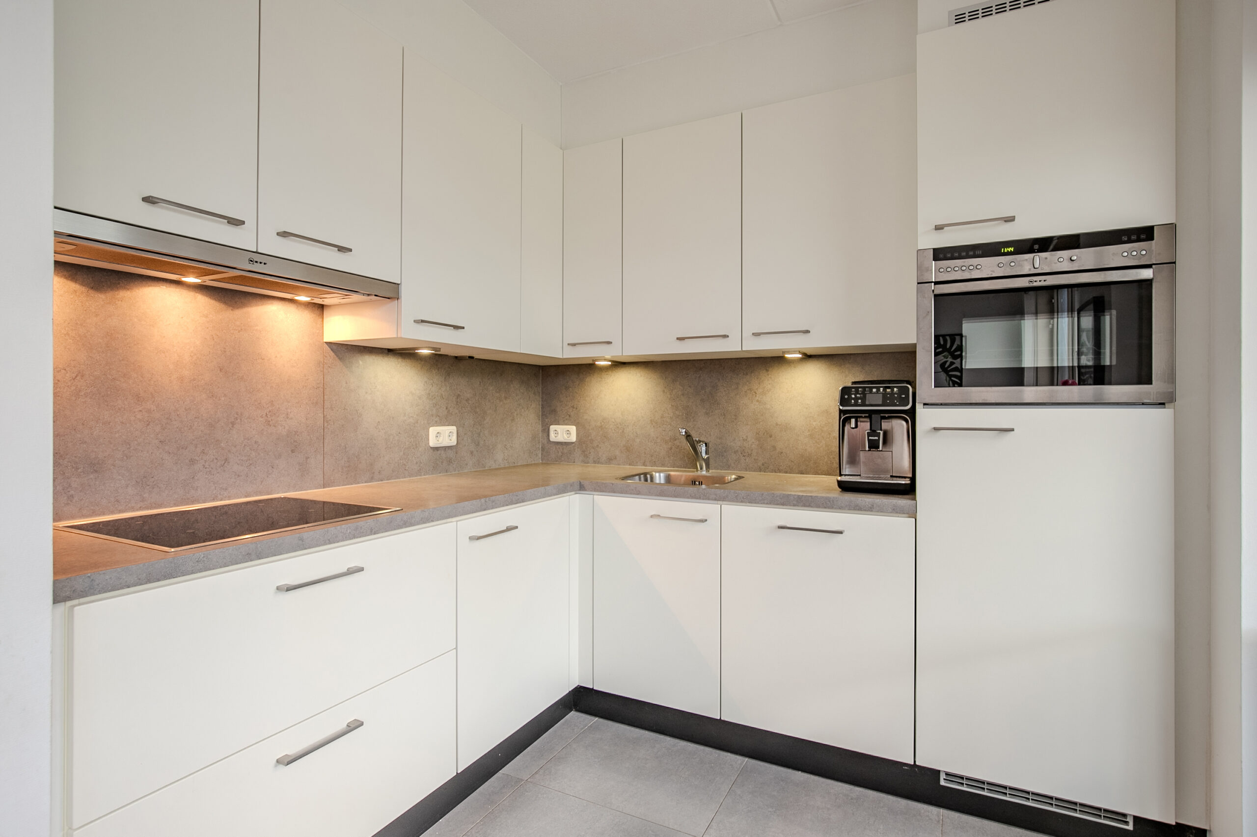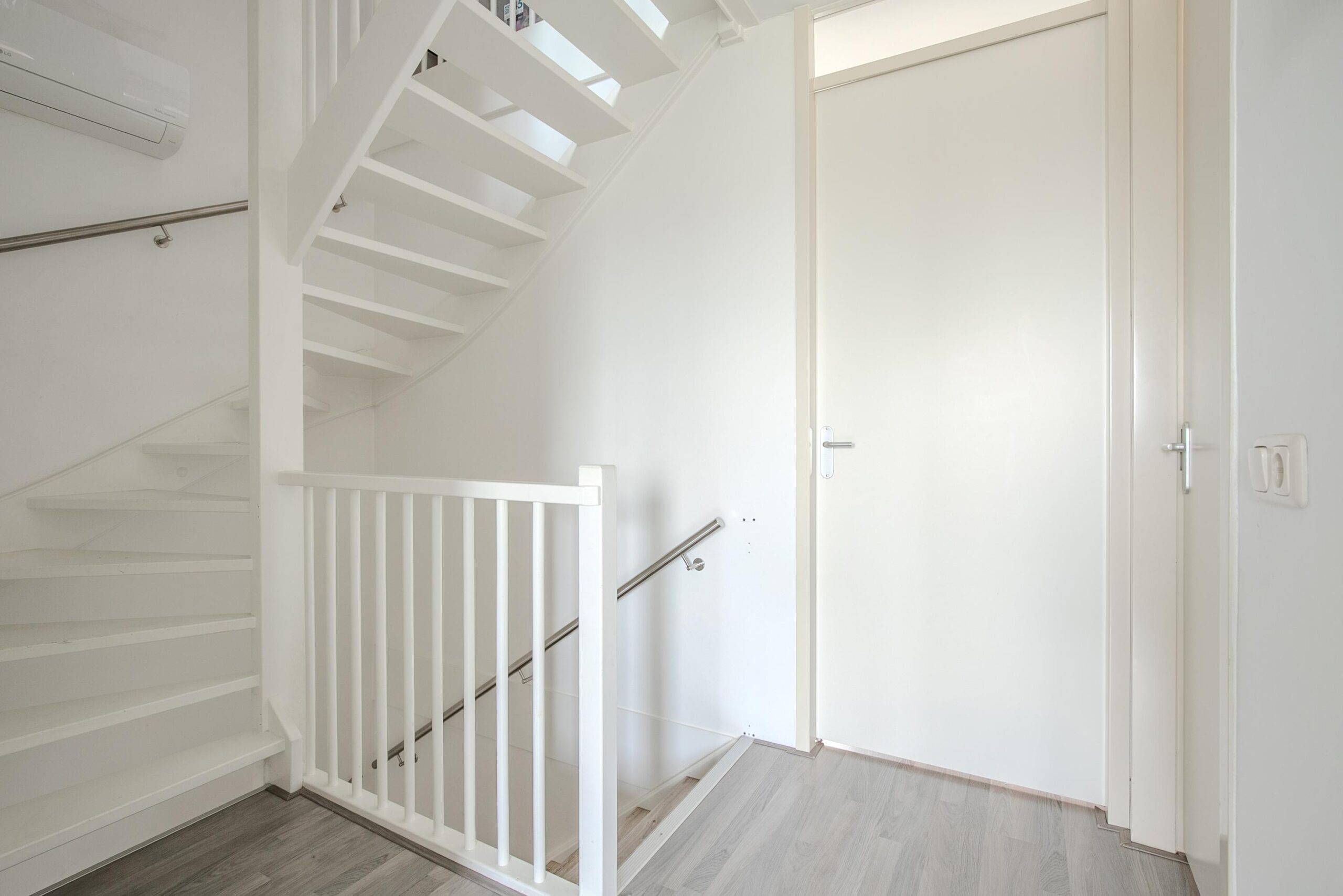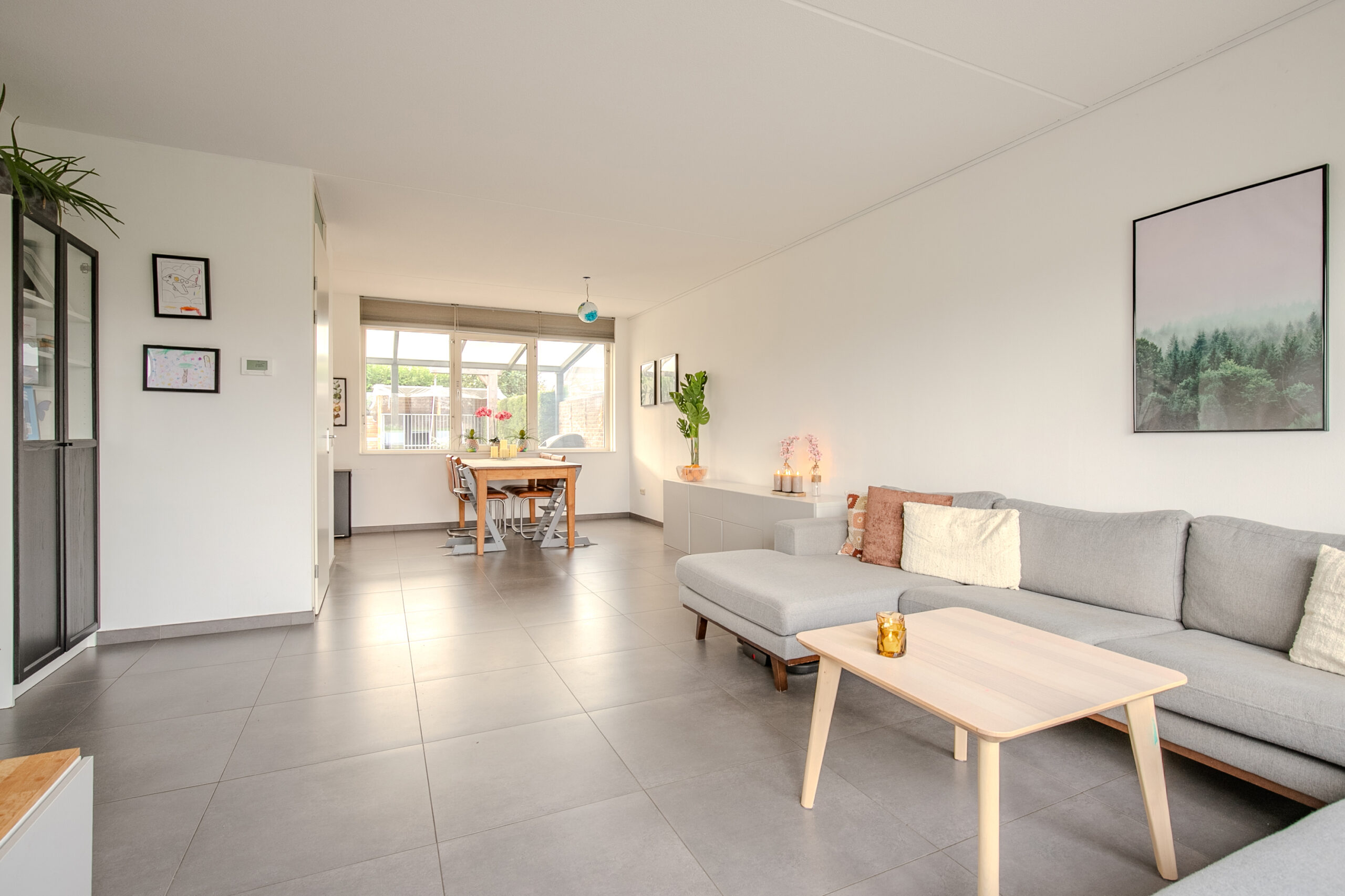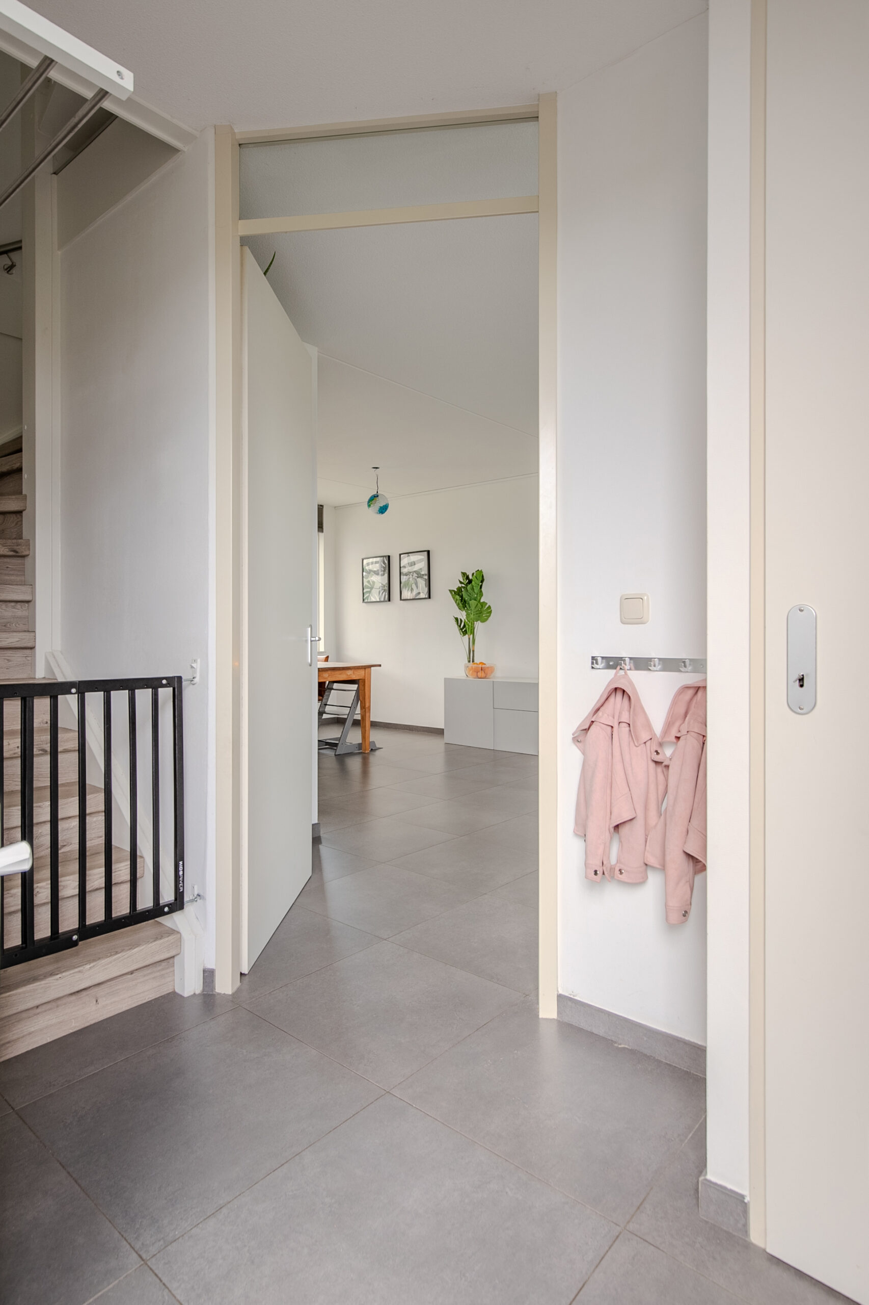 De royale oprit biedt plaats aan twee auto’s die naast elkaar geparkeerd kunnen worden. De overdekte entree geeft toegang tot de ontvangsthal. Hier is het toilet en de meterkast, deze is voorzien van 3-fase waardoor er eenvoudig een laadpaal geplaatst kan worden. De toiletruimte is deels betegeld en heeft een zwevend toilet en een fonteintje. De woonkamer 8.20 x 4.00 heeft een grote raam aan voor- en achterzijde, waardoor deze heerlijk licht is. De breedte van liefst 4.00 meter zorgt er voor dat deze goed in te richten is. Er is een handige trapkast, waarin veel extra bergruimte is. De keuken 2.50 x 2.20 is halfopen en is voorzien van een neutrale hoekinstallatie met de volgende inbouwapparatuur: inductiekookplaat, afzuigkap, combi-oven, koelkast en vaatwasser. De totale oppervlakte van woonkamer en keuken bedraagt circa 37 m².