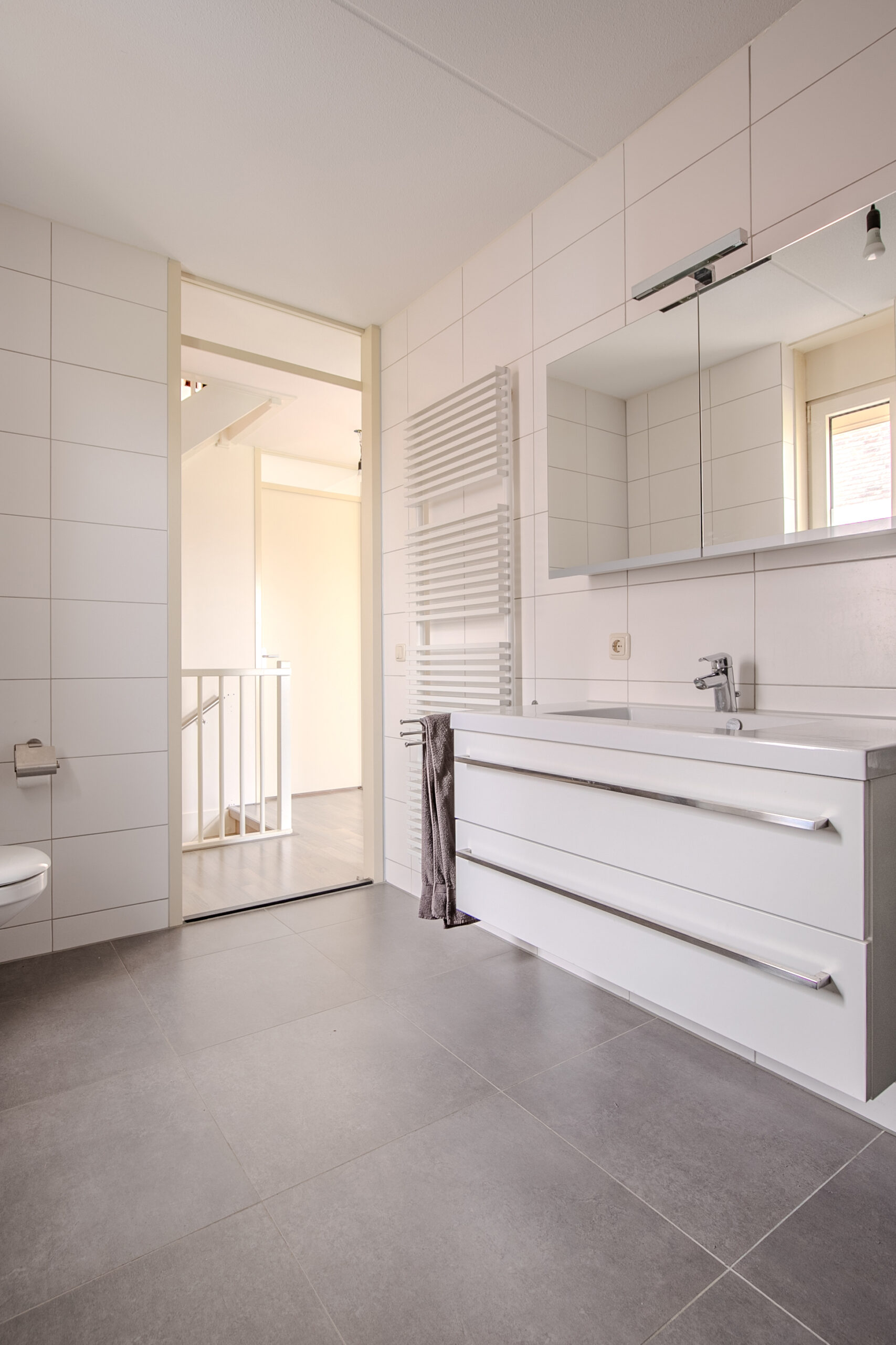 Vanaf de overloop is er toegang tot drie slaapkamers, met elk een goed en praktisch formaat: 4.00 x 3.30, 3.90 x 2.20 en 3.30 x 2.40 (13, 9 en 8 m²). Deze verdieping is voorzien van laminaatvloeren. De badkamer is zeer ruim 3.60 x 2.20 en licht omdat er een raam is. Deze badkamer heeft een neutrale en tijdloze kleurstelling, is geheel betegeld en heeft een ruime inloopdouche, een breed wastafelmeubel, een handige spiegelkast en een zwevend toilet.