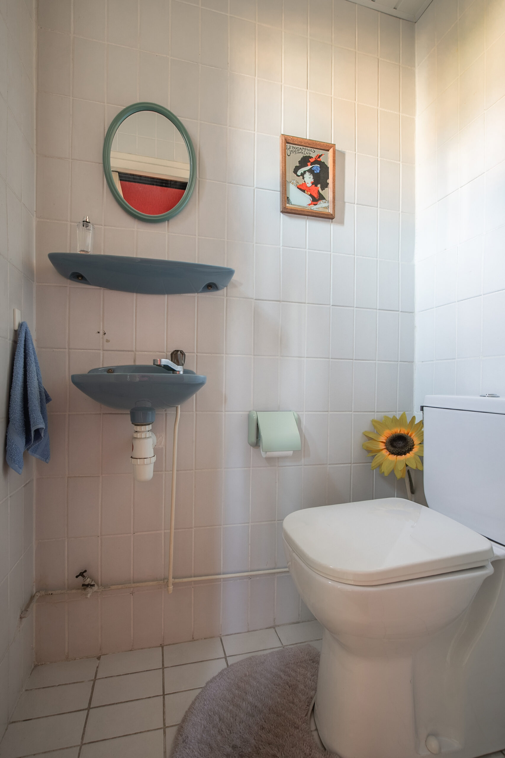 Via de entree komt u in de hal met toegang tot de toiletruimte, de trapopgang en de woonkamer.