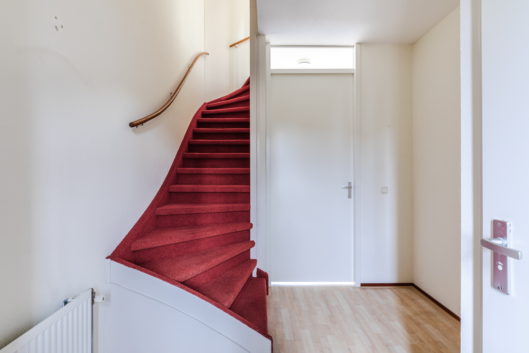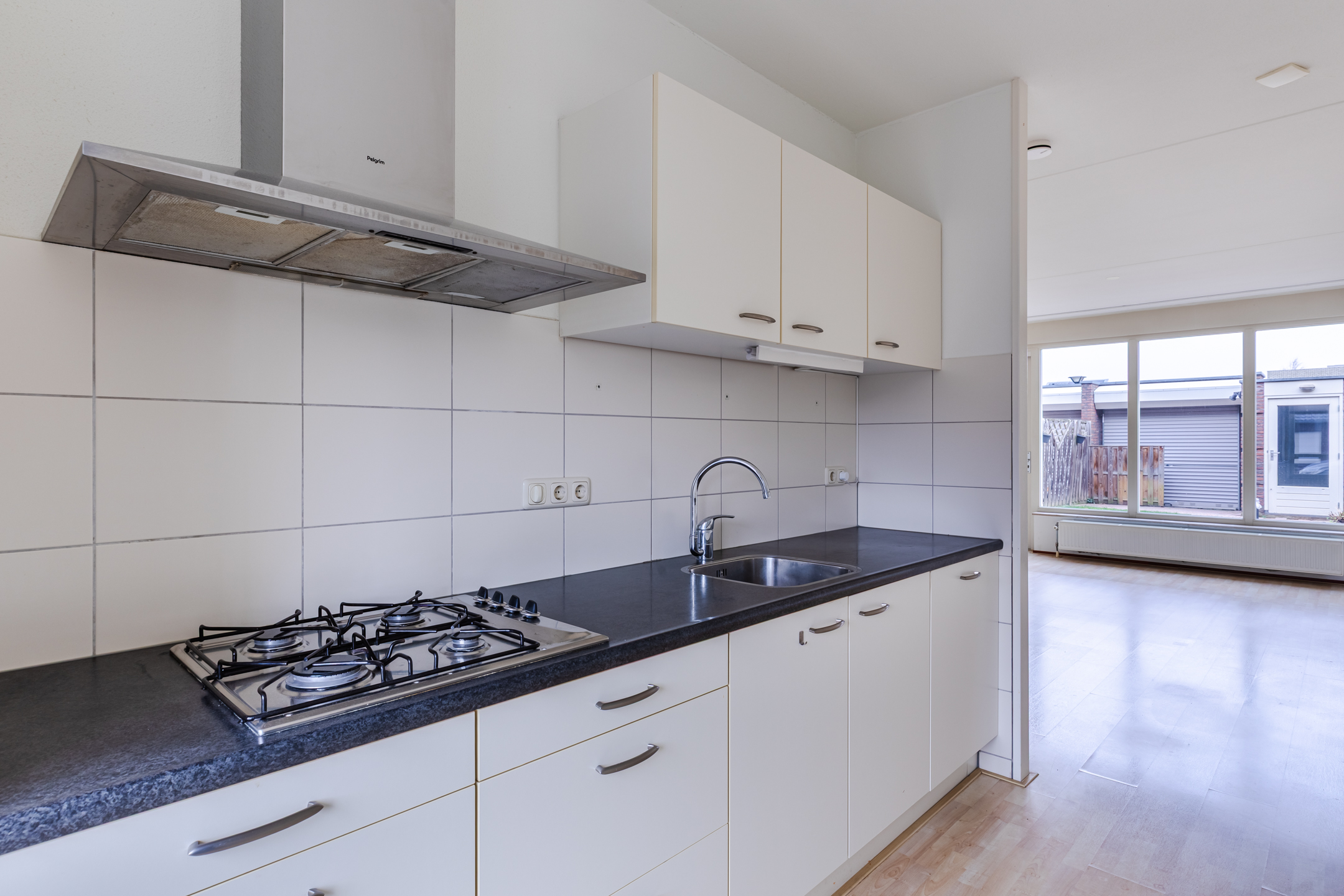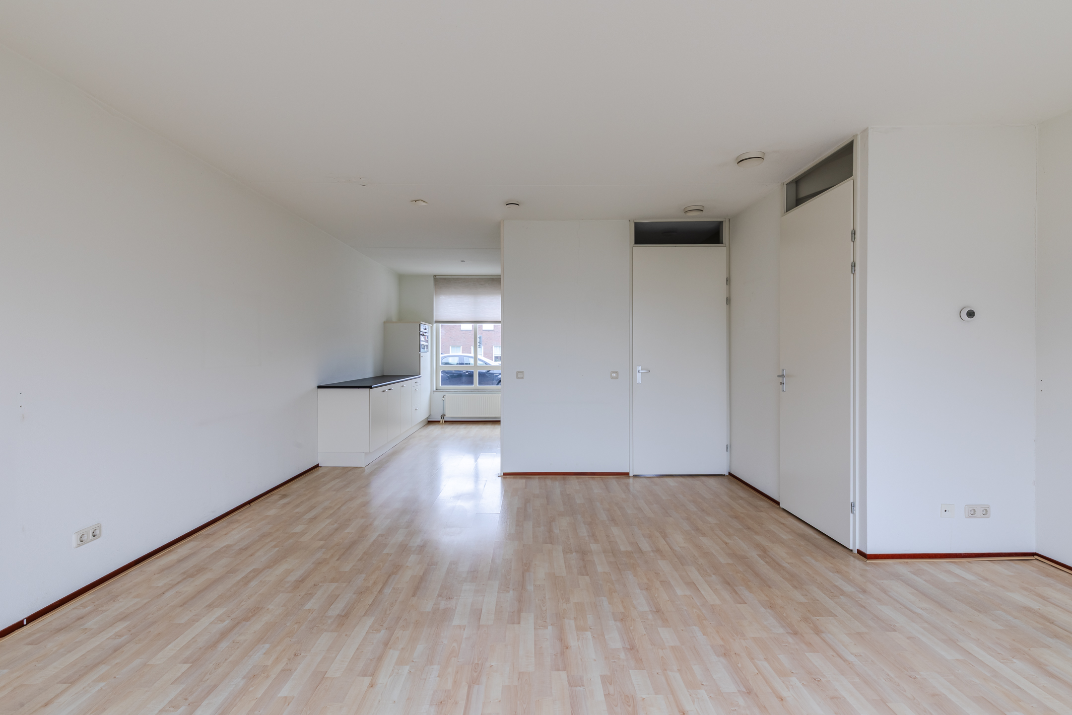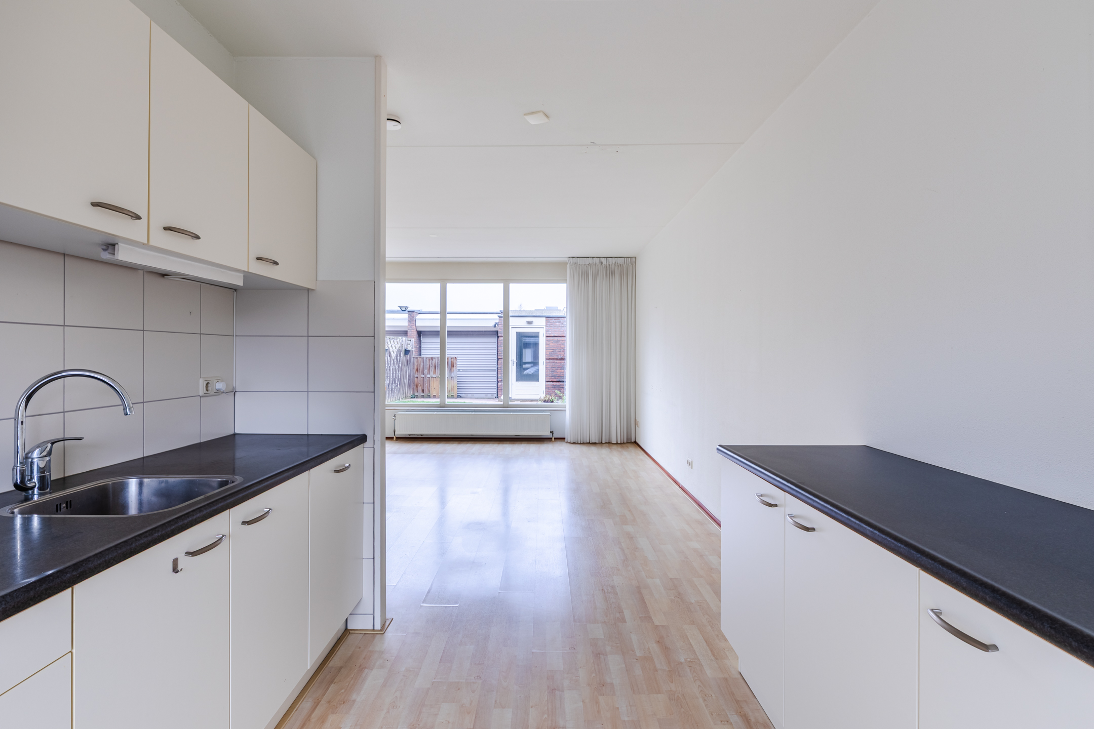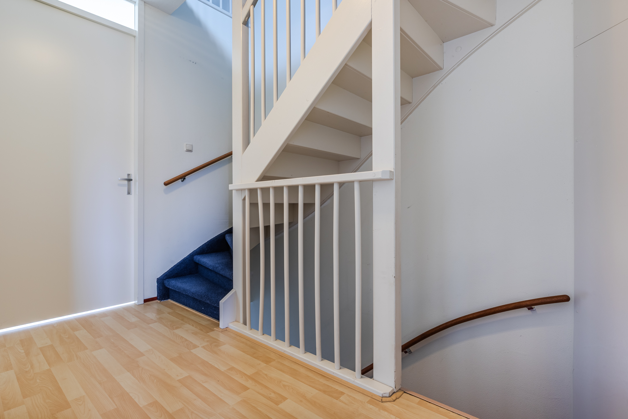 De hal is voorzien van de meterkast, trapopgang en de toiletruimte. De woonkamer is gelegen aan de achterzijde, heeft een handige bergkast en is licht met veel tuincontact. Aan de voorzijde van het huis is de keuken gelegen. Deze is voorzien van een witte keukeninstallatie, deze is inclusief de navolgende inbouwapparatuur: gaskookplaat, afzuigkap, koelkast, vrieskast, combioven en vaatwasser. De woonkamer en keuken is 9.30 x 5.40/2.70 en hebben een totale oppervlakte van ca. 39 m².