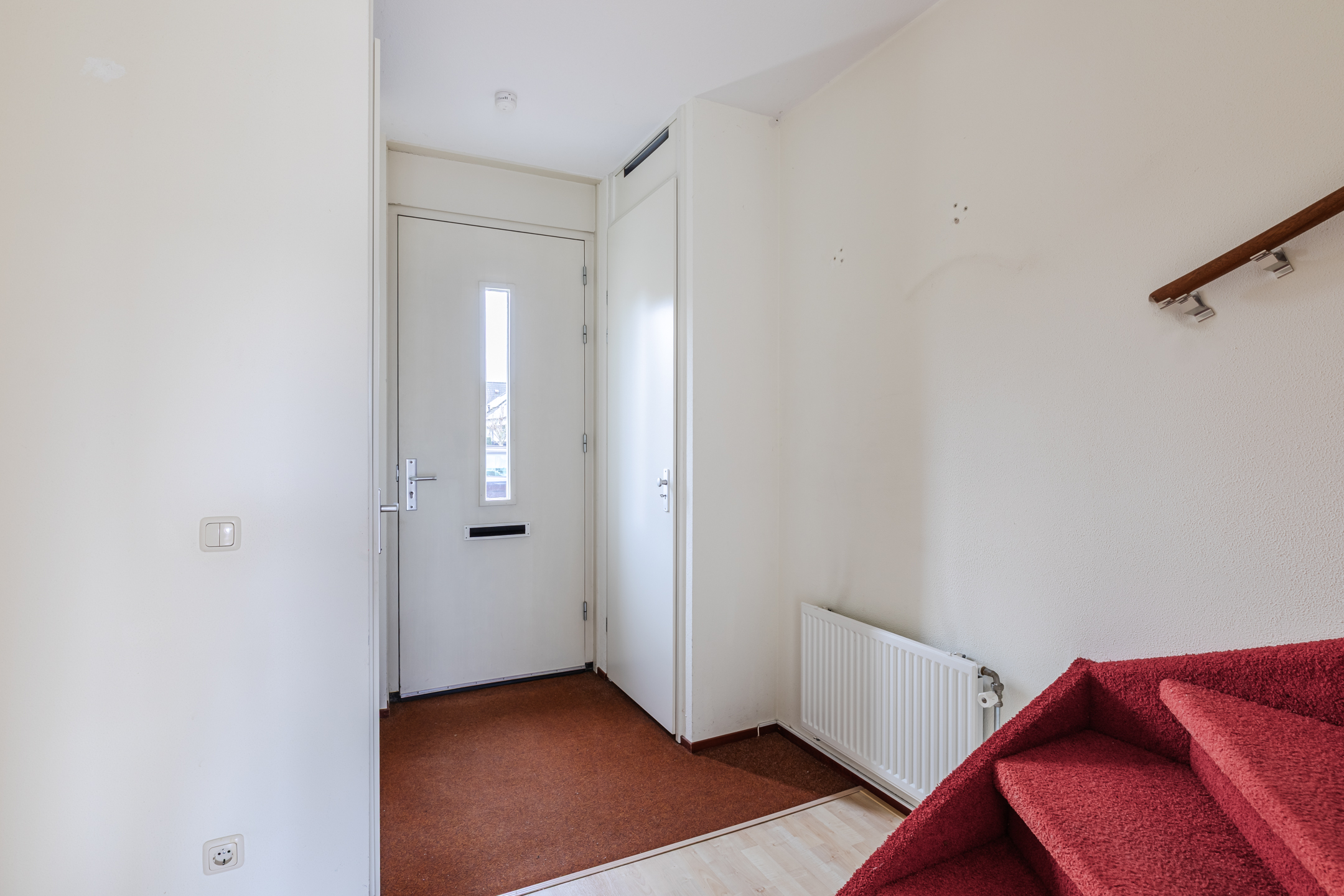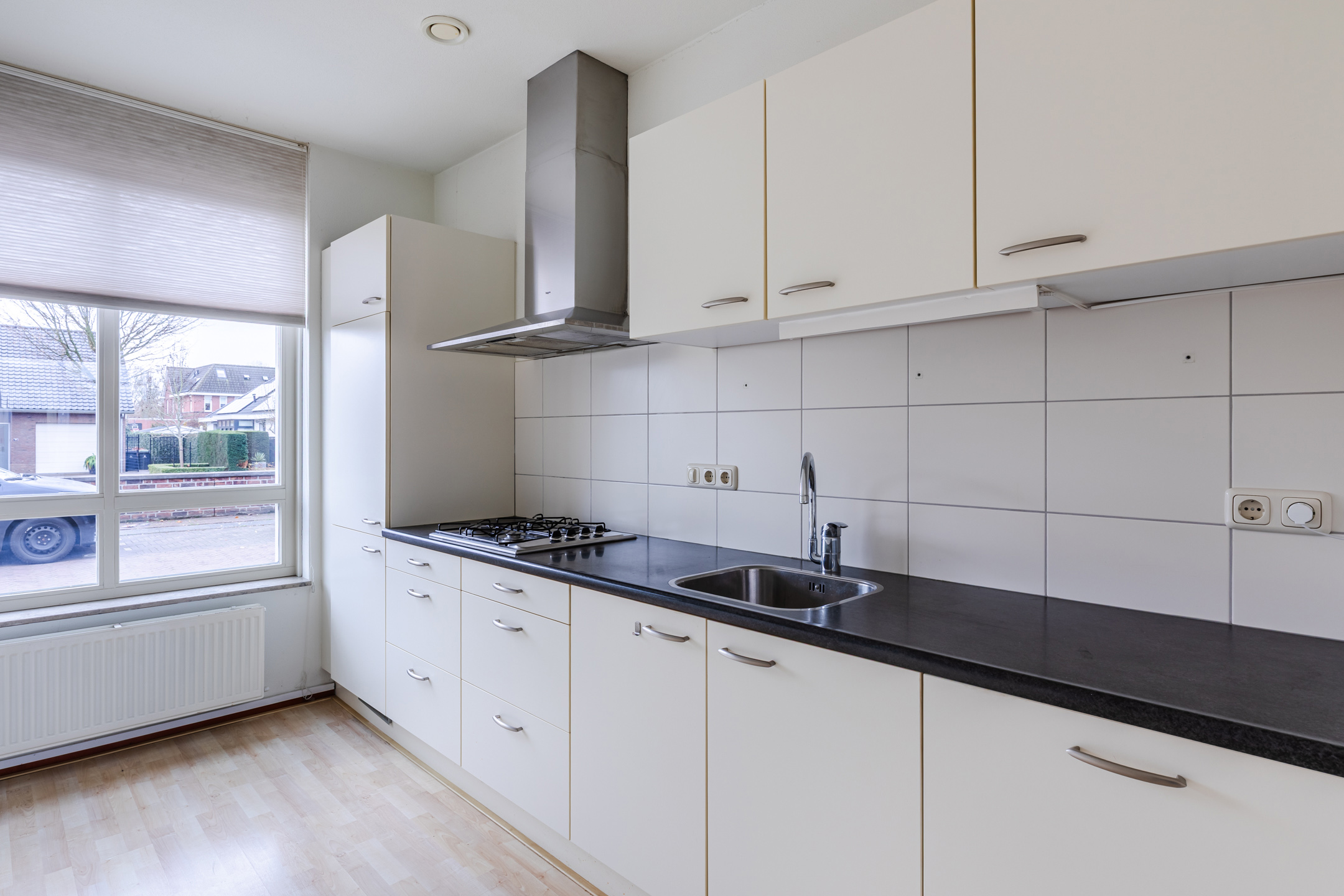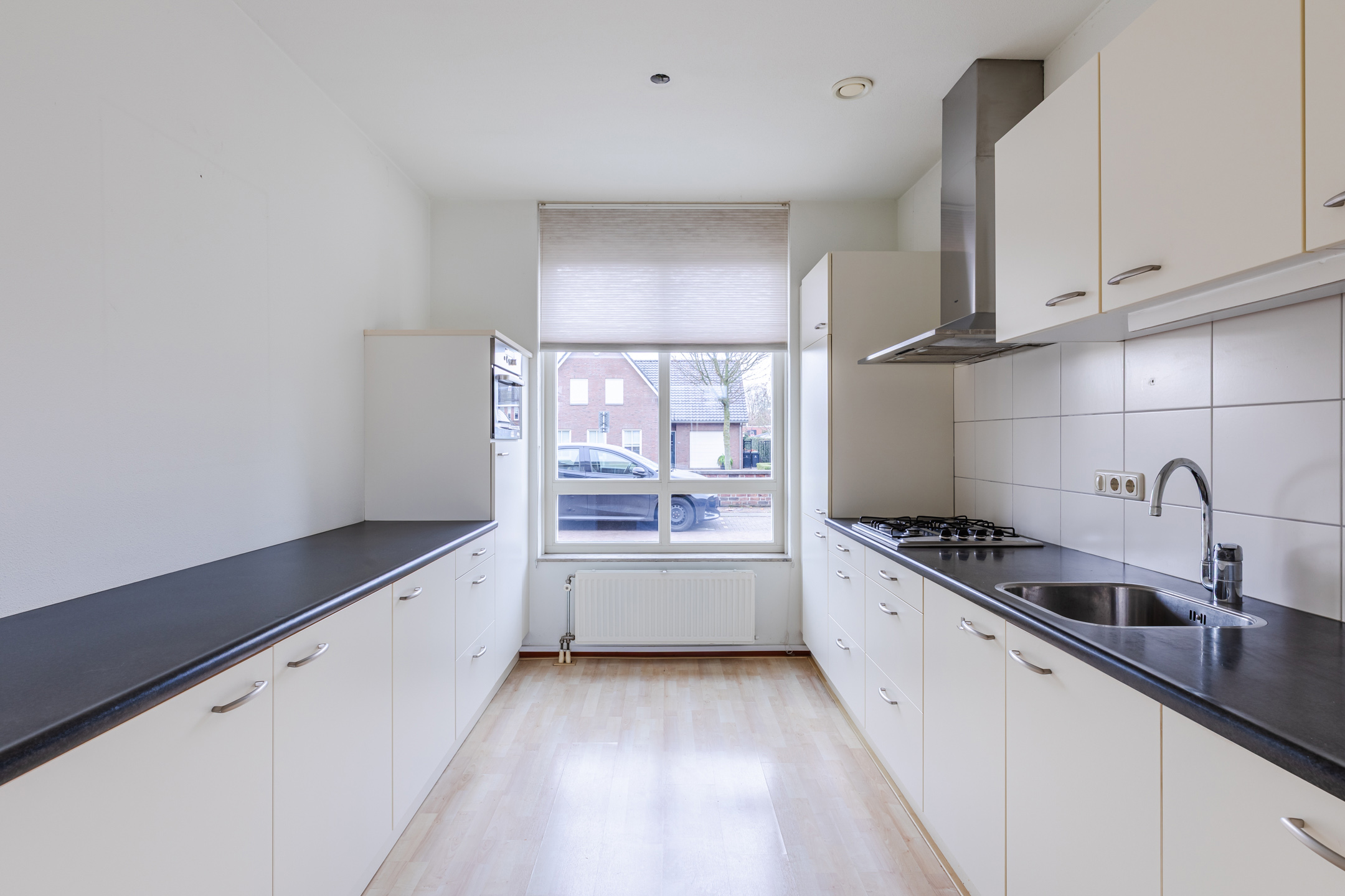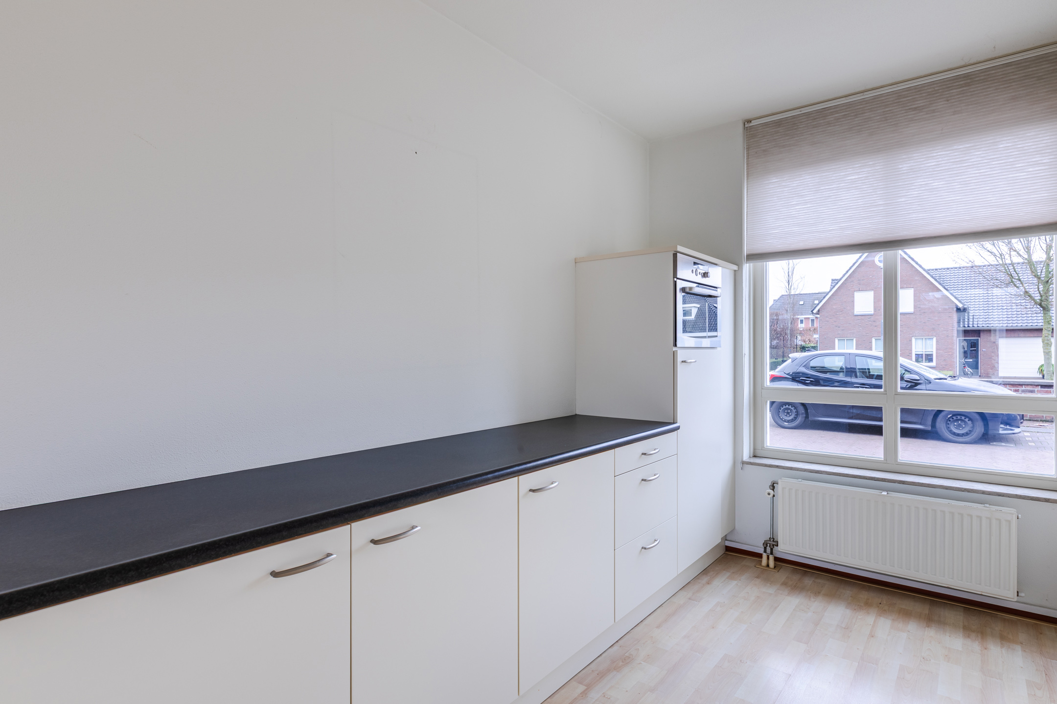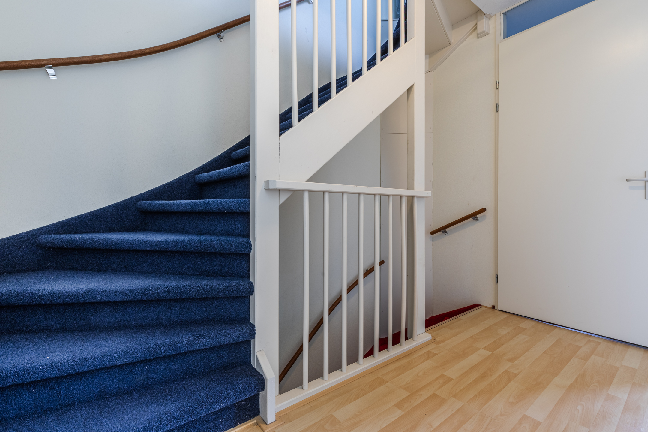 De hal is voorzien van de meterkast, trapopgang en de toiletruimte. De woonkamer is gelegen aan de achterzijde, heeft een handige bergkast en is licht met veel tuincontact. Aan de voorzijde van het huis is de keuken gelegen. Deze is voorzien van een witte keukeninstallatie, deze is inclusief de navolgende inbouwapparatuur: gaskookplaat, afzuigkap, koelkast, vrieskast, combioven en vaatwasser. De woonkamer en keuken is 9.30 x 5.40/2.70 en hebben een totale oppervlakte van ca. 39 m².