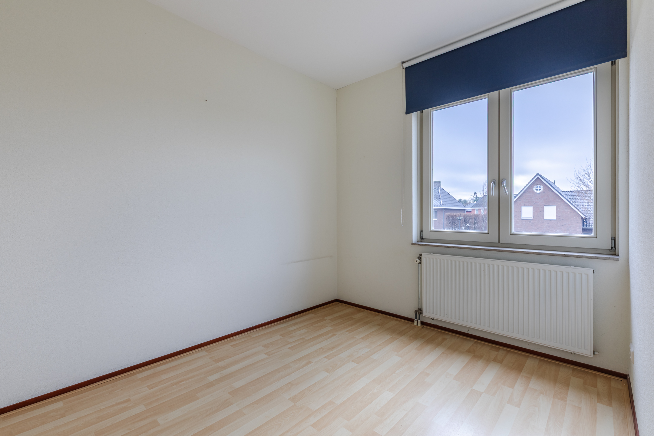 Overloop die toegang biedt tot drie slaapkamers en de badkamer. De grootste slaapkamer 4.76 x 3.13 (15 m²) is gelegen aan de achterzijde. De andere twee slaapkamers 3.51 x 2.50 en 2.83 x 2.33 (ca. 9 m² en 6 m²) zijn gelegen aan de voorzijde. De badkamer is geheel betegeld (ca. 6 m²) voorzien van een douchecabine, wastafel en tweede toilet.