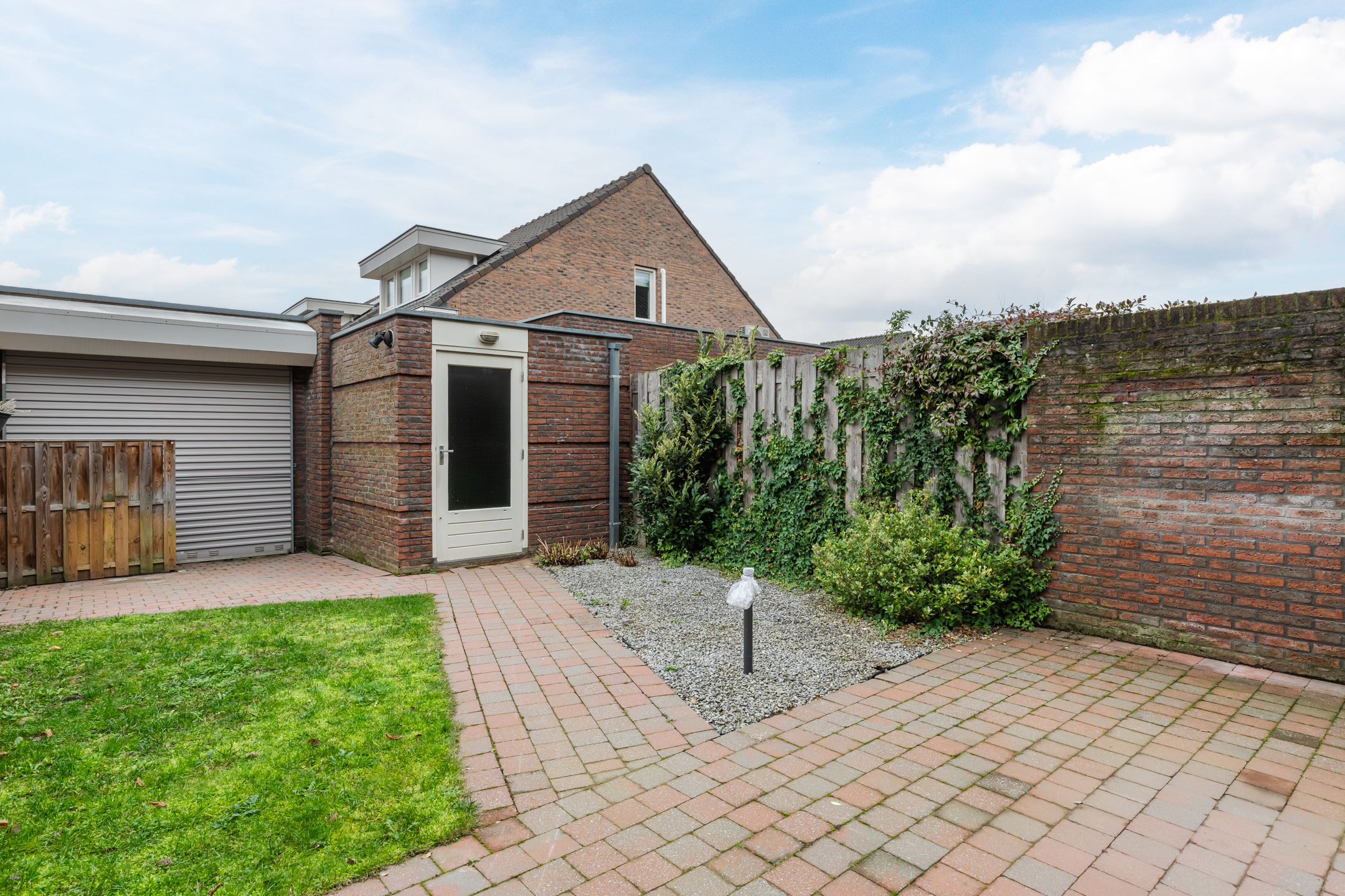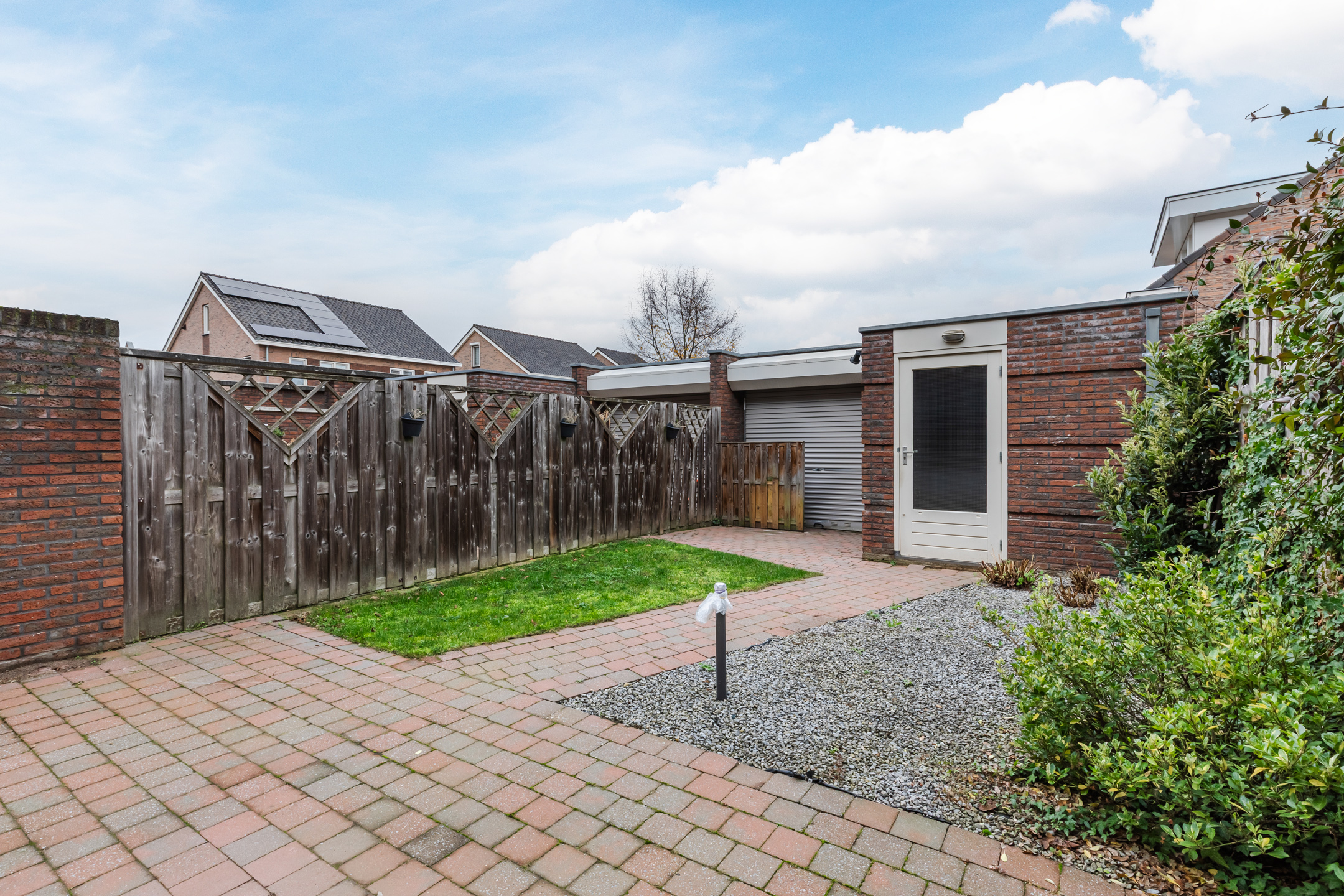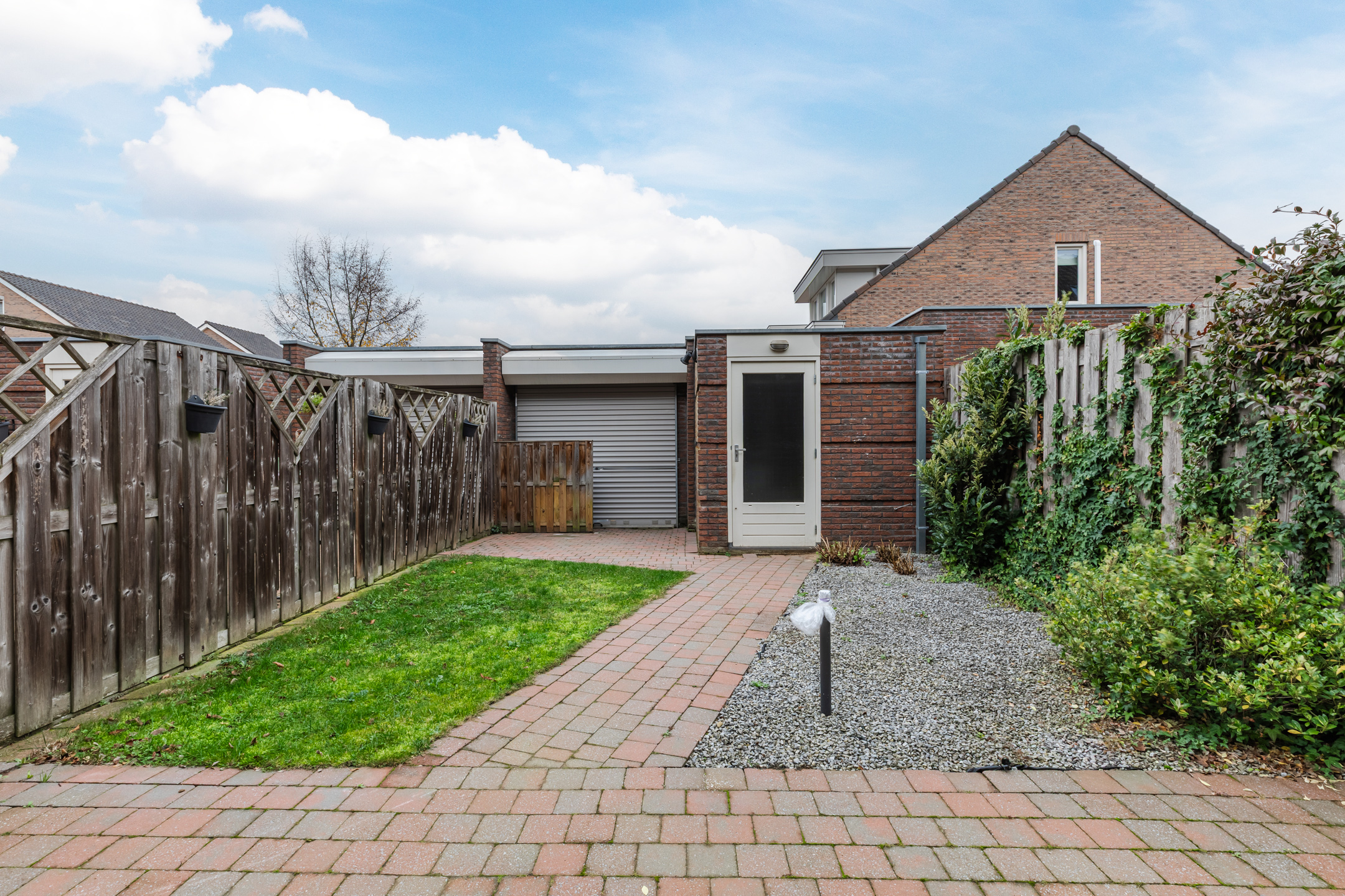 De achtertuin is geheel omsloten, noordelijk georiënteerd en voorzien van een terras en een aparte stenen tuinberging (ca. 7 m²). De tuin is achterom bereikbaar door middel van een rolpoort.