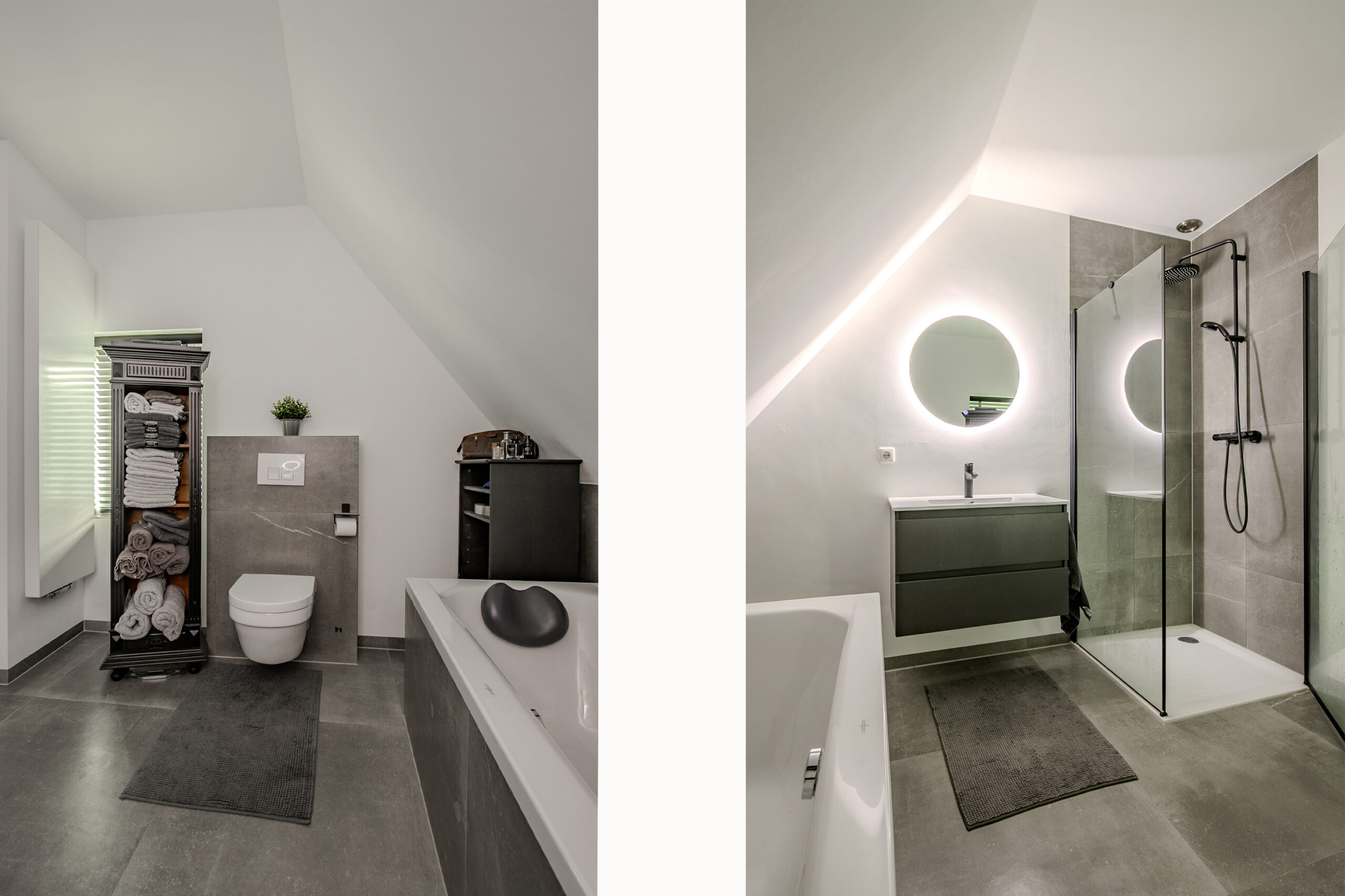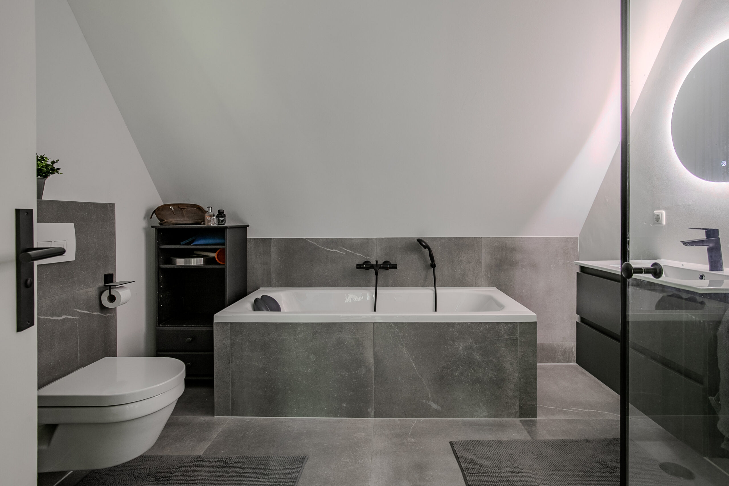 - Badkamervoorzieningen Ligbad, toilet, wastafelmeubel, inloopdouche