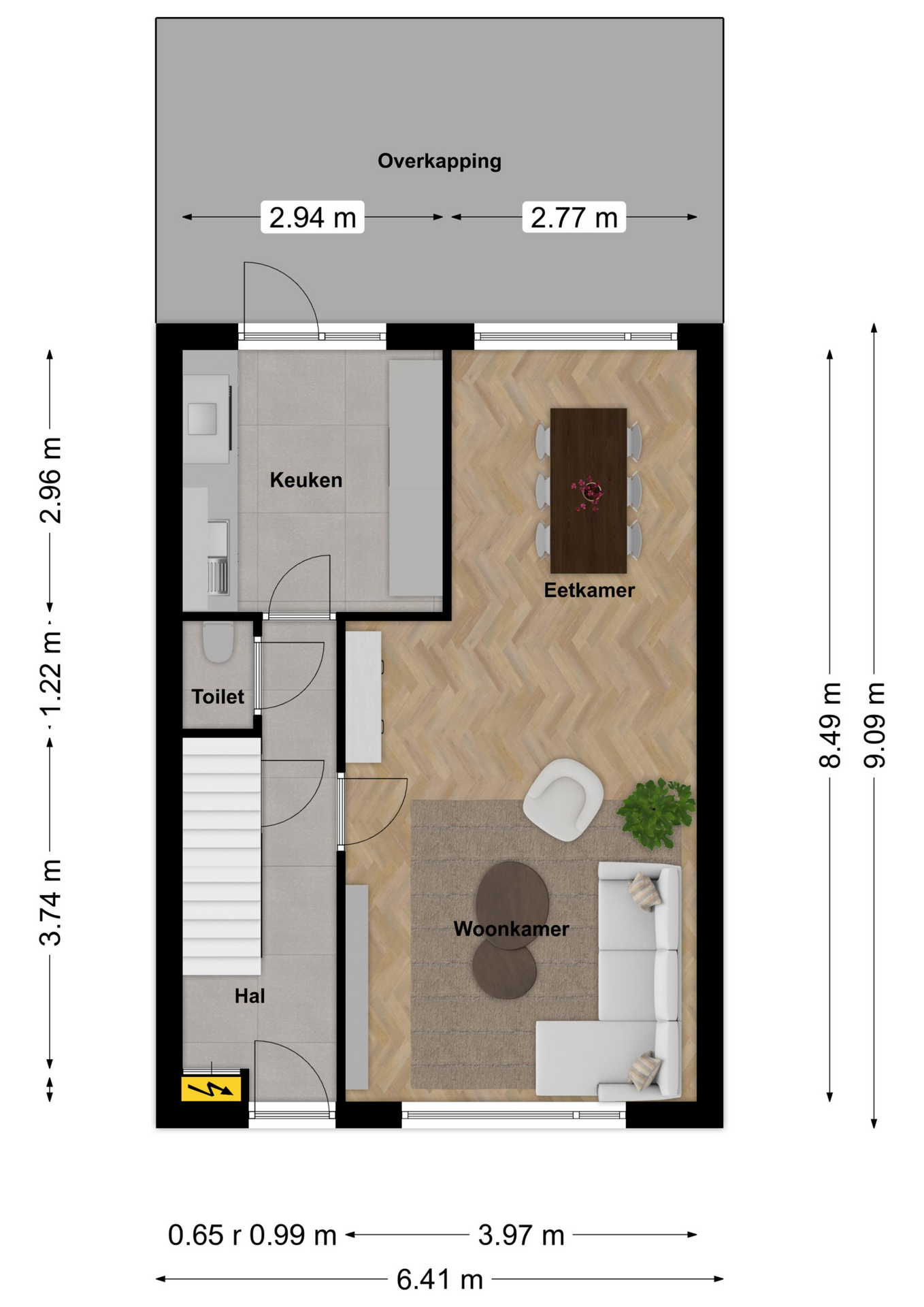 Begane grond: voortuin, entree en de hal verschaft toegang tot de separate toilet en toegangsdeur naar de provisiekelder. Tevens voorzien van moderne meterkast. De ruime, doorzon-woonkamer is voorzien van grote raampartijen, elektrische sfeerhaard en hoogwaardige pvc vloerafwerking. De stijlvolle keuken is uitgerust met moderne inbouwapparatuur, waaronder een inductiekookplaat, afzuigkap, combi-oven, vaatwasser en koelkast. Verder is de riante tuin voorzien van een overkapping en gesitueerd op het Zuid-Westen. De tuin is bereikbaar via de keuken, het zijpad naast de woning én achterom via de bijbehorende garage. De tuin is geheel beklinkerd en onderhoudsvriendelijk in gebruik.