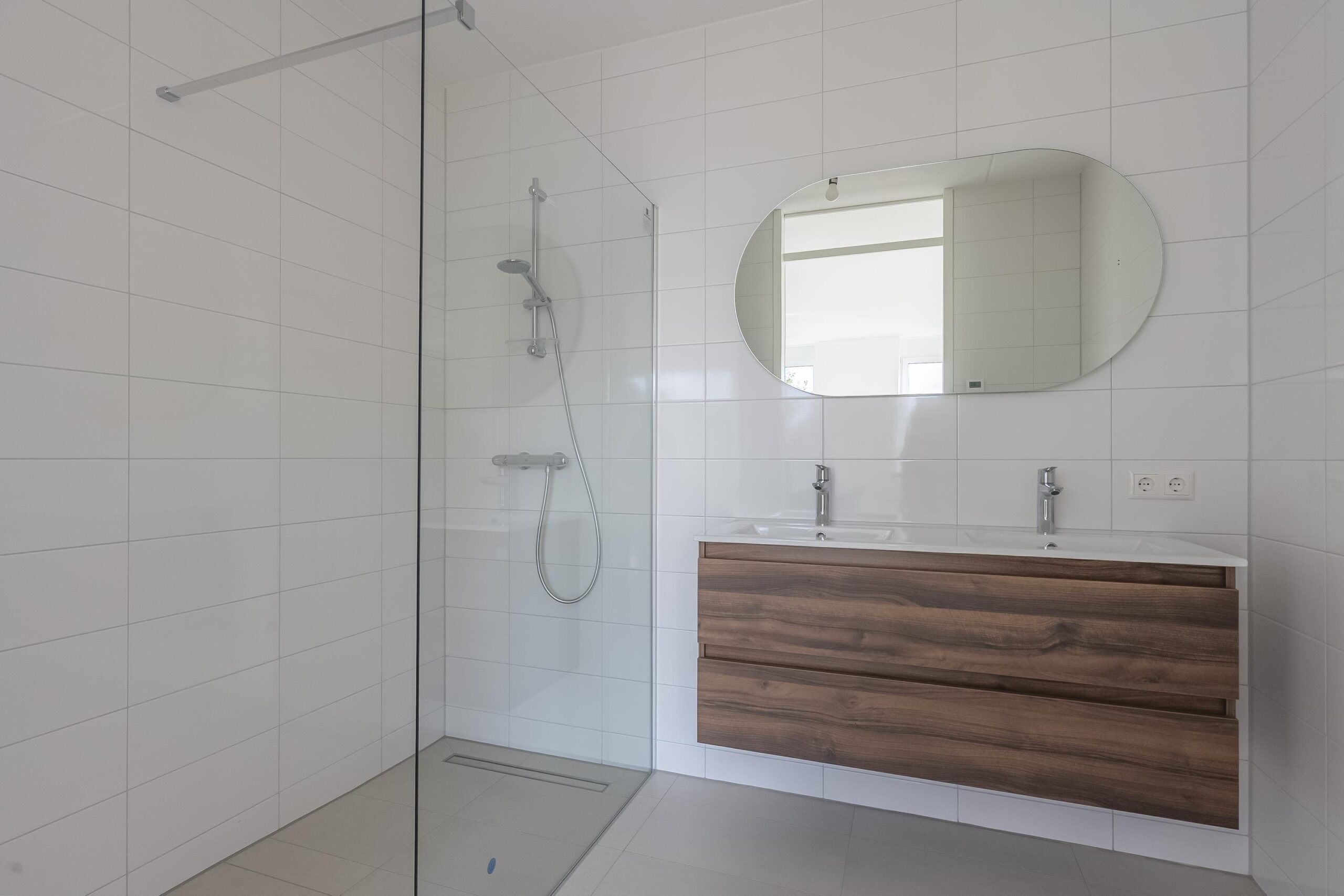 - Badkamervoorzieningen Dubbele wastafel, wastafelmeubel, inloopdouche, vloerverwarming