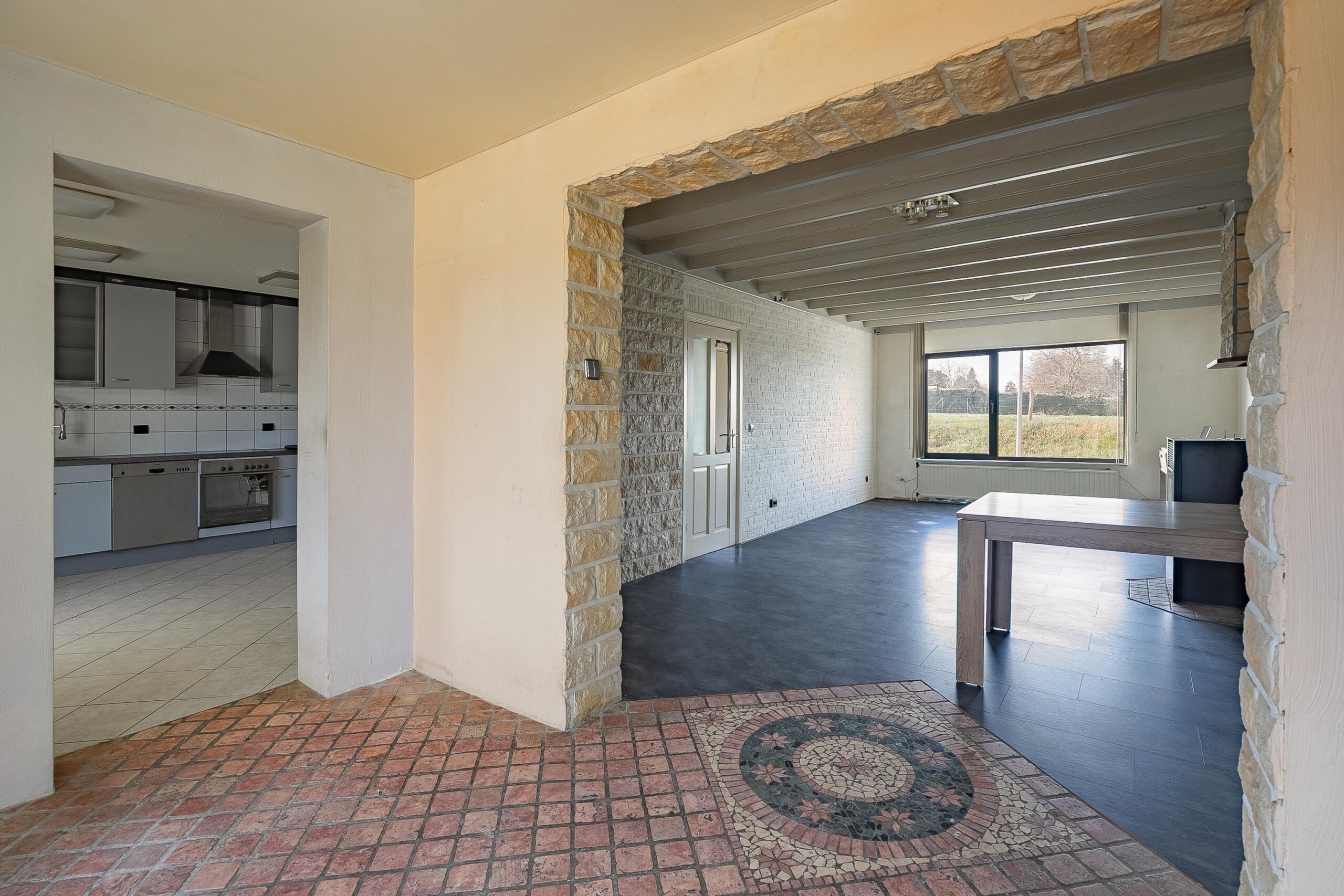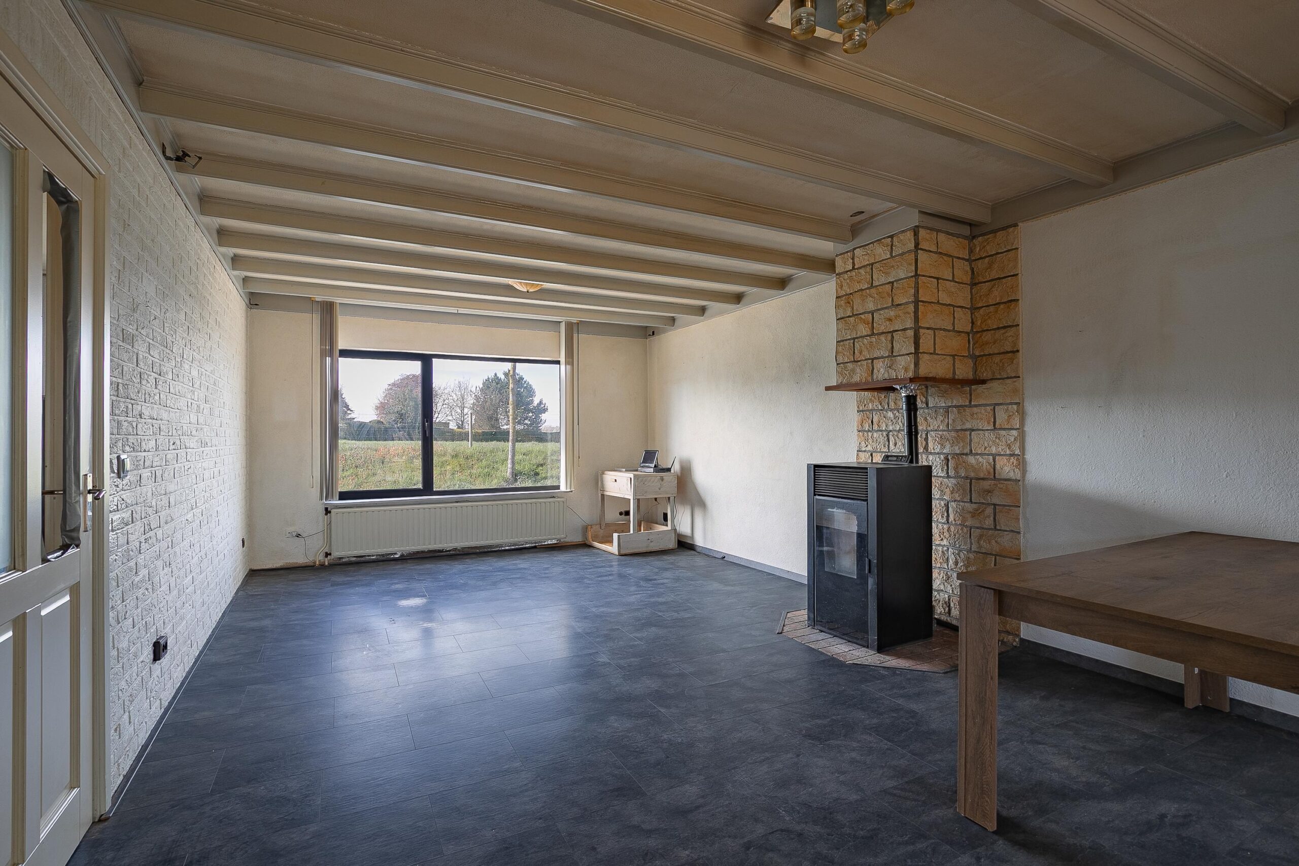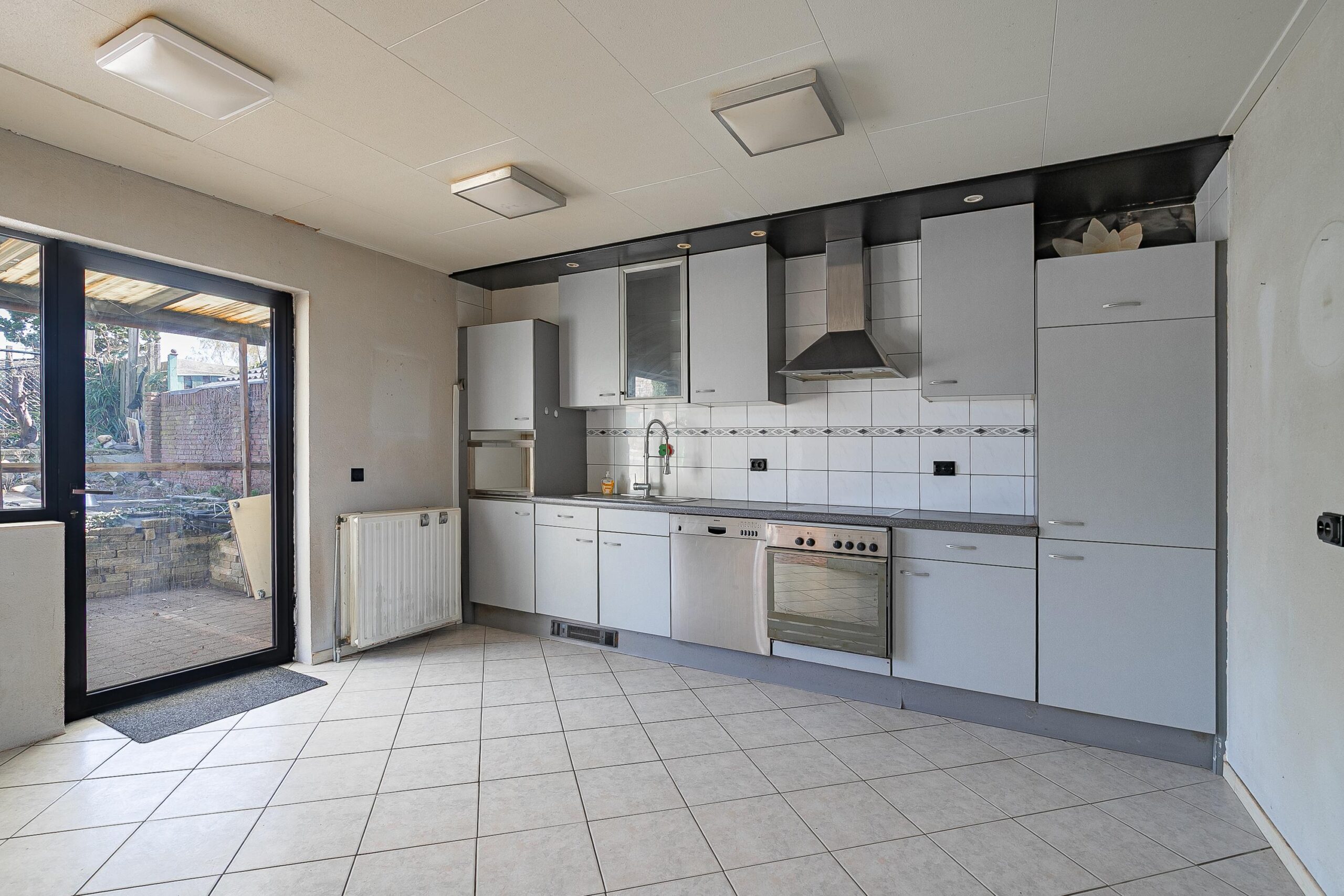 Entree. Hal met toegang tot garage met kantelpoort en oprit. Meterkast met dag- en nachtstroom en geheel betegelde toiletruimte met zwevend toilet en fontein. Sfeervolle zeer ruime woonkamer met plavuizenvloer, pellet kachel, veel lichtinval en schuifpui naar de tuin. De leefkeuken met tegelvloer is voorzien van een kunststof keukeninstallatie met navolgende apparatuur: elektrisch kookplaat, oven en afzuigkap.