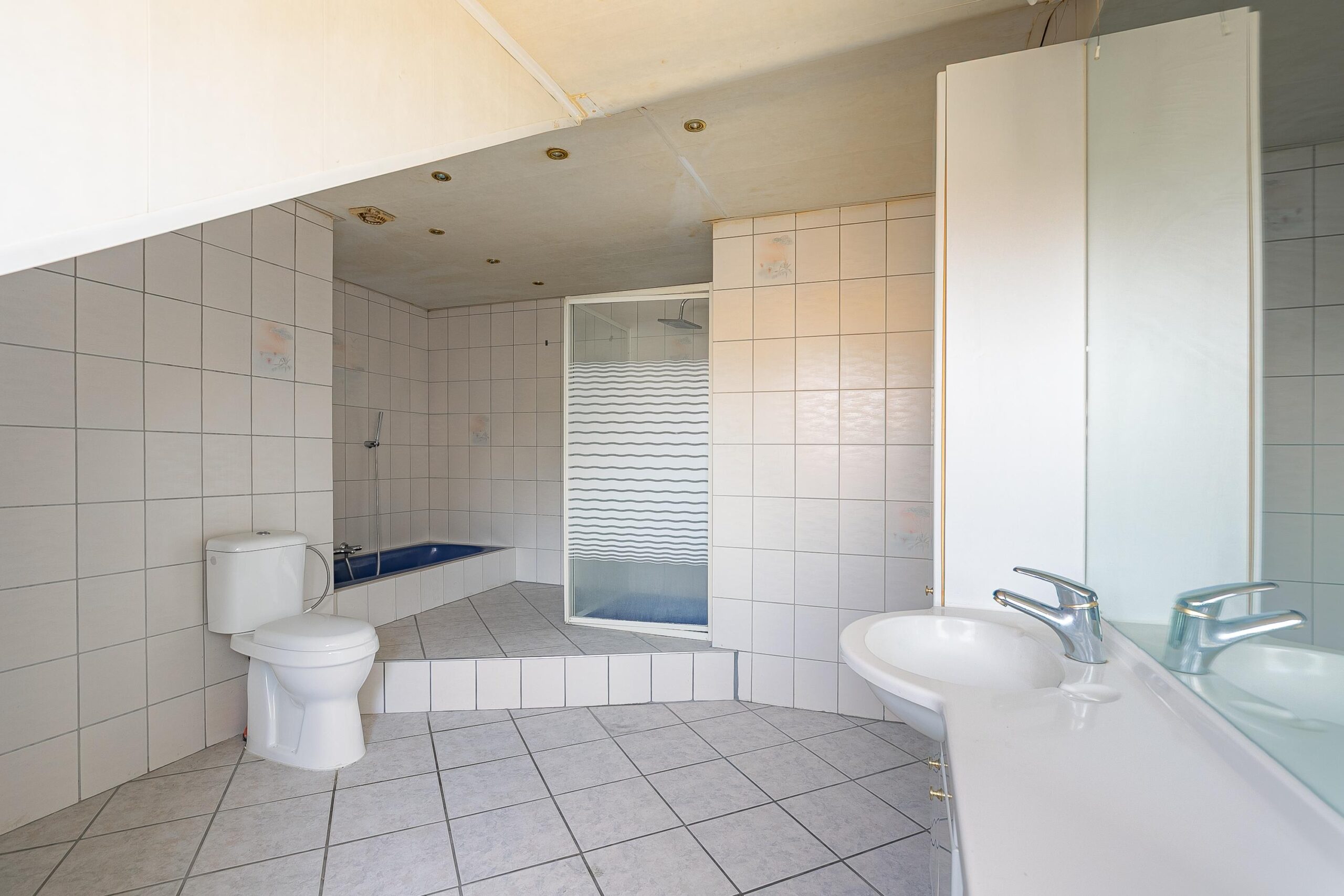 Zeer ruime badkamer met tweede toilet, douchecabine, ligbad en badmeubel met vaste wastafel.
