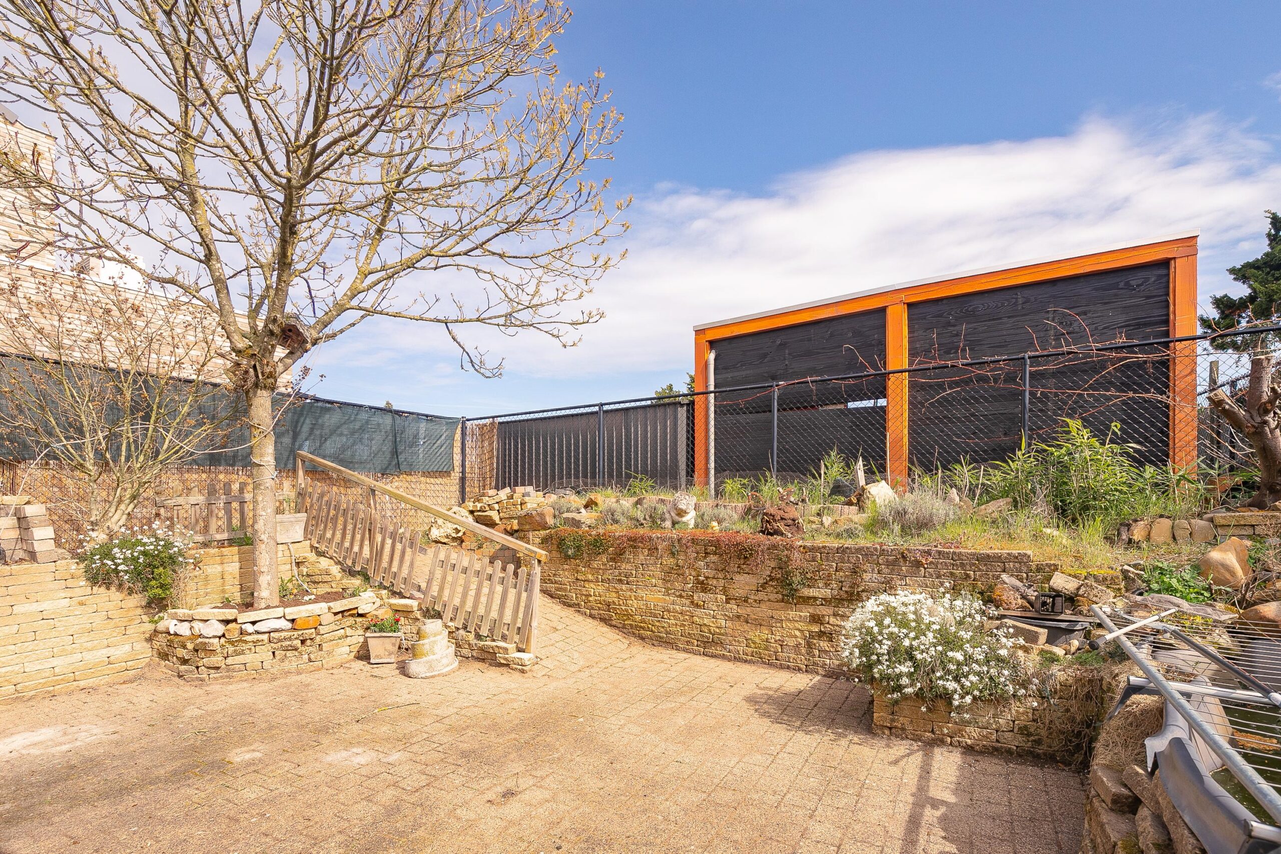 Bereikbaar via de woonkamer en keuken. Overdekt terras, vijverpartij, onderhoudsvrije tuin en zijingang met afsluitbare poort.