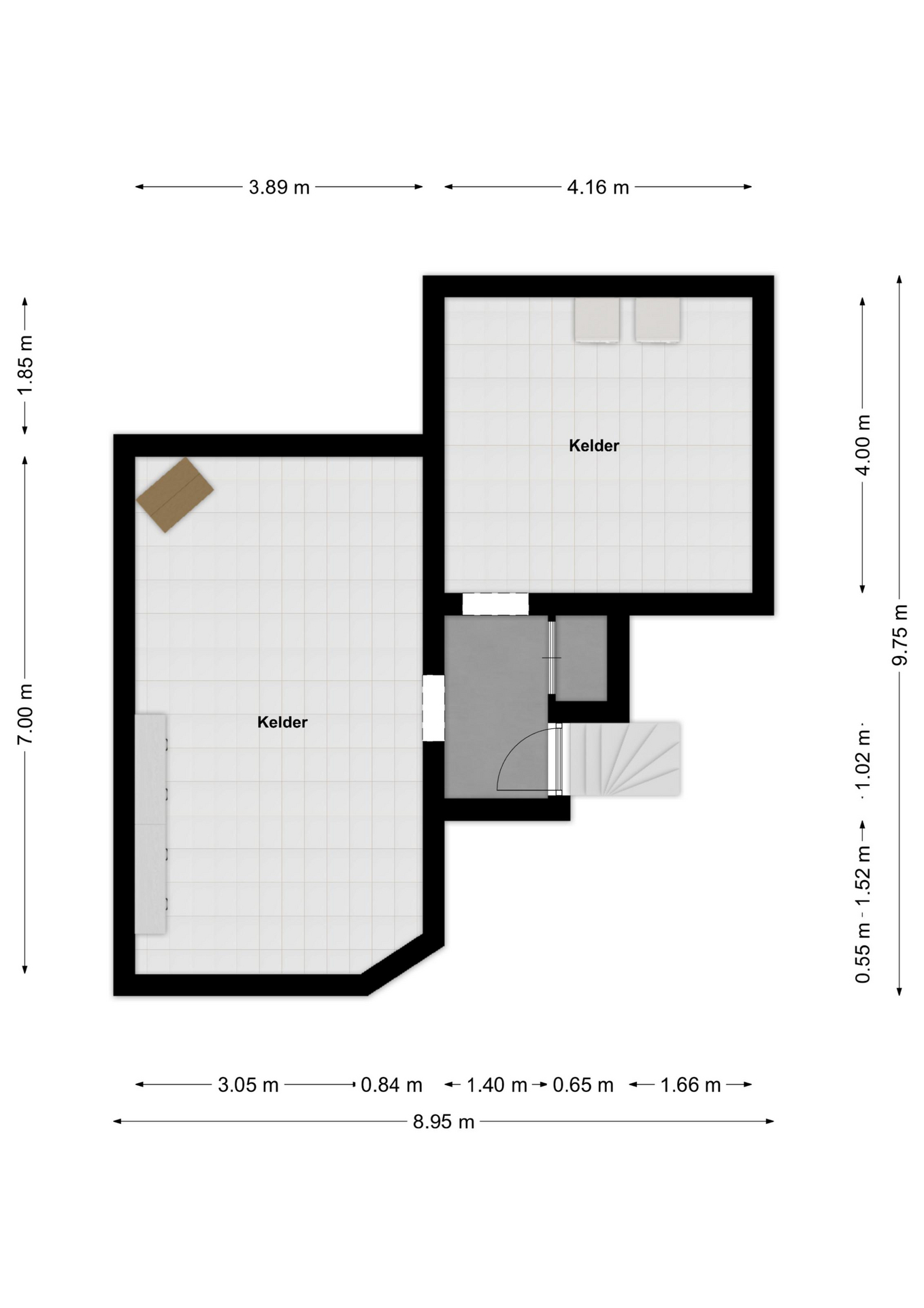 De woning is geheel onderkelderd. Twee grote hobbyruimtes voorzien van een plavuizenvloer, muurkast en verhoogde opstelplaats voor wasmachine en droger.