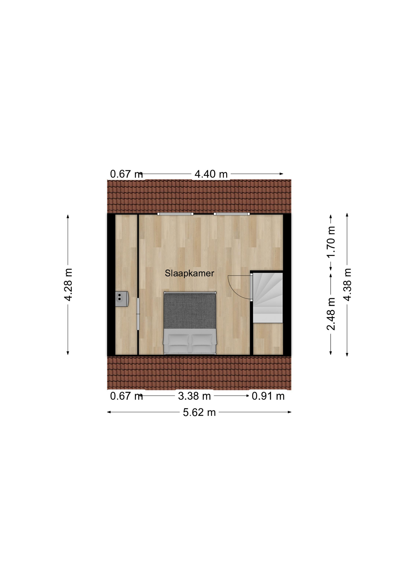 Middels vaste trap heeft u toegang tot de tweede verdieping waar de derde slaapkamer met dakkapel gerealiseerd is. In een separate bergruimte bevindt zich de cv-installatie (ATAG, 2024, eigendom).