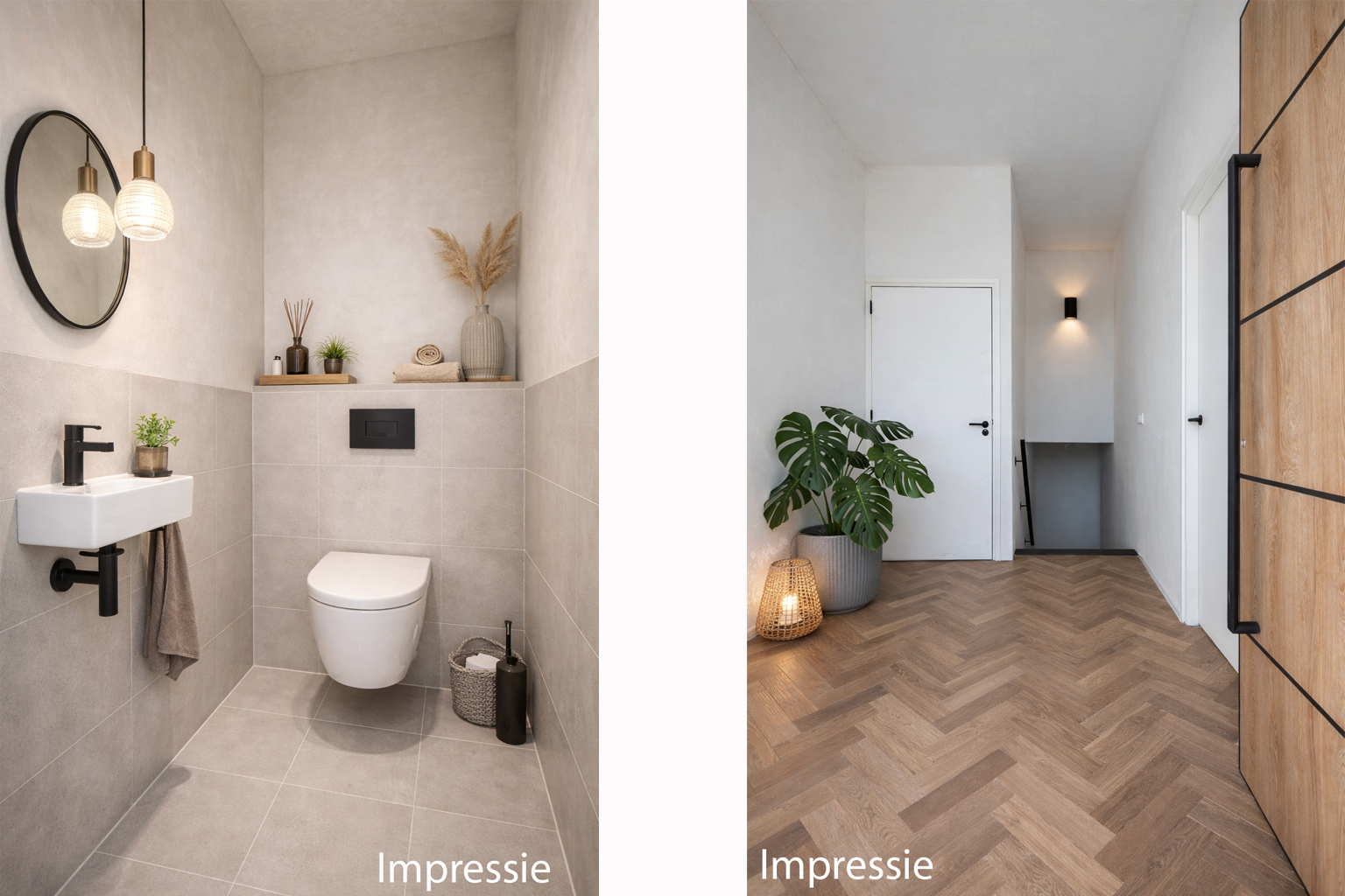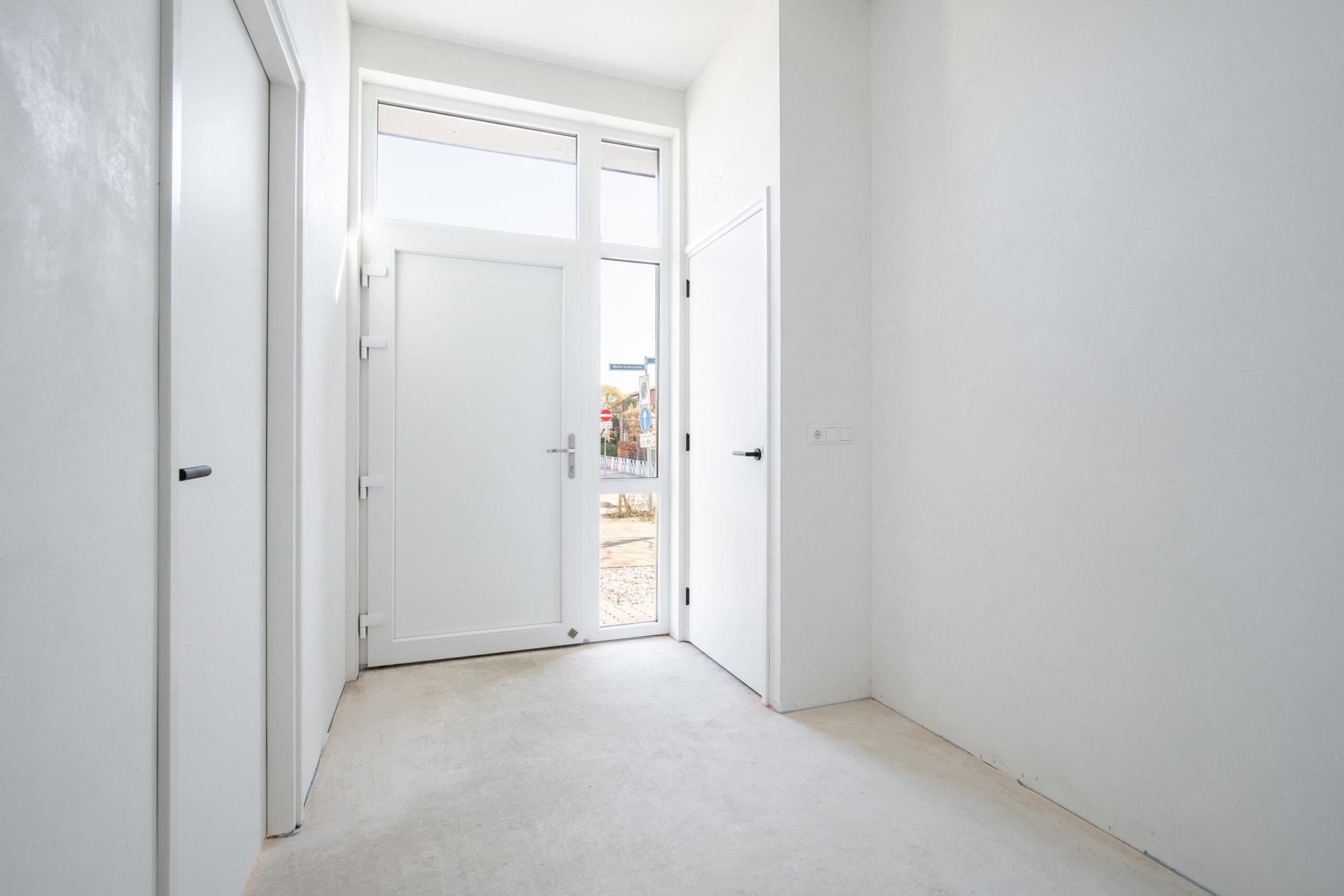 Eigen ingang vanaf het voorterrein, hal met toegang tot de woonkamer en via enkele treden het souterrain. In de hal bevindt zich het gastentoilet.