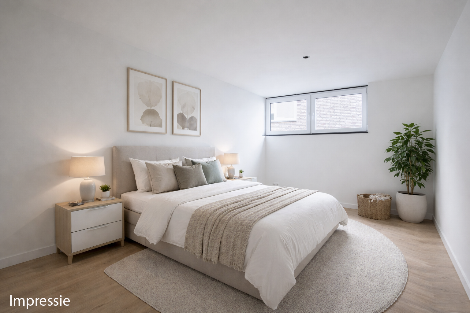 Vanuit de hal bereikt je met enkele trappen het souterrain waar aan de achterzijde de 2 slaapkamers (respectievelijk circa 17 m2 en 15 m2) gelegen zijn. Daarnaast is er op dit niveau de technische ruimte/berging met aansluitingen voor het witgoed en een praktische bergkast.