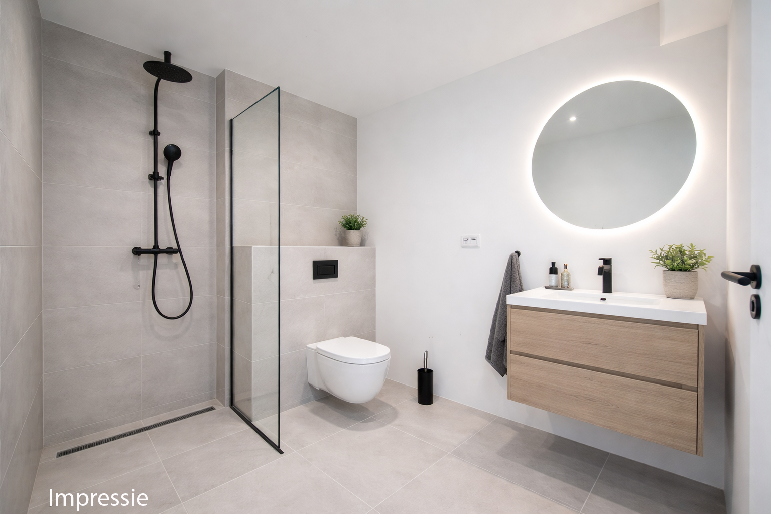 De badkamer is ruim van formaat, alle aansluitingen zijn al gerealiseerd, het sanitair en tegelwerk kan naar eigen wens worden gerealiseerd.