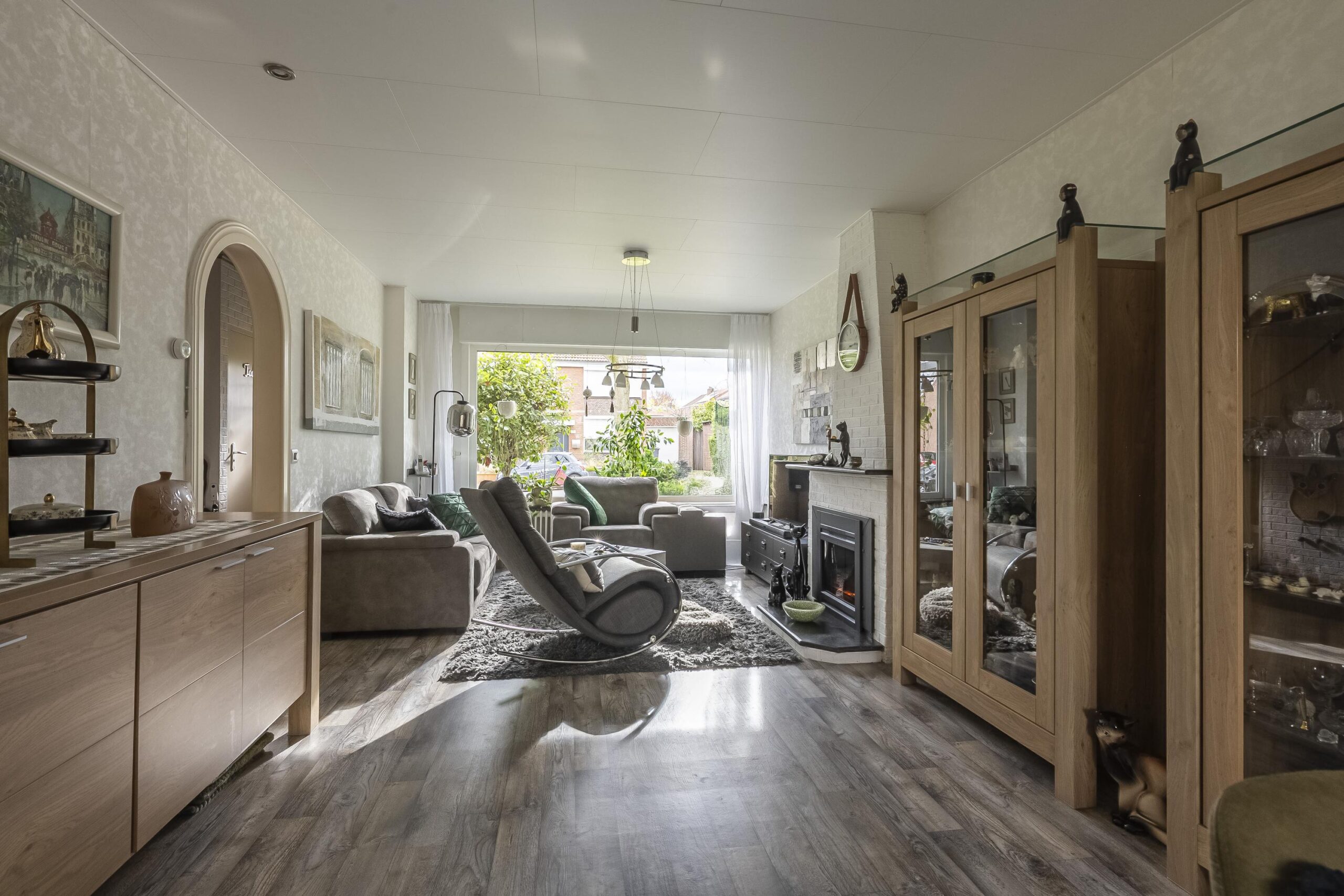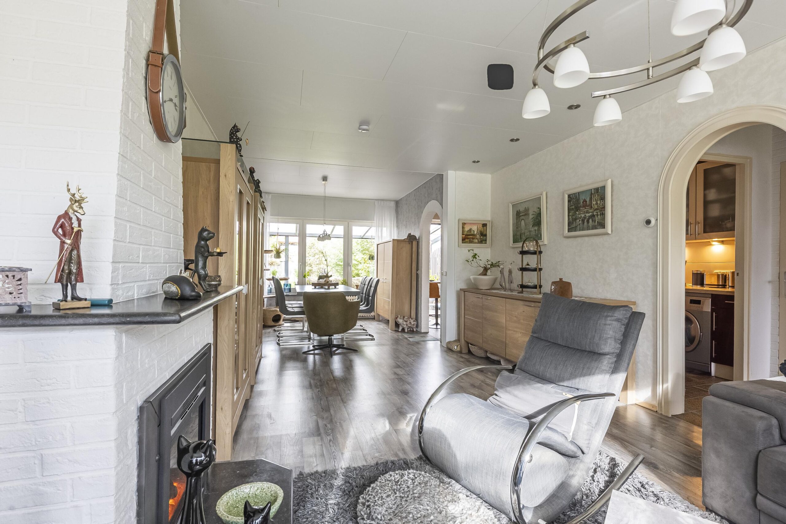 De doorzon woonkamer is groot ca. 32 m² en is voorzien van een vinylvloer en een elektrische inbouwhaard.