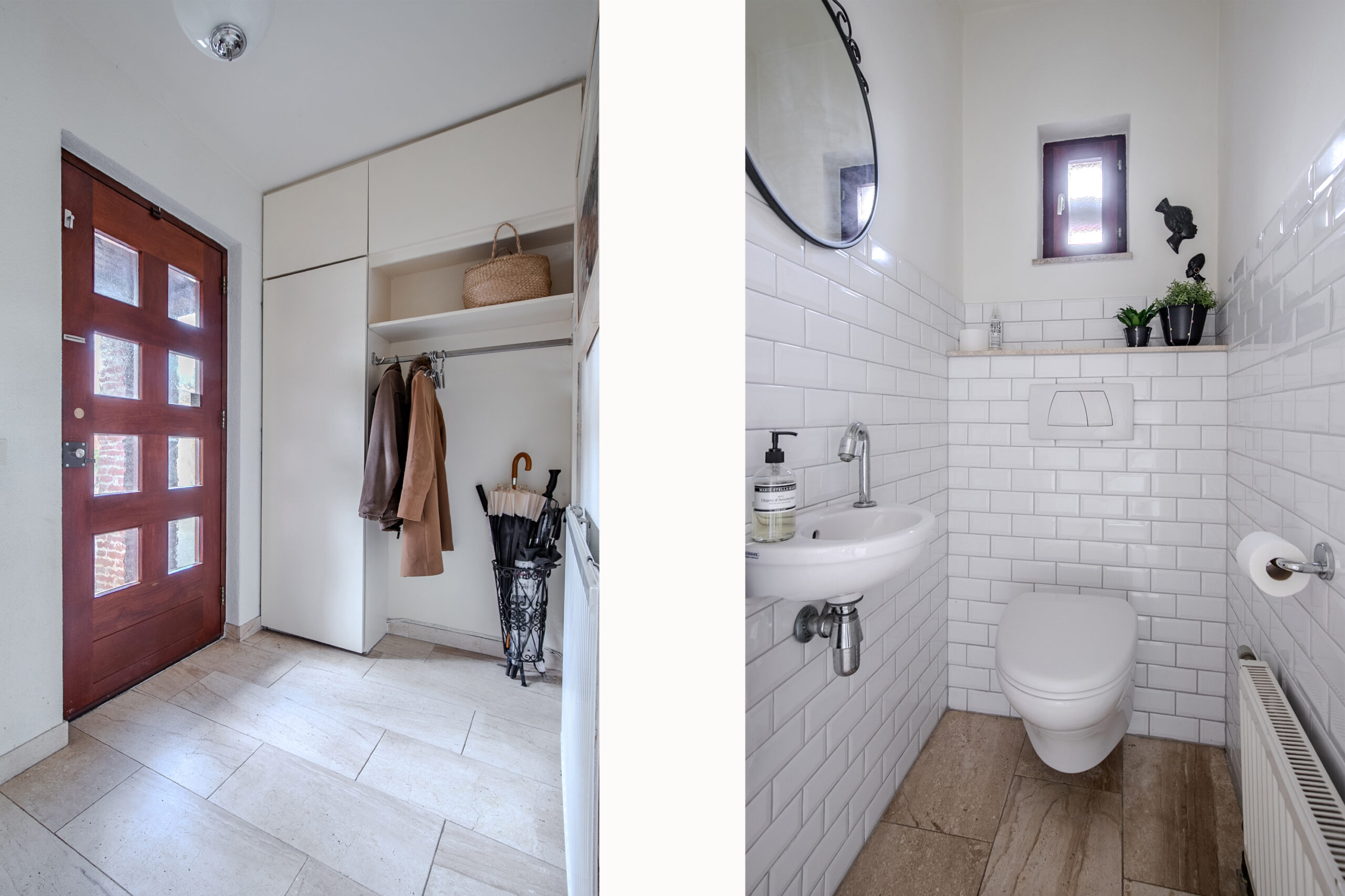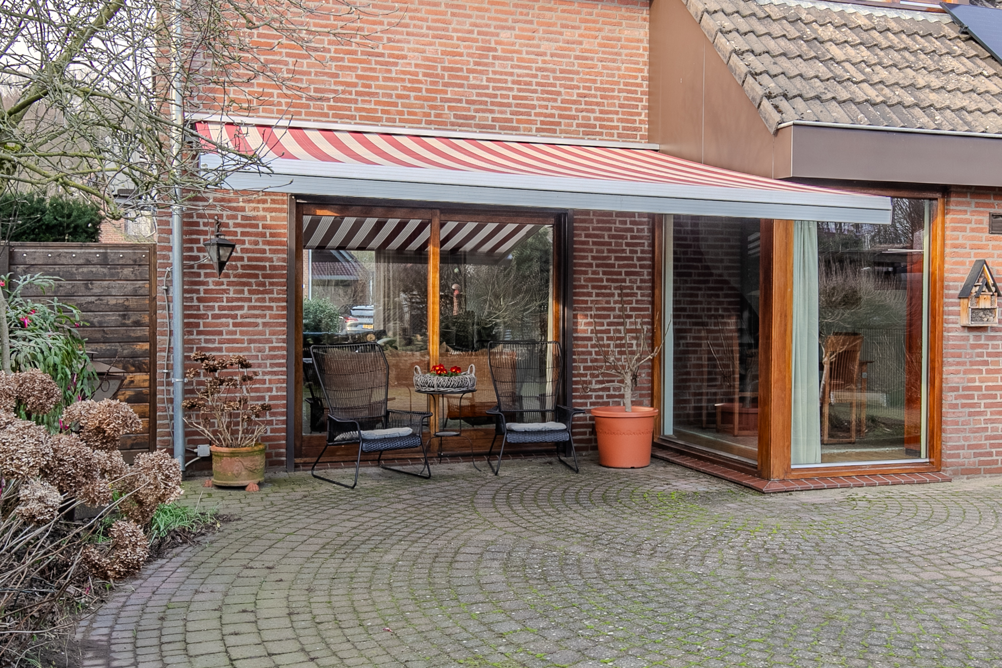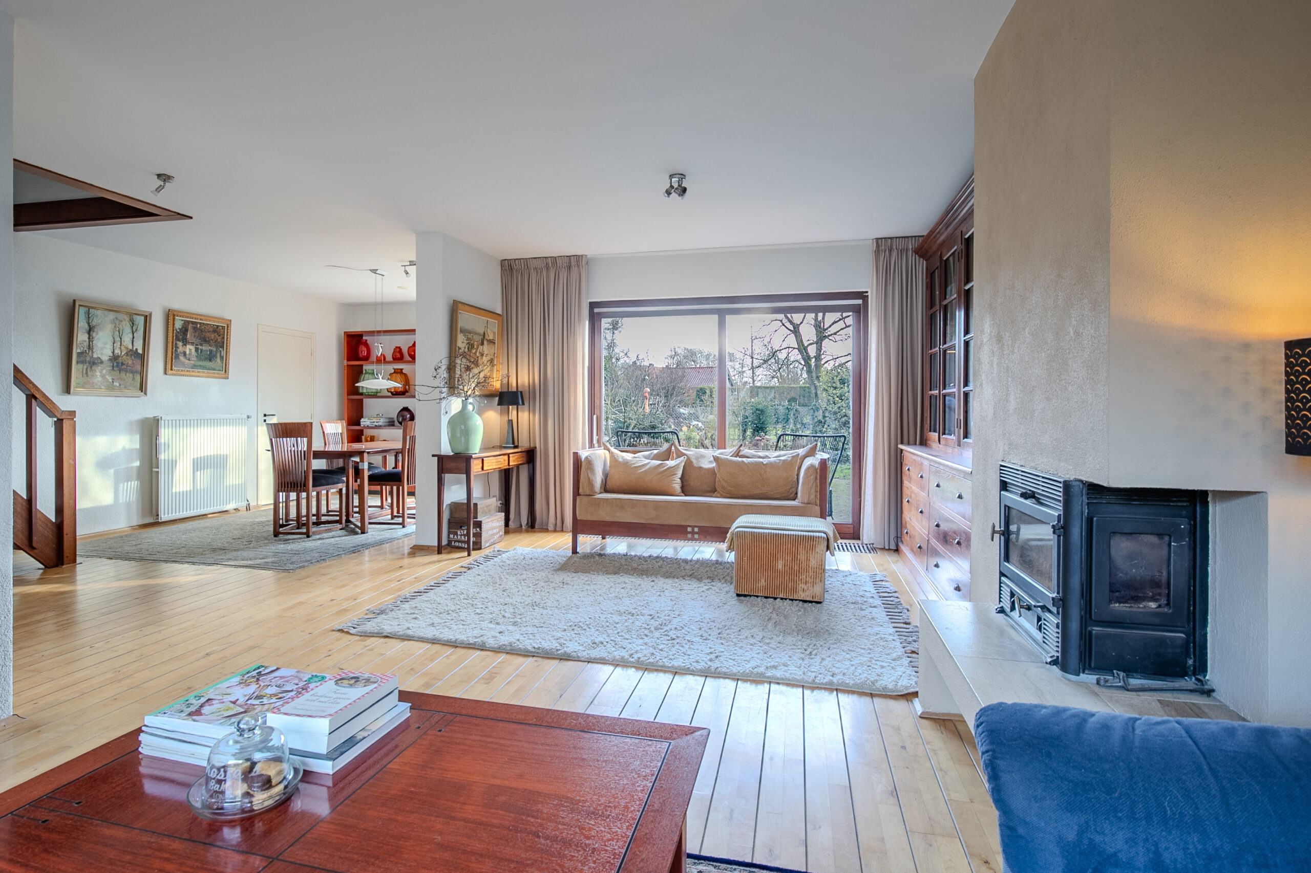 Via de entree komt u binnen in de hal met een nette tegelvloer, garderobe, meterkast en een toiletruimte met fontein. Vanuit de hal bereikt u de open en royale woonkamer met eetkamer. De woonkamer is bijzonder sfeervol dankzij de open haard en voelt extra ruim aan door de grote raampartijen die zorgen voor veel natuurlijk licht. Dankzij het uitschuifbare zonnescherm, zorg je ervoor dat de zon niet te fel naar binnen schijnt. Er is meer dan voldoende ruimte voor een grote zithoek, een royale eettafel en eventueel een extra zitje.