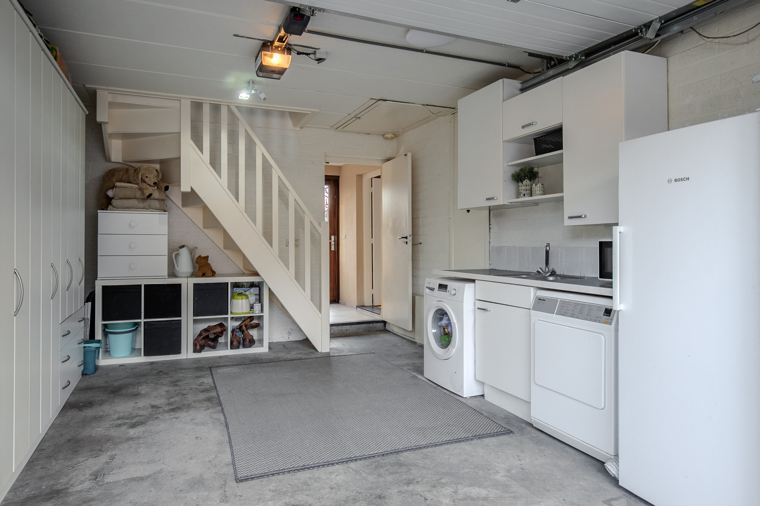 De garage is zeer ruim en beschikt over een extra verdieping, ideaal voor opslag of het creëren van bijvoorbeeld een thuiskantoor. Hier bevinden zich tevens de witgoedaansluitingen en de cv-ketel (eigendom, 2022).