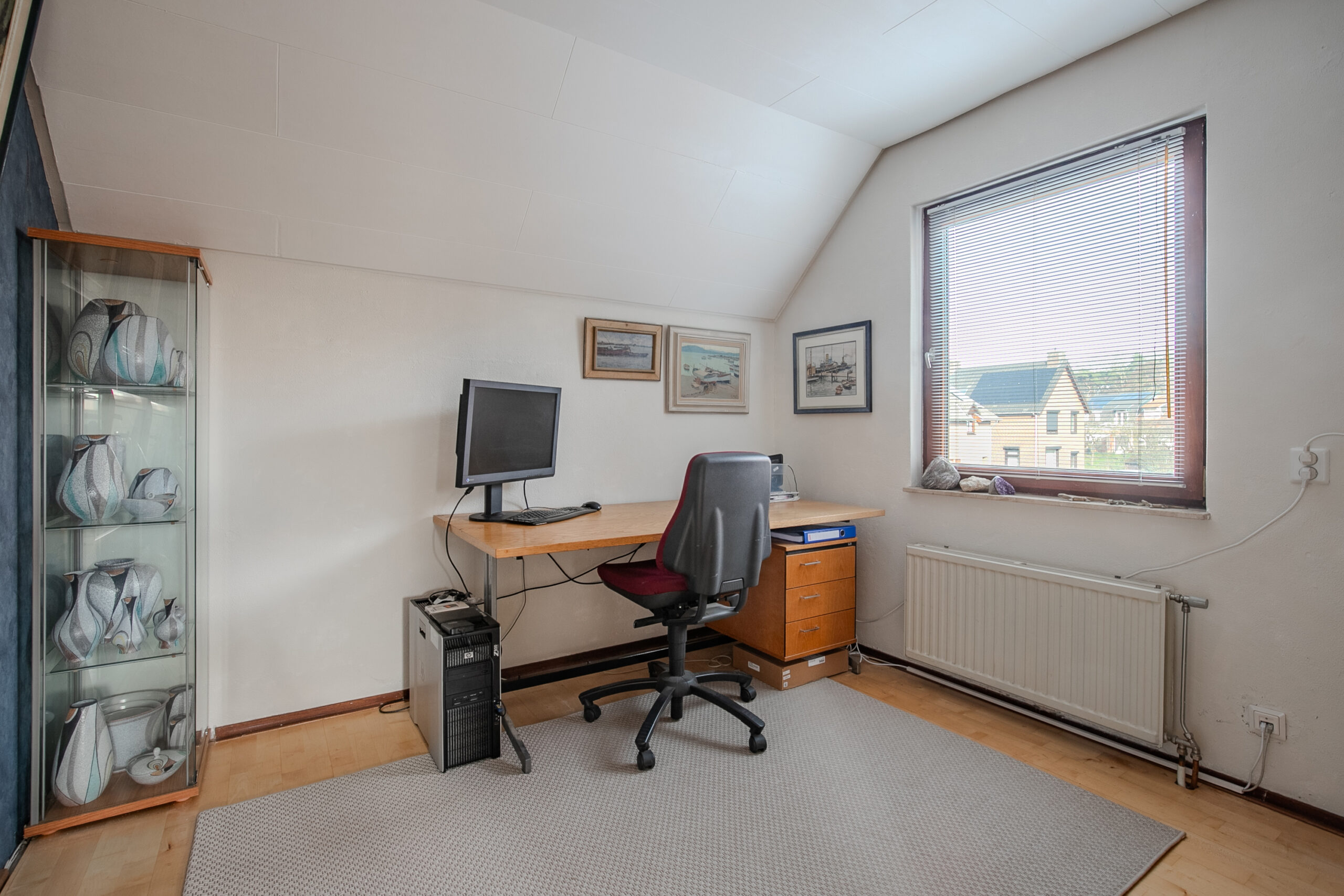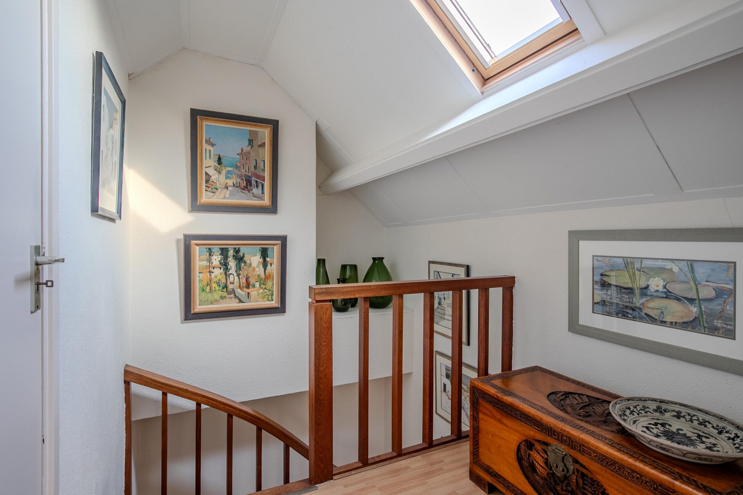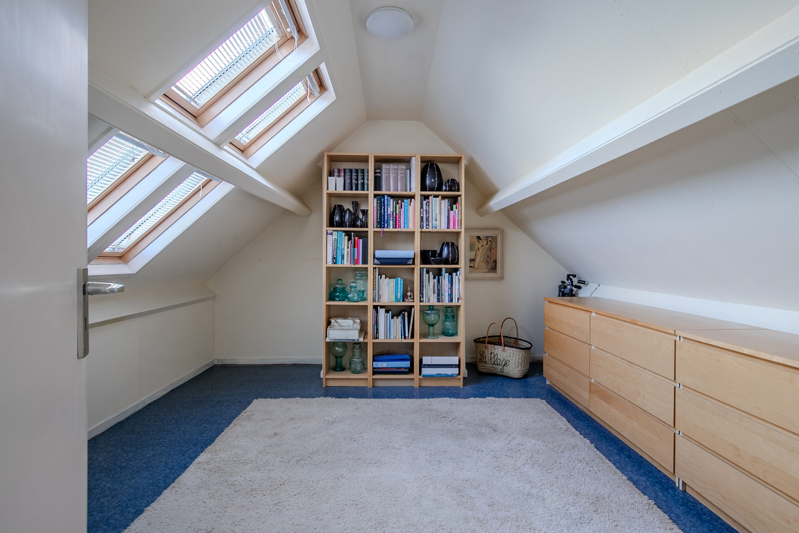 De tweede verdieping is bereikbaar via een hardhouten trap en biedt een extra slaapkamer of kantoorruimte. Dankzij vier Velux dakramen is deze ruimte heerlijk licht. Daarnaast is er een aparte berging aanwezig. Ideaal voor het opbergen van de koffers of kerstspullen.