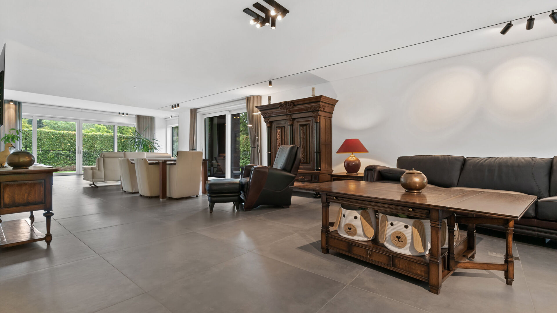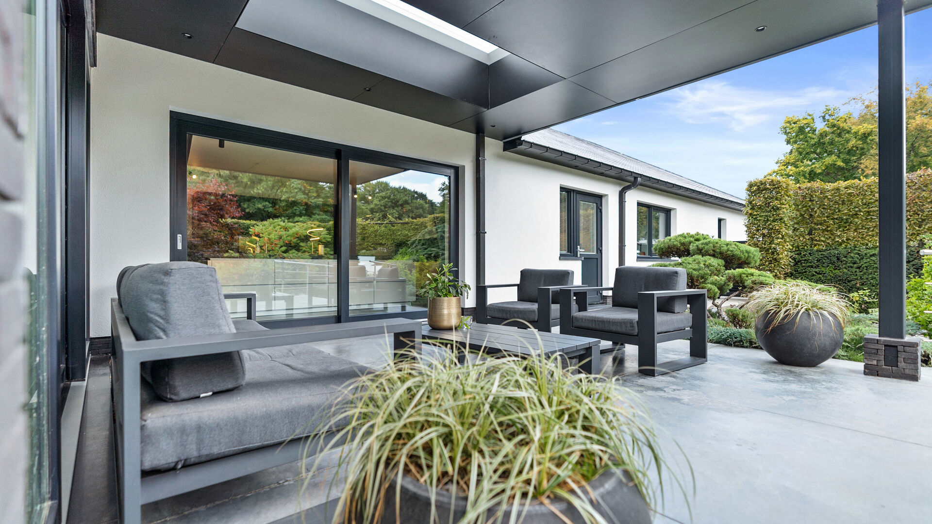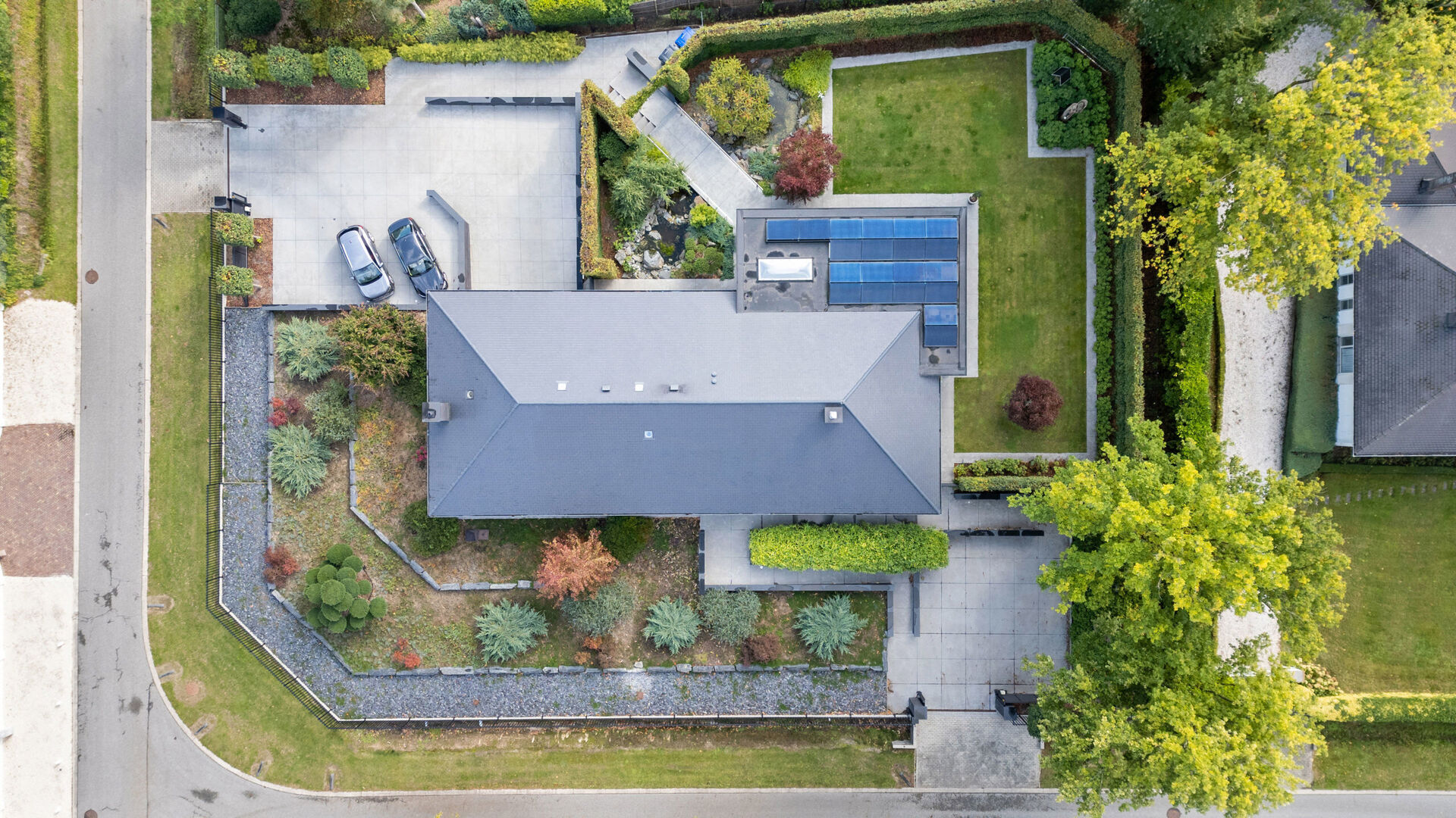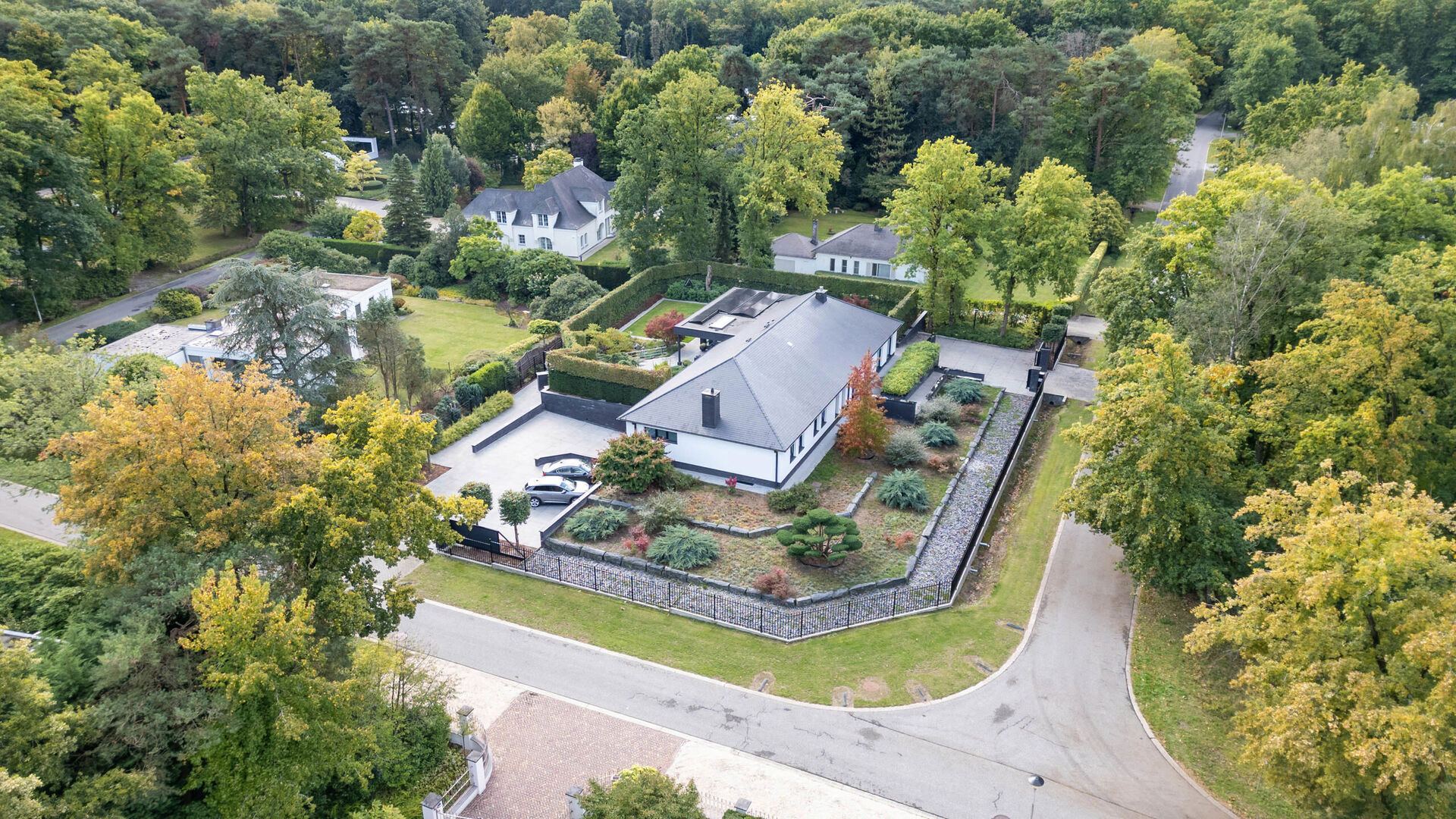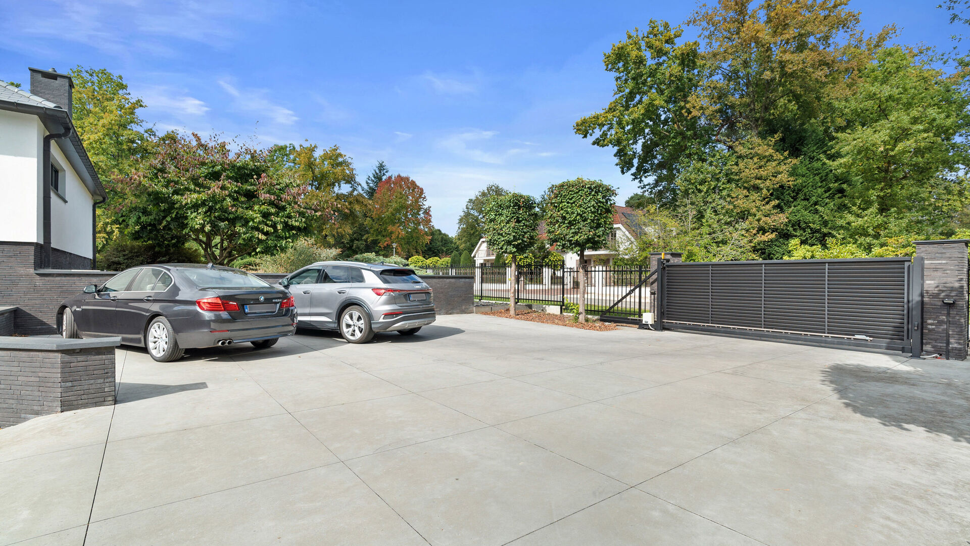 De villa is bovendien uitstekend uitgerust voor mobiliteit en gemak: een automatische sectionaalpoort geeft toegang tot twee parkeerplaatsen in de kelder, terwijl buiten nog plaats is voor vijf extra voertuigen. Voor wie elektrisch wil rijden is er een laadpaal, en beide automatische rolpoorten zijn uitgevoerd in duurzaam aluminium.