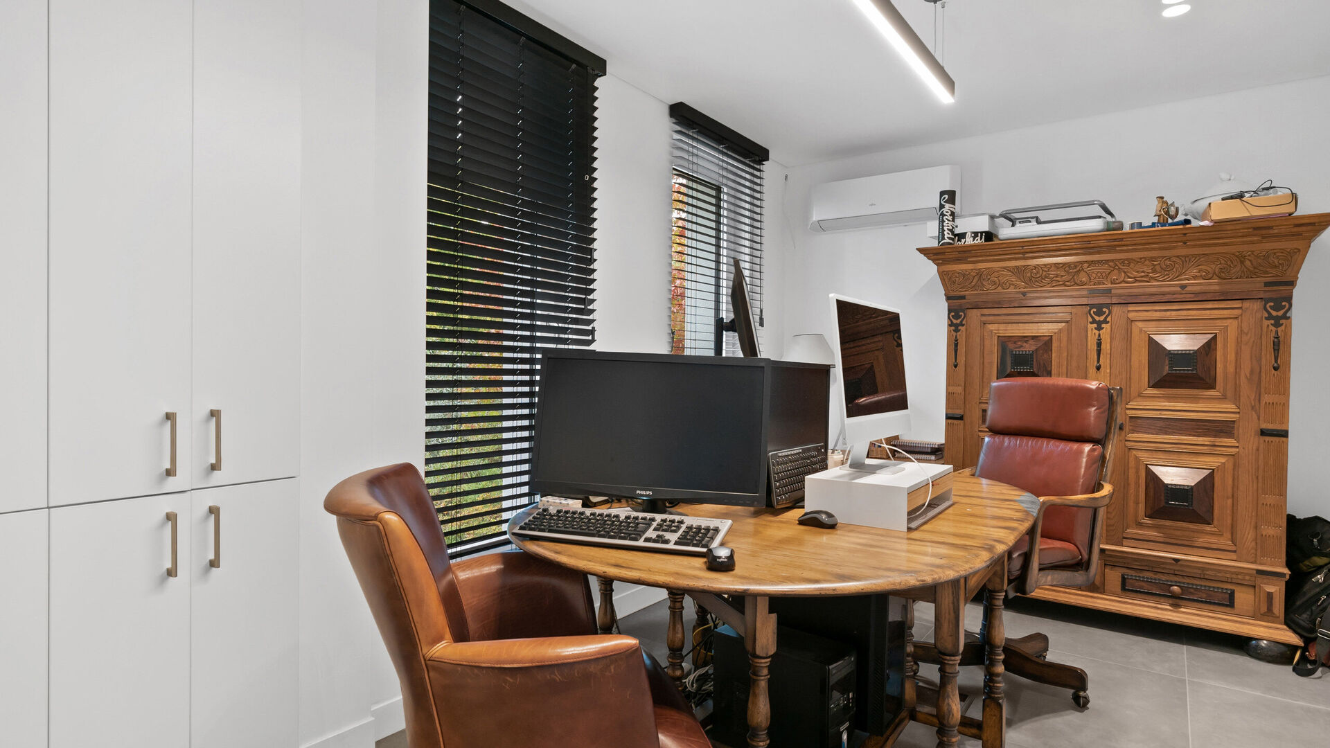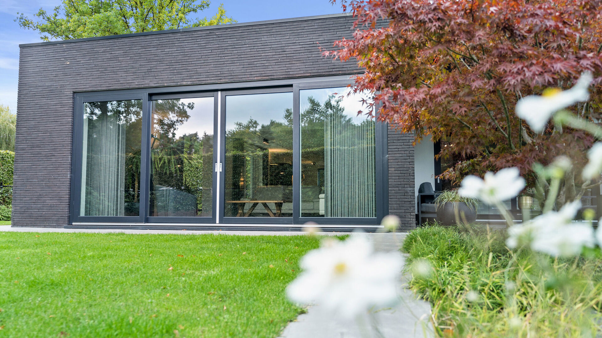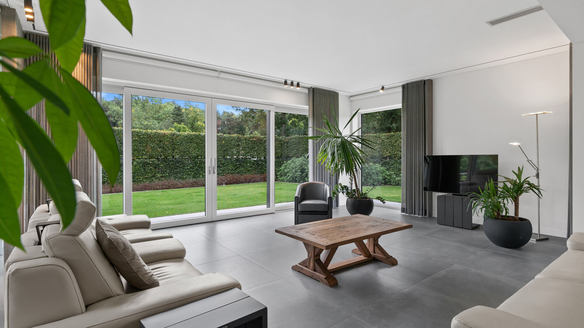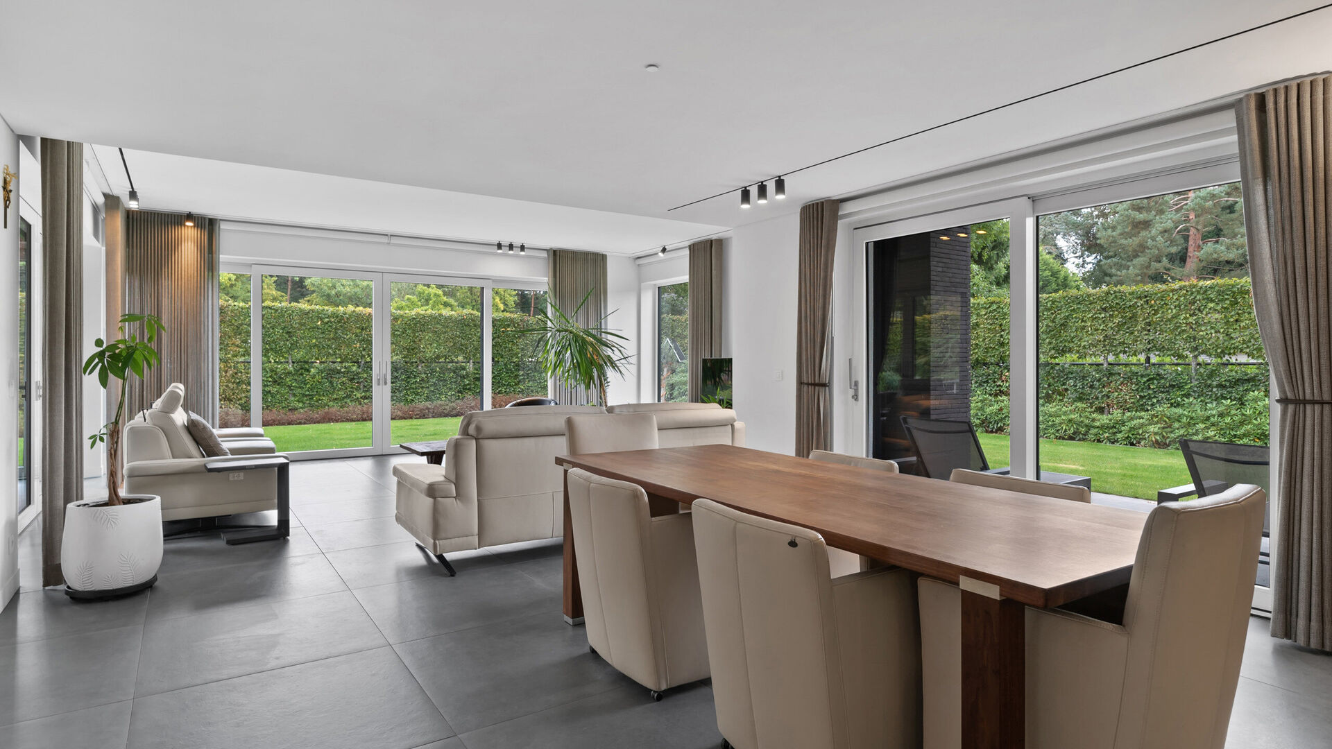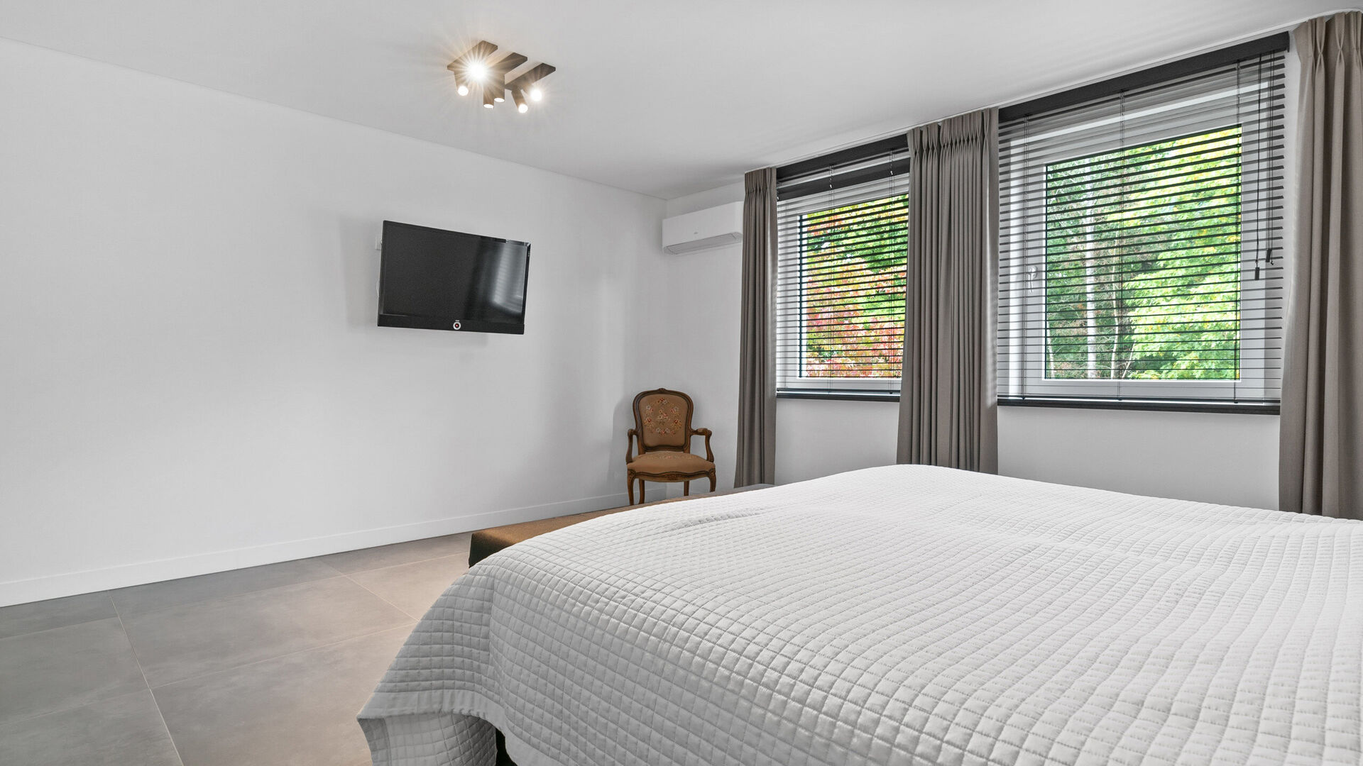 De villa is bovendien uitstekend uitgerust voor mobiliteit en gemak: een automatische sectionaalpoort geeft toegang tot twee parkeerplaatsen in de kelder, terwijl buiten nog plaats is voor vijf extra voertuigen. Voor wie elektrisch wil rijden is er een laadpaal, en beide automatische rolpoorten zijn uitgevoerd in duurzaam aluminium.