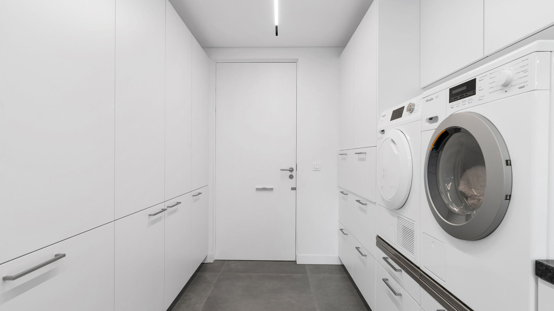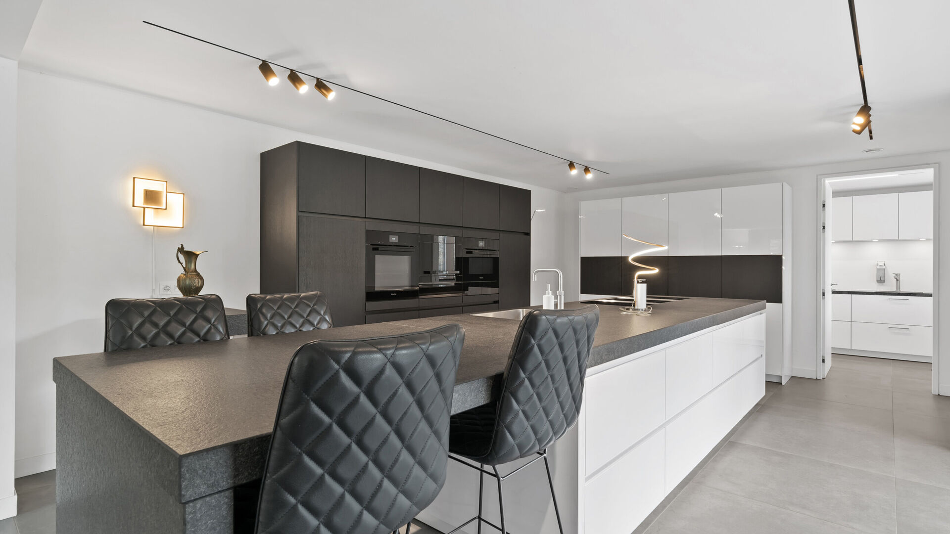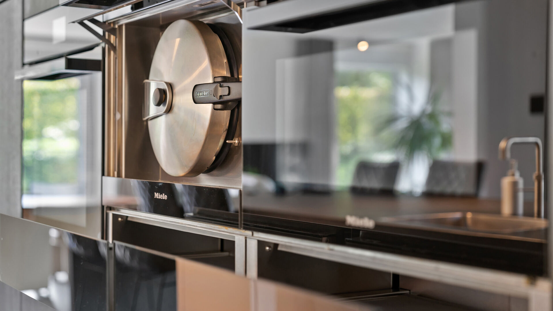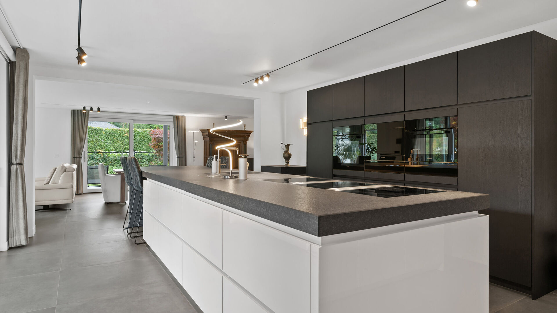 Het culinaire hart van de woning wordt gevormd door de Siematic-keuken, een toonbeeld van elegantie en functionaliteit. Deze keuken is volledig uitgerust met hoogwaardige Miele-apparatuur die naadloos aansluiten bij het strakke design en het praktische gebruiksgemak verhogen. Het Bora-kookgedeelte met geïntegreerde afzuiging zorgt voor een perfecte balans tussen stijl en efficiëntie, waardoor koken niet alleen een dagelijkse activiteit wordt, maar een ware belevenis. Of het nu gaat om een uitgebreid diner voor vrienden of een rustige familiemaaltijd, deze keuken nodigt uit tot creativiteit en culinaire passie.