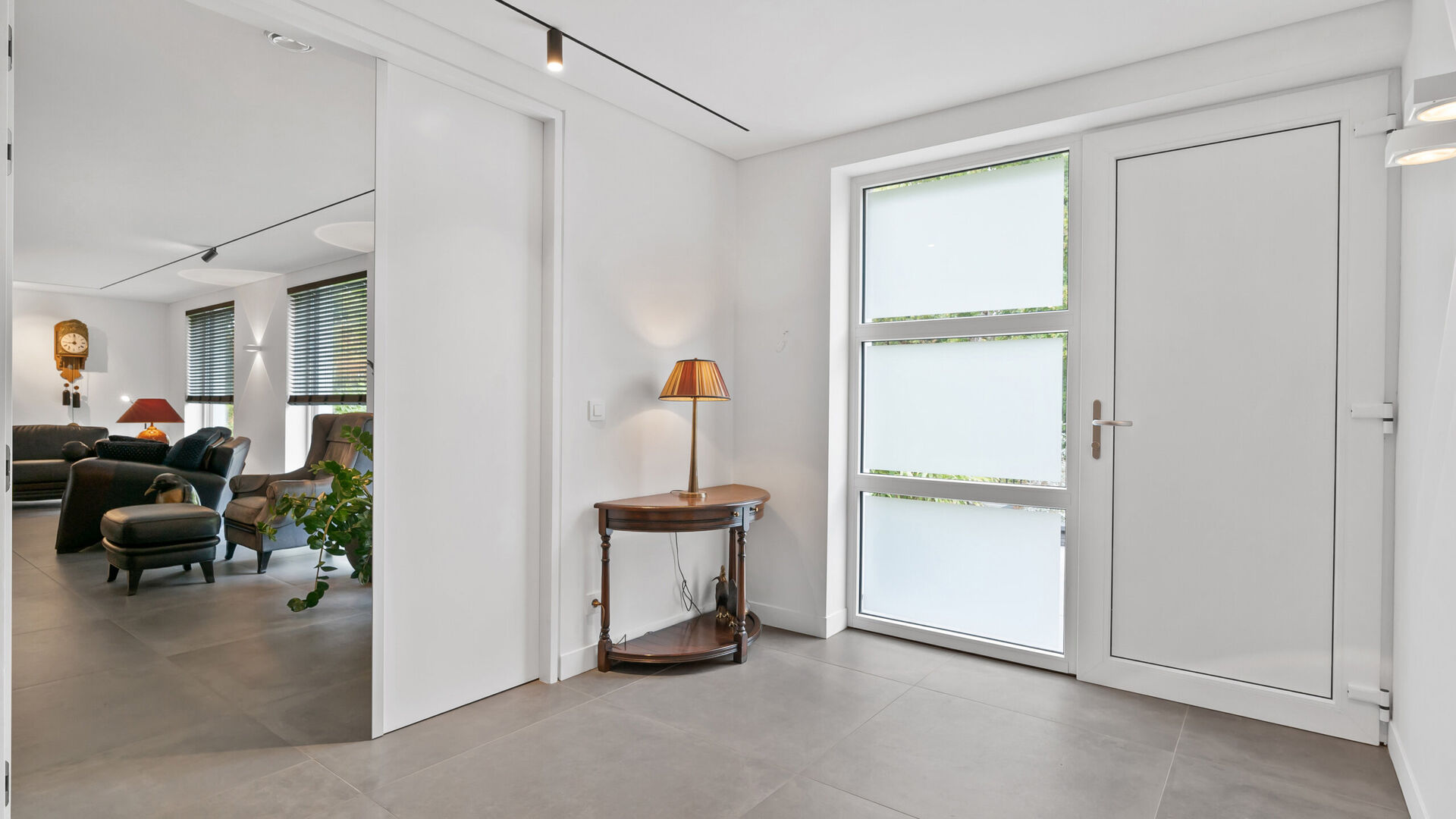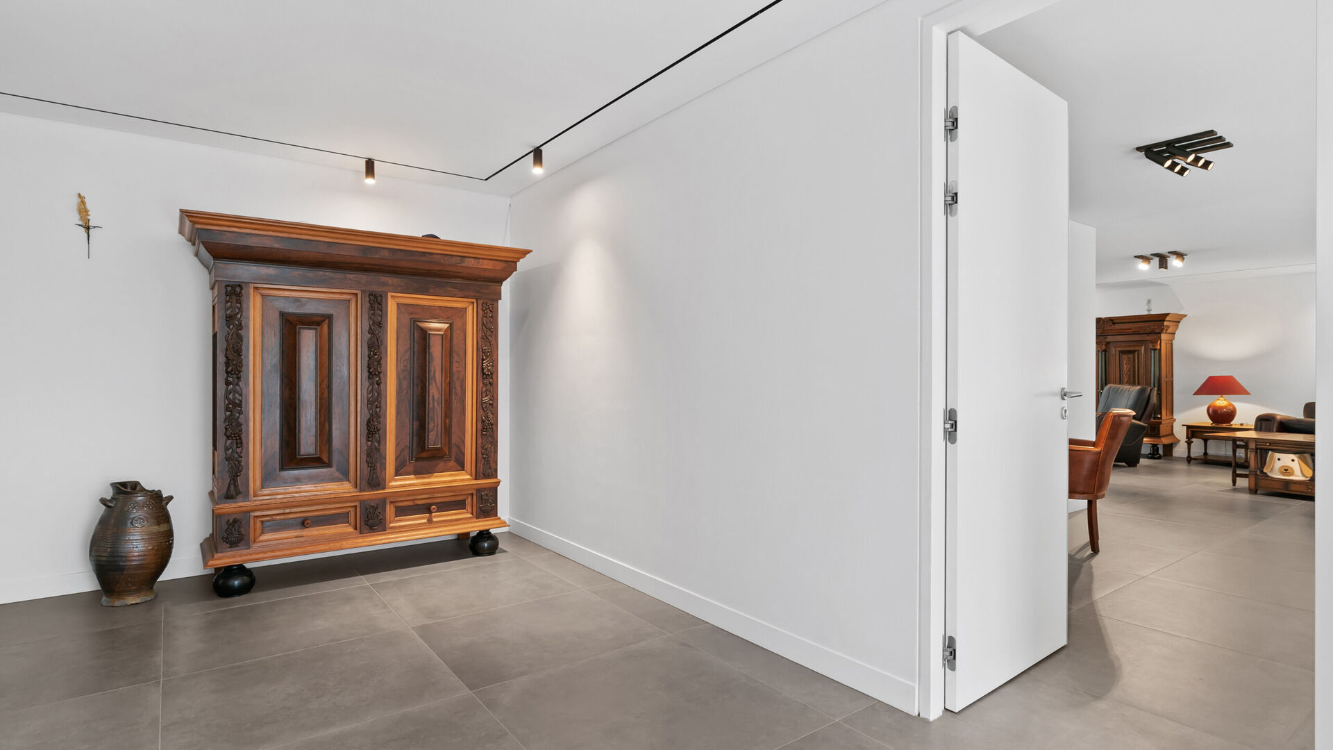 Binnenin valt meteen het luxueuze karakter op. De woning beschikt over een uitzonderlijk hoog afwerkingsniveau en tal van voorzieningen die het dagelijkse leven vergemakkelijken: een domoticasysteem, deuren met verankerde sloten en een personenlift die zowel de kelder als de zolder toegankelijk maakt. De ramen met dubbele zonwerende beglazingen PVC-profielen dragen bij aan het wooncomfort én de energie-efficiëntie van de woning.