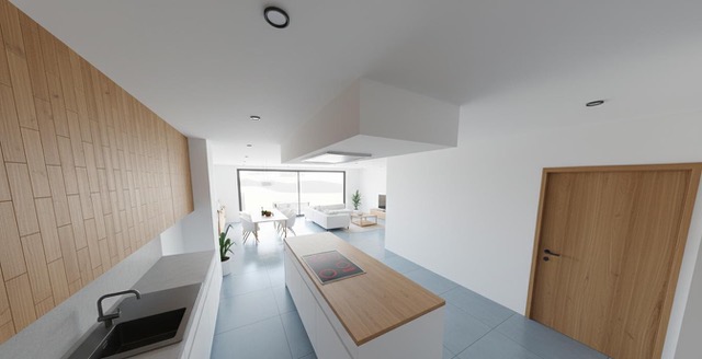 De woning beschikt over een open woon- en eetruimte met een hoogwaardige ingerichte keuken inclusief kookeiland (Siemens-toestellen), vier slaapkamers – waarvan een oudergedeelte met eigen douchekamer – evenals een extra badkamer met douche en bad. Een praktische wasruimte, een dubbele garage met gemotoriseerde poort en een energiezuinige uitrusting met vloerverwarming, fotovoltaïsche installatie en individuele ventilatie type C+ maken het geheel compleet.